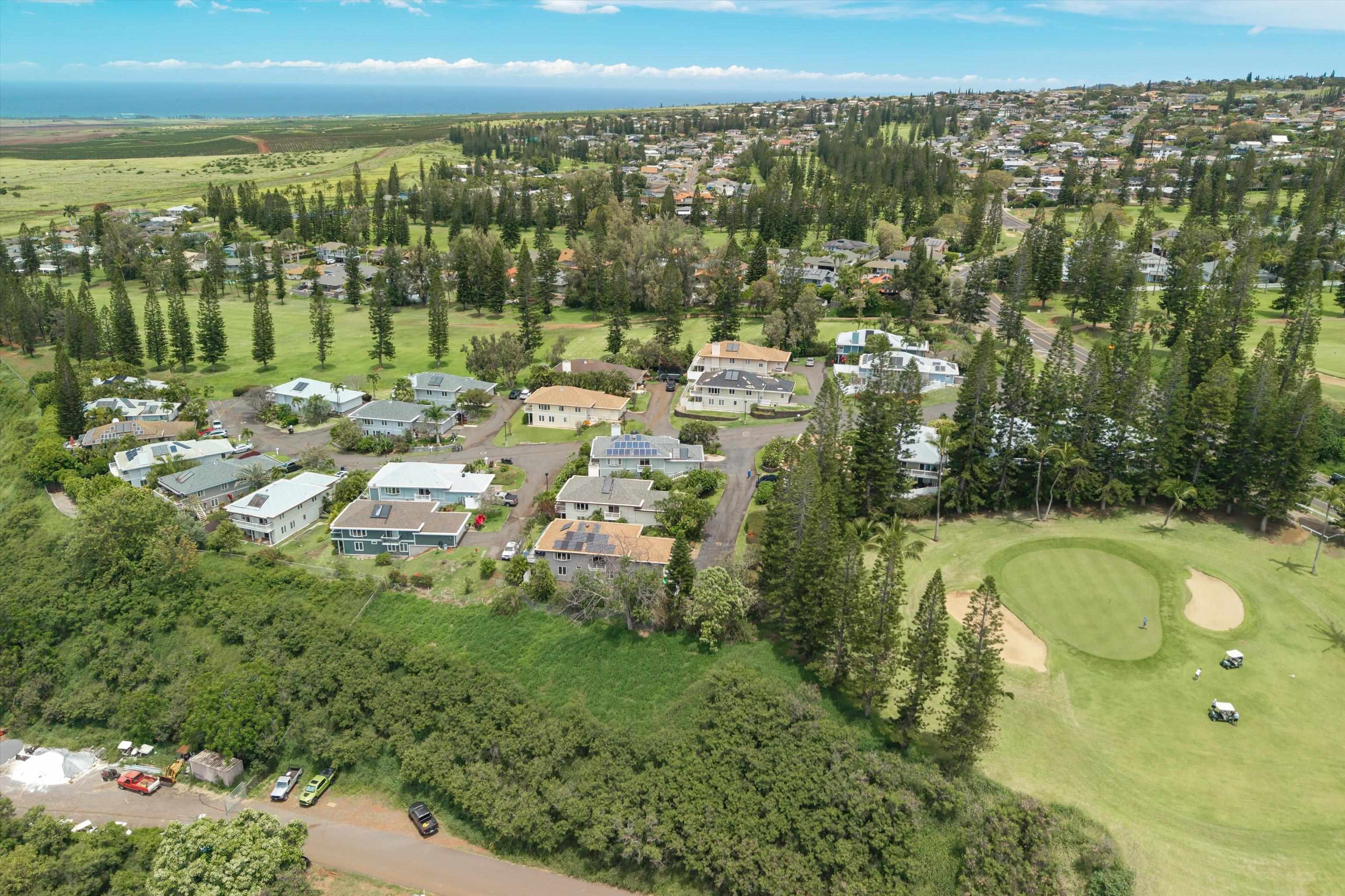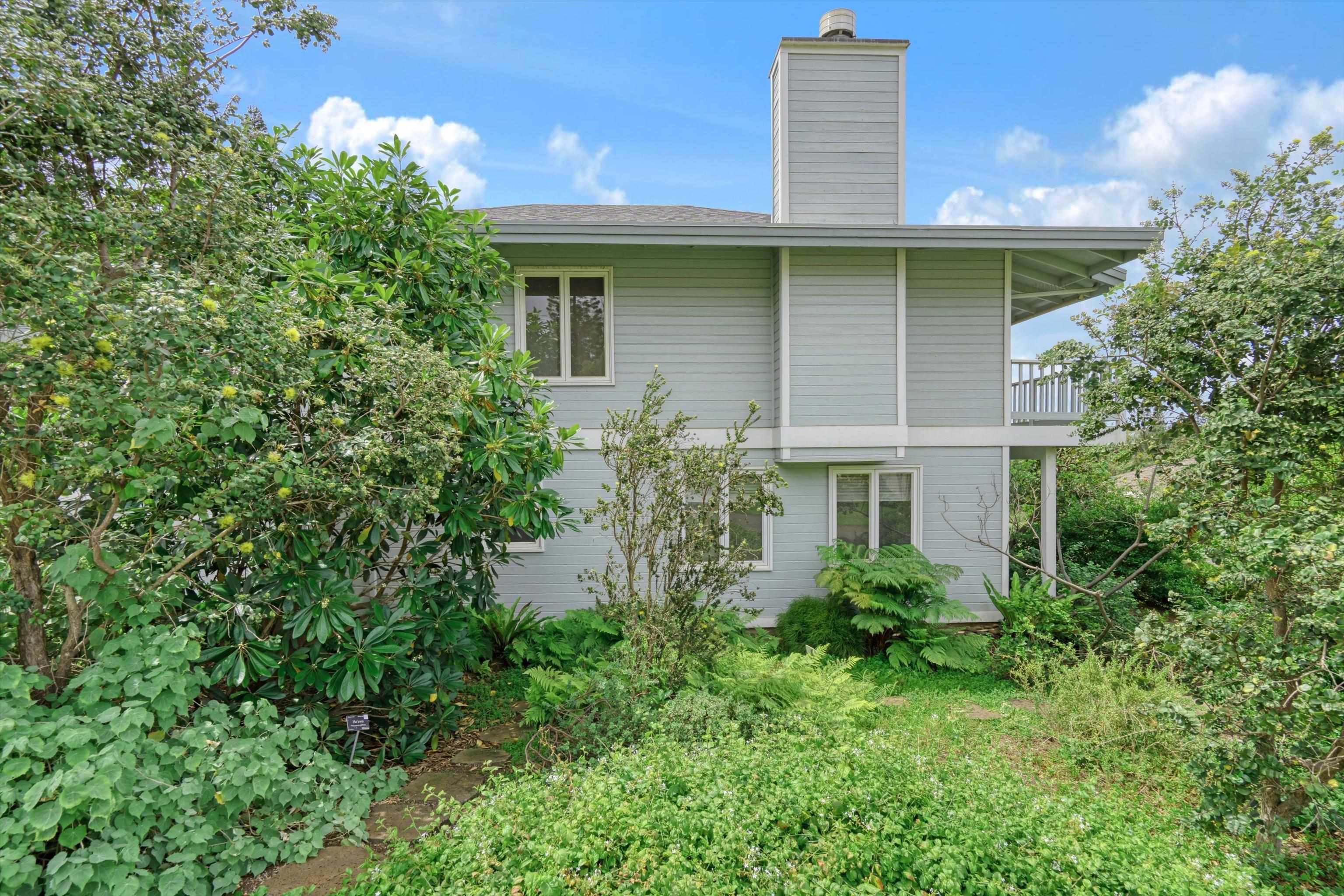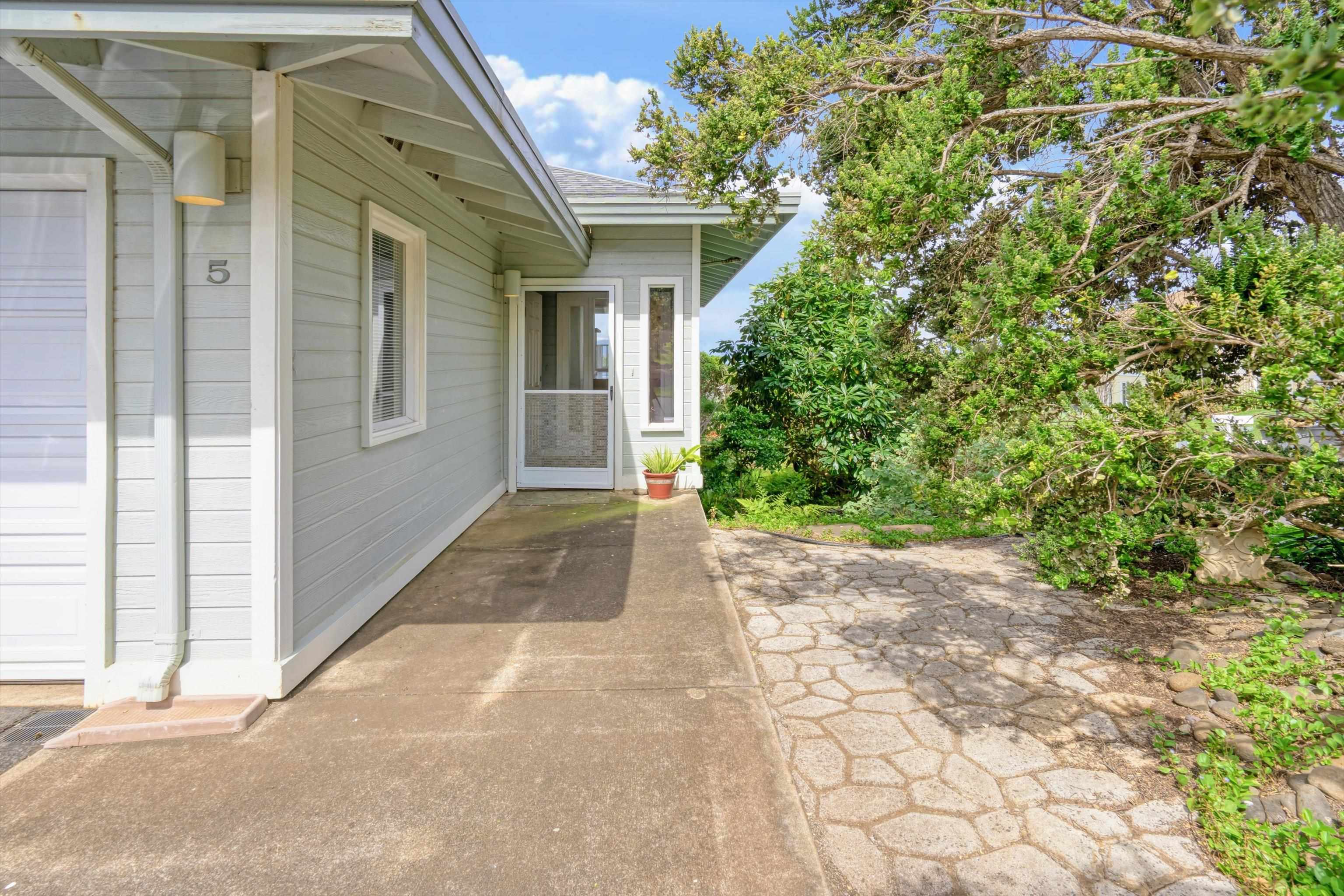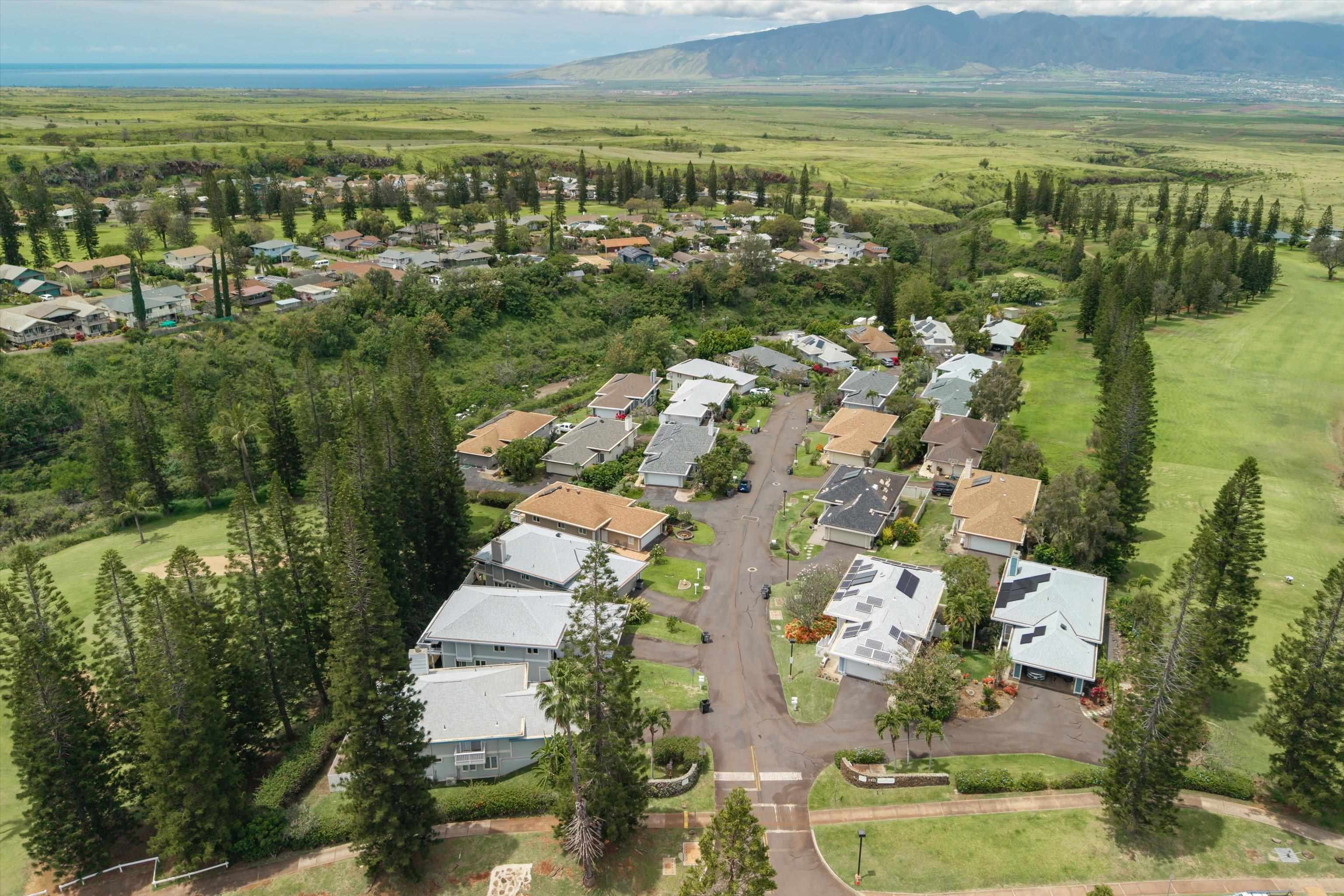 Pukalani Fairway Estates — Unit #5 offers a rare blend of Upcountry charm, privacy, and natural beauty in one of Pukalani’s most desirable communities: 24 homes nestled on the greens of the Pukalani Golf Course. This 3-bedroom, 2.5-bath single-family Residential Condo is uniquely positioned to capture stunning views of Mauna Kahalawai and the central valley creating a serene backdrop to everyday living. The upper level features an open-concept design with vaulted ceilings and abundant natural light, flowing to a spacious lanai–perfect for relaxing or entertaining. The sellers have installed concrete steps and railings leading from the garage to the yard below. The house foyer is enclosed - allowing entrance from the garage directly into the home. The lower level includes three bedrooms and access to a truly special outdoor space. The entire yard has been thoughtfully planted with native Hawaiian plants and enhanced with garden paths creating a park like retreat. Enjoy being among o'hia and other native plants and alongside the rare yellow hibiscus (ma'o hau hele), Hawaii’s State Flower. The primary suite offers an ensuite bath, dual vanity, and walk-in closet. Additional highlights include a 2-car garage with full-sized laundry. Easy access to the golf course, shops, Farmers Market, and restaurants. Listing is a Residential condominium.