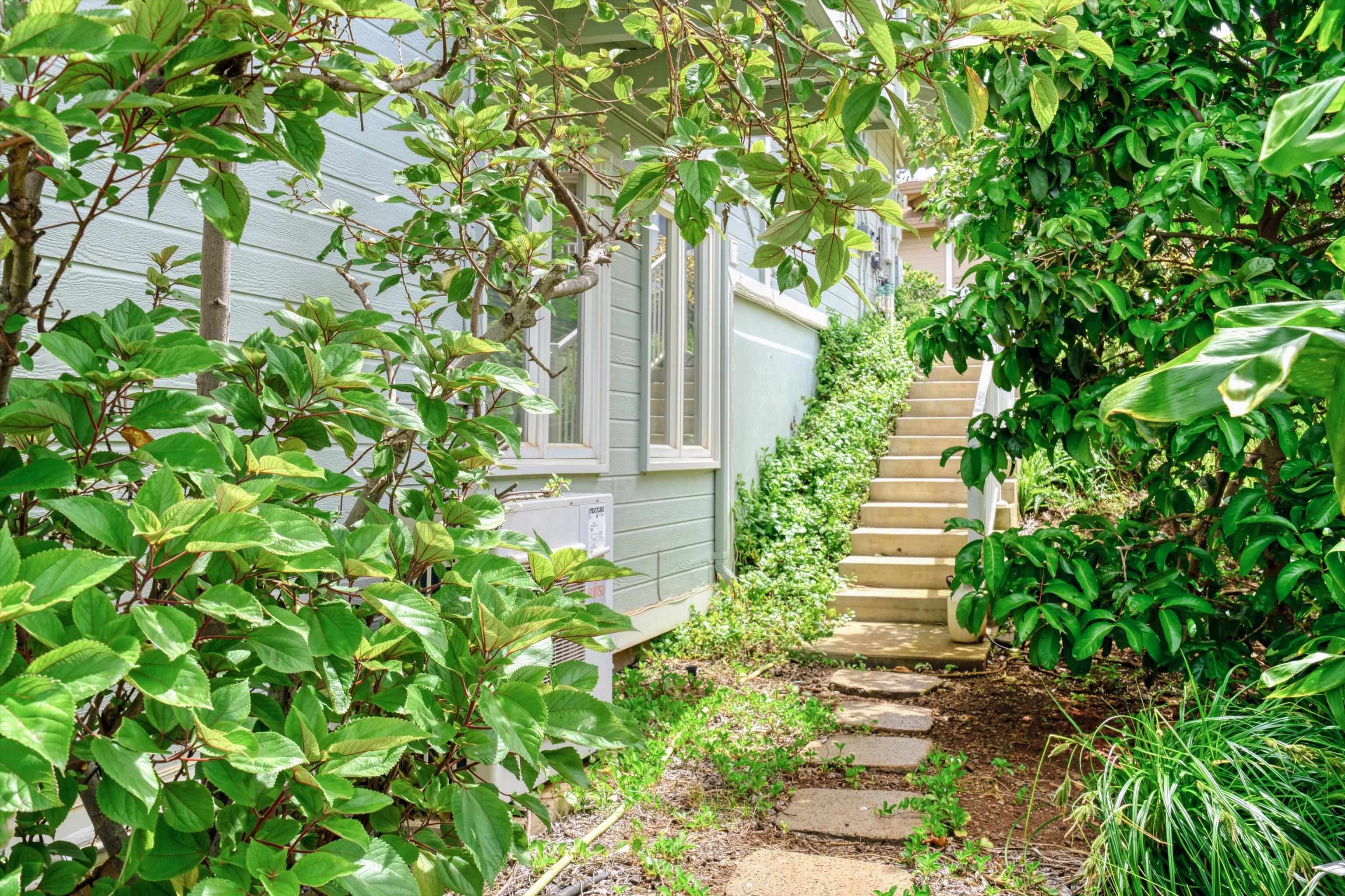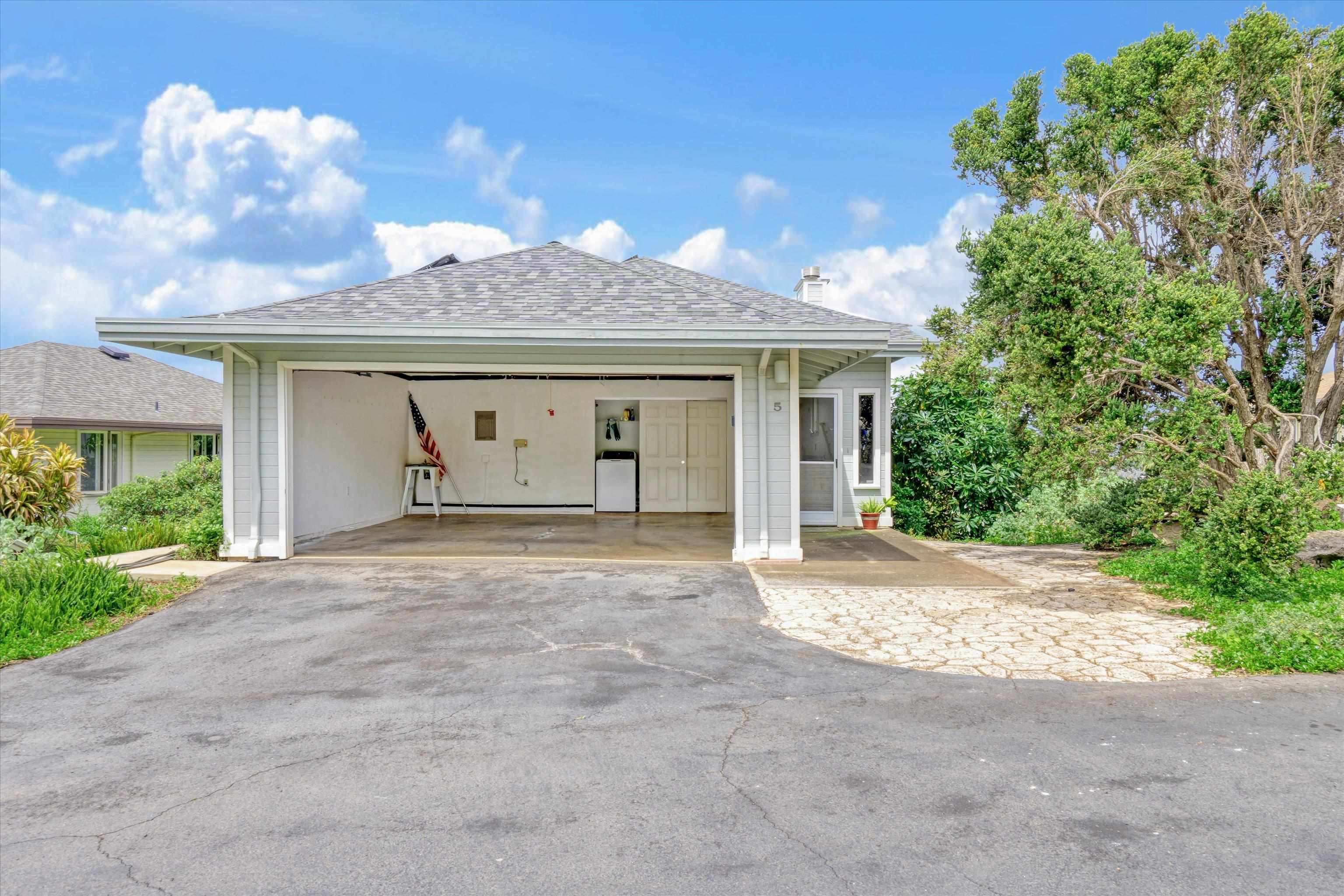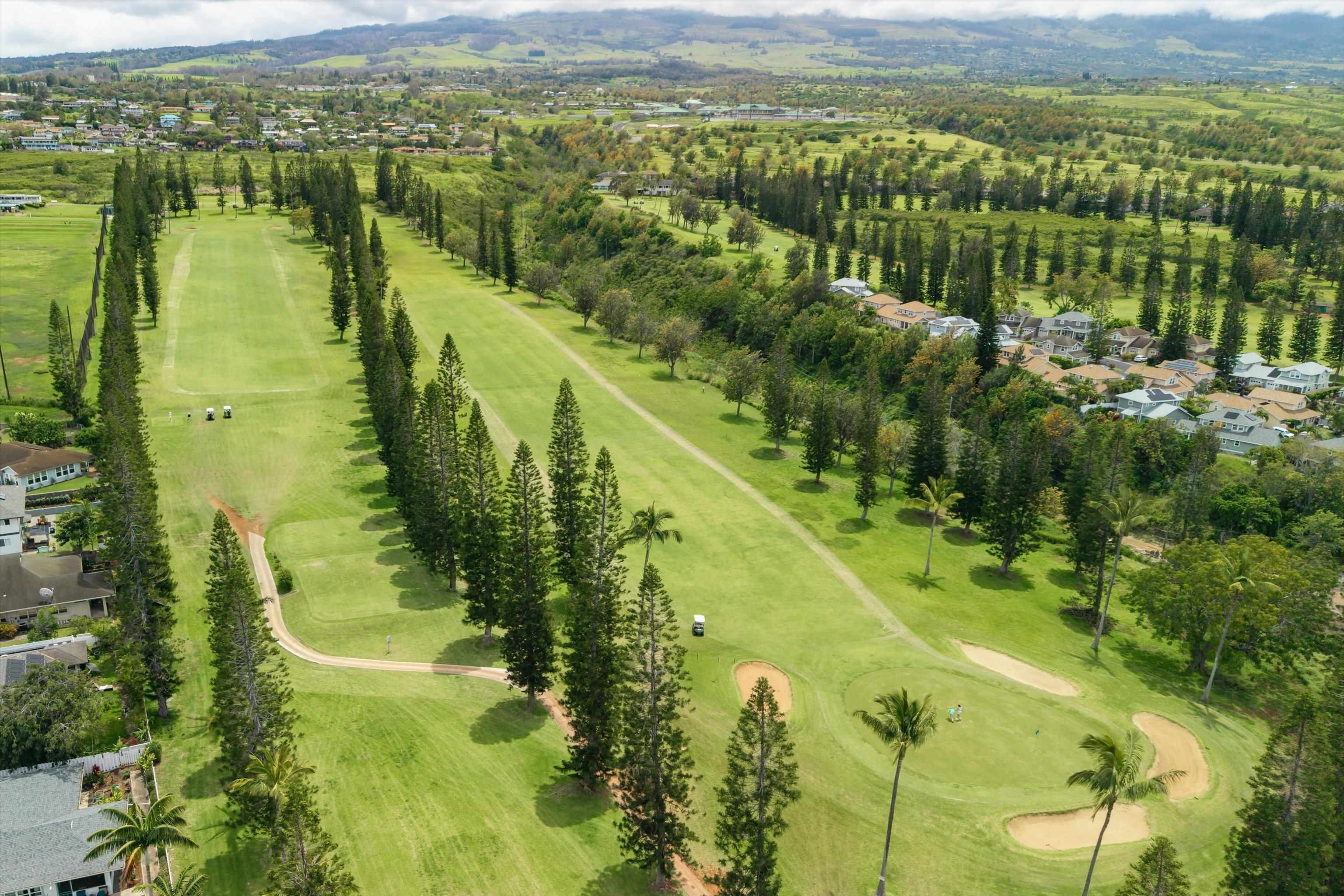 Pukalani Fairway Estates — Unit #5 offers a rare blend of Upcountry charm, privacy, and natural beauty in one of Pukalani’s most desirable communities: 24 homes nestled on the greens of the Pukalani Golf Course. This 3-bedroom, 2.5-bath single-family Residential Condo is uniquely positioned to capture stunning views of Mauna Kahalawai and the central valley creating a serene backdrop to everyday living. The upper level features an open-concept design with vaulted ceilings and abundant natural light, flowing to a spacious lanai–perfect for relaxing or entertaining. The sellers have installed concrete steps and railings leading from the garage to the yard below. The house foyer is enclosed - allowing entrance from the garage directly into the home. The lower level includes three bedrooms and access to a truly special outdoor space. The entire yard has been thoughtfully planted with native Hawaiian plants and enhanced with garden paths creating a park like retreat. Enjoy being among o'hia and other native plants and alongside the rare yellow hibiscus (ma'o hau hele), Hawaii’s State Flower. The primary suite offers an ensuite bath, dual vanity, and walk-in closet. Additional highlights include a 2-car garage with full-sized laundry. Easy access to the golf course, shops, Farmers Market, and restaurants. Listing is a Residential condominium.