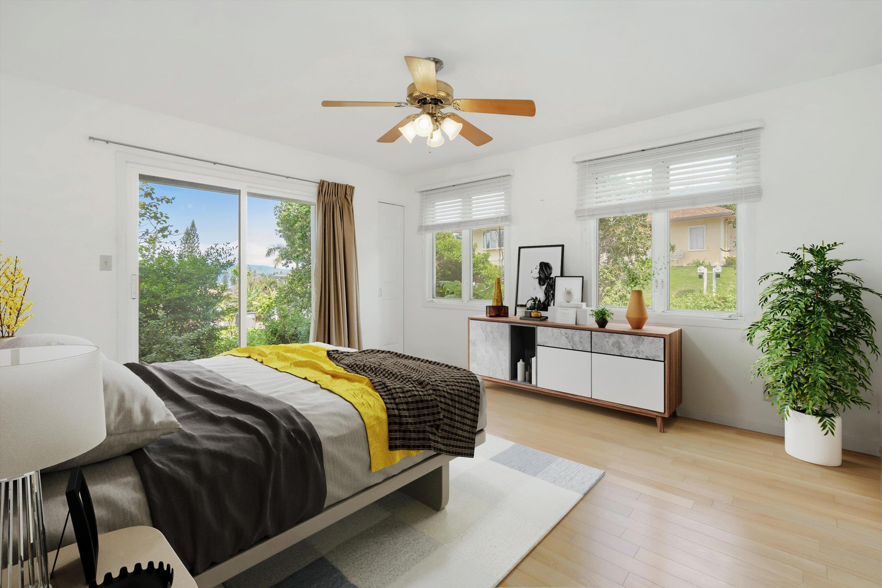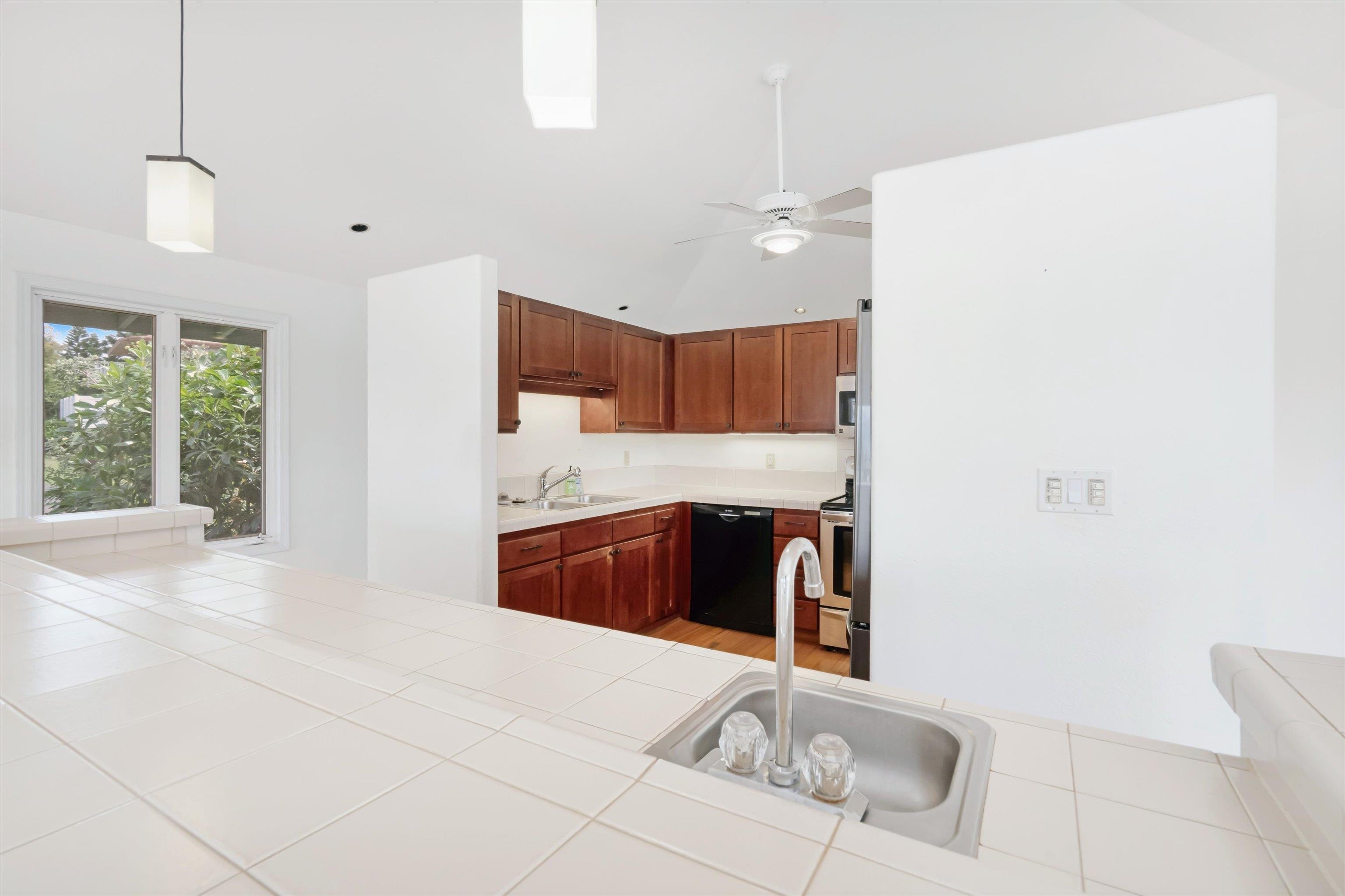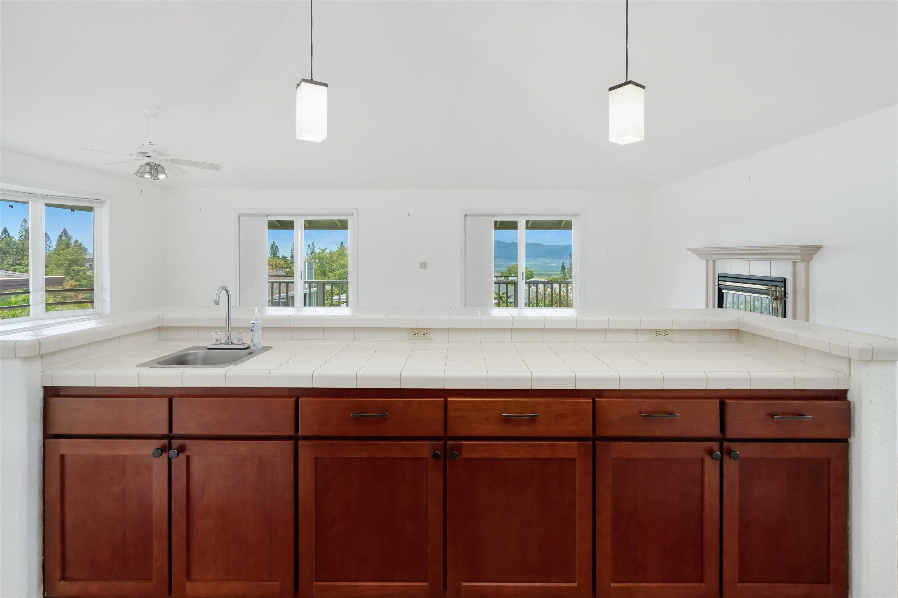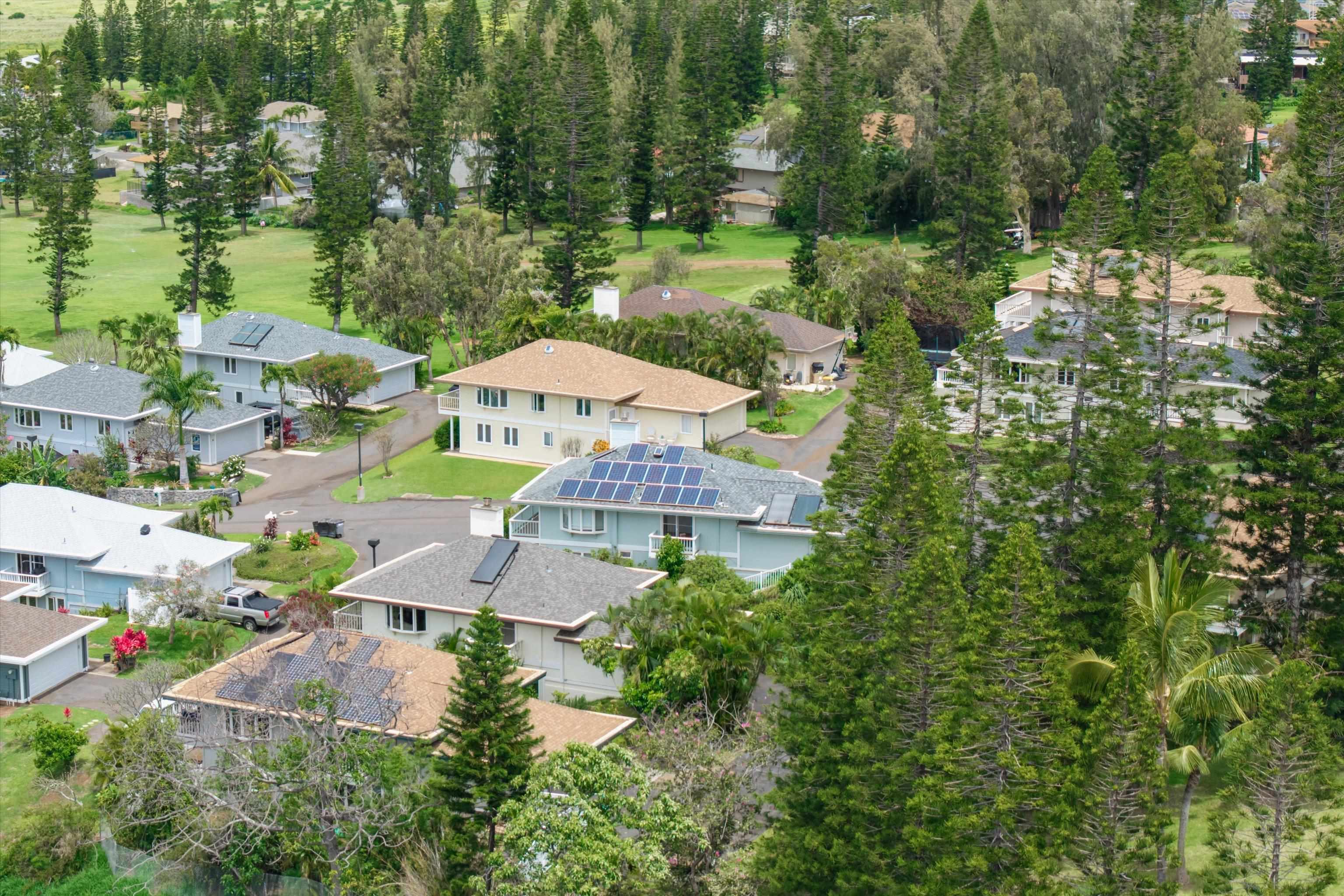 Pukalani Fairway Estates — Unit #5 offers a rare blend of Upcountry charm, privacy, and natural beauty in one of Pukalani’s most desirable communities: 24 homes nestled on the greens of the Pukalani Golf Course. This 3-bedroom, 2.5-bath single-family Residential Condo is uniquely positioned to capture stunning views of Mauna Kahalawai and the central valley creating a serene backdrop to everyday living. The upper level features an open-concept design with vaulted ceilings and abundant natural light, flowing to a spacious lanai–perfect for relaxing or entertaining. The sellers have installed concrete steps and railings leading from the garage to the yard below. The house foyer is enclosed - allowing entrance from the garage directly into the home. The lower level includes three bedrooms and access to a truly special outdoor space. The entire yard has been thoughtfully planted with native Hawaiian plants and enhanced with garden paths creating a park like retreat. Enjoy being among o'hia and other native plants and alongside the rare yellow hibiscus (ma'o hau hele), Hawaii’s State Flower. The primary suite offers an ensuite bath, dual vanity, and walk-in closet. Additional highlights include a 2-car garage with full-sized laundry. Easy access to the golf course, shops, Farmers Market, and restaurants. Listing is a Residential condominium.