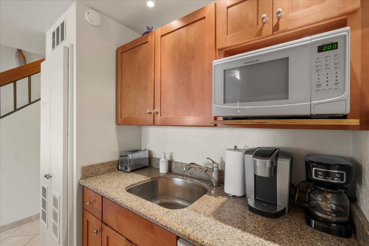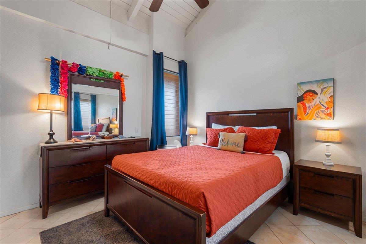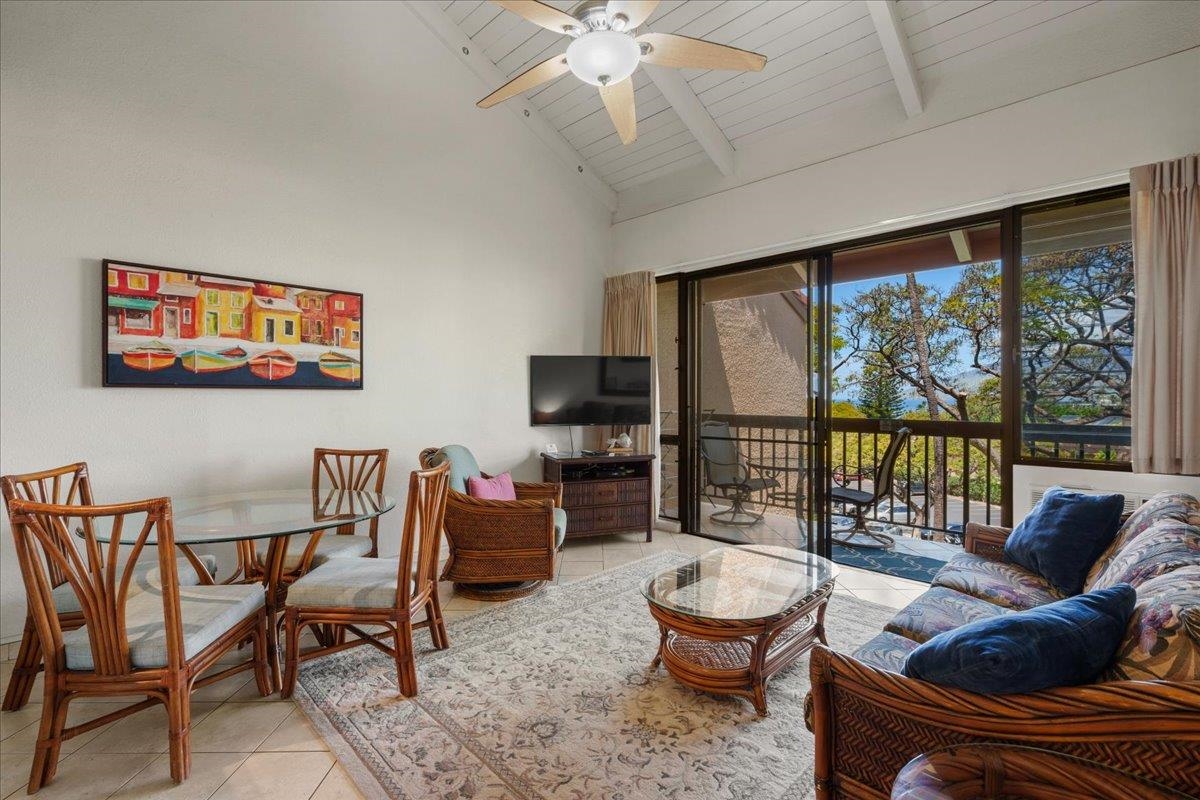 Top-floor 2-bedroom, 2-bathroom Maui Vista condo in highly desirable Building Two. Vaulted ceilings create a bright, open feel. Sip your morning coffee while enjoying ocean views from the lanai overlooking the grassy courtyard, and unwind in the evening with beautiful sunset views. The kitchen features granite countertops, adding both style and durability. Prime South Maui location across from Charley Young Beach! Stay on the tropical grounds and play tennis or pickleball, invite friends for a BBQ using the designated grilling areas, and cool off at any of the three pools on site.