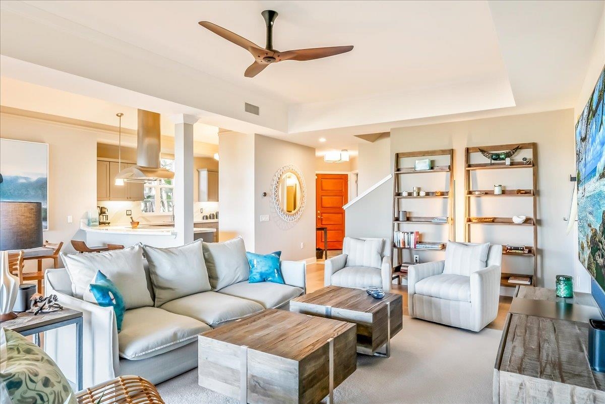 Premium Wailea Privacy! Kai Malu is the best value and best kept secret in the Wailea Resort. This updated and meticulously cared for home is offered turnkey, fully and beautifully furnished including artwork, with everything you need to live your best life on Maui. Kai Malu #62-B is in the premium position for ultimate privacy on the coveted upper row and nestled in the back corner with the Wailea Blue Course around the community. Ocean and Outer Island Views from downstairs and your private main lanai and primary suite, plus golf course and majestic Haleakala views from the secondary suite. Step inside and you’ll feel the relaxation begin with gorgeous hardwood floors plus tile in entry, kitchen, and baths, and high grade carpet in the bedrooms. Lovely upgraded countertops in your gourmet kitchen with stainless appliances including GE Monogram SS Refrigerator and Dishwasher (both w/WiFi - May 2025), Wolf Induction Cooktop, GE Profile Oven and Microwave, GE Monogram Hood, and handsome cabinetry. Whole house Sonos wireless sound system plus Apple TV 4K Streamers throughout with Nest control AC, Nest doorbell, security cameras, and 5 high end Haiku Fans. New Bosch 4-Ton Central AC (20 Seer) w/WiFi installed September 2025. High end indoor furnishings with Polywood lanai furniture and 30” Lynx Professional Grill w/Trident Burners. Motorized solar shades upstairs in primary and on downstairs lanai, plus quality blinds throughout. Two car garage with built in Level 2 Tesla EV Charger. 14 owned Photovoltaic Panels on Net Metering equals savings on electric. Home is equipped with Moen Flo Smart Water Monitor and Shutoff plus 6 water leak detectors for peace of mind when you’re away. The Maui life you’ve dreamed of awaits - putting you at the center of the Wailea Resort with all the shopping, restaurants, and world class beaches to share with your loved ones. Make this home yours today!
