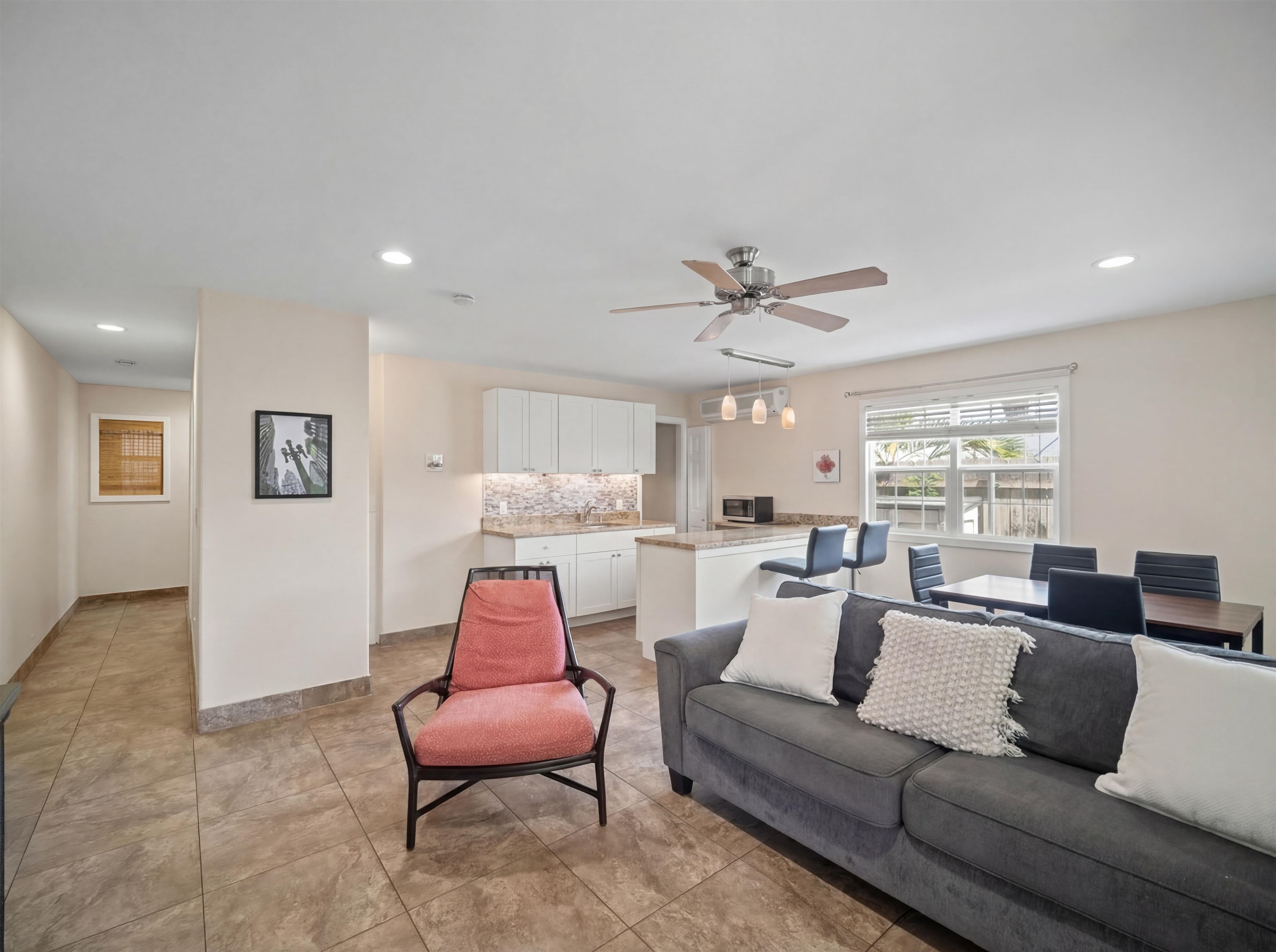 Discover one of South Kihei's most versatile and compelling properties-offering flexible living, strong income potential, and an unbeatable location just moments from Maui's renowned beaches. With approximately 4,900 sq. ft. of total living area, this impeccably maintained, ocean-view residence presents a rare opportunity for investors, multigenerational living, or a second-home buyer seeking built-in revenue. Designed with an adaptable "ohana-style" layout, the property features four separate living areas, each thoughtfully maintained and equipped with split AC for year-round comfort. The configuration allows for multiple strategies: live in one unit while generating income from the others, create a private compound for extended family, or maximize long-term rental returns. The lower level includes two units: a spacious 1-bedroom, 1-bath with its own private yard and patio, and a 3-bedroom, 2-bath unit with a generous kitchen and outdoor laundry-both offering excellent rental appeal. Upstairs features two additional 3-bedroom, 2-bath units, including a primary owner's residence with a private lanai and lift access (ideal for convenience or accessibility), plus a second unit with similar layout perfect for guests or tenants. Adding to the appeal is a permitted 338 sq. ft. third-level "crow's nest," delivering panoramic views of Maui-spanning the ocean, outer islands, Haleakala, and the West Maui Mountains-a truly special feature that sets this property apart.