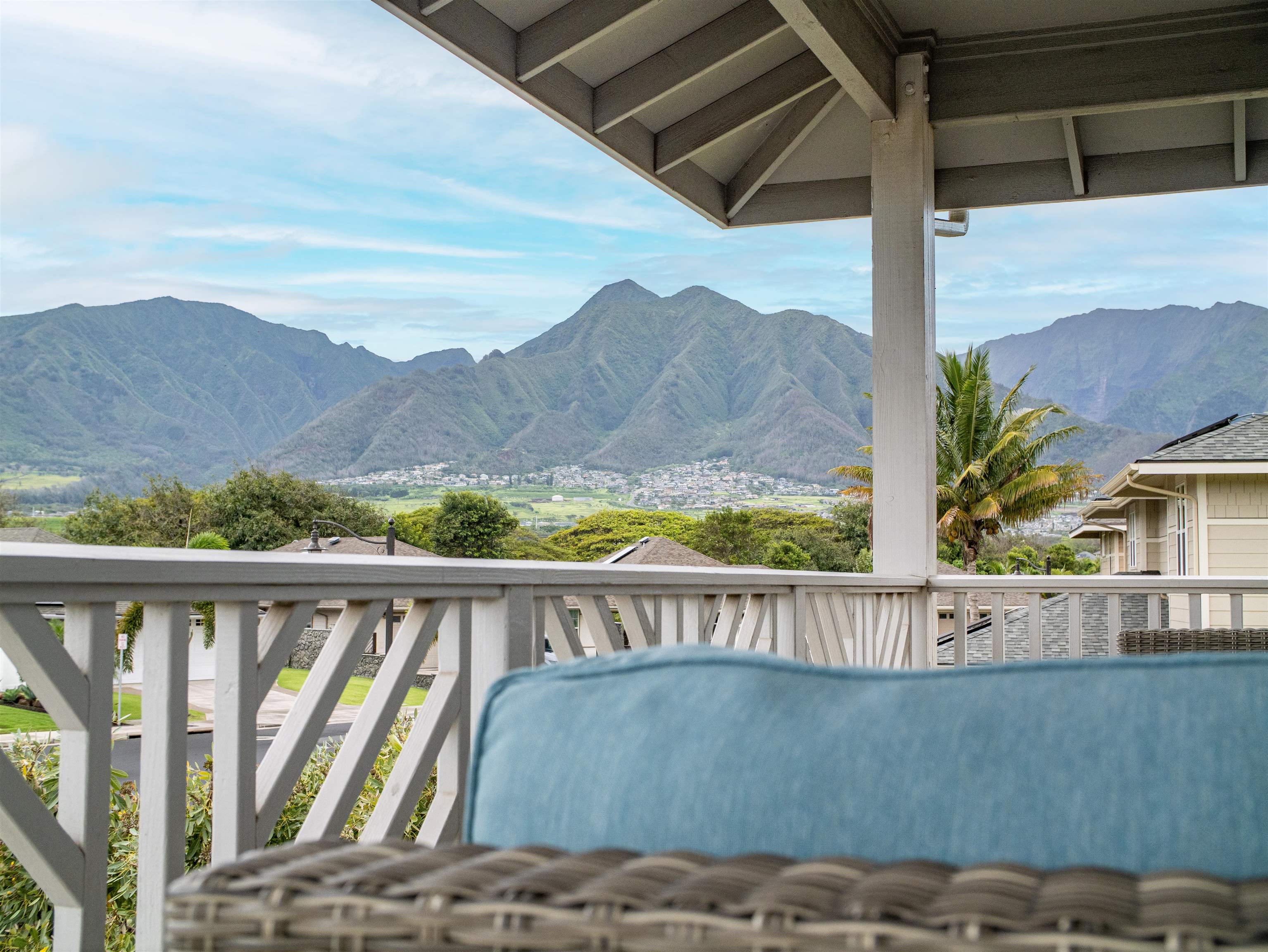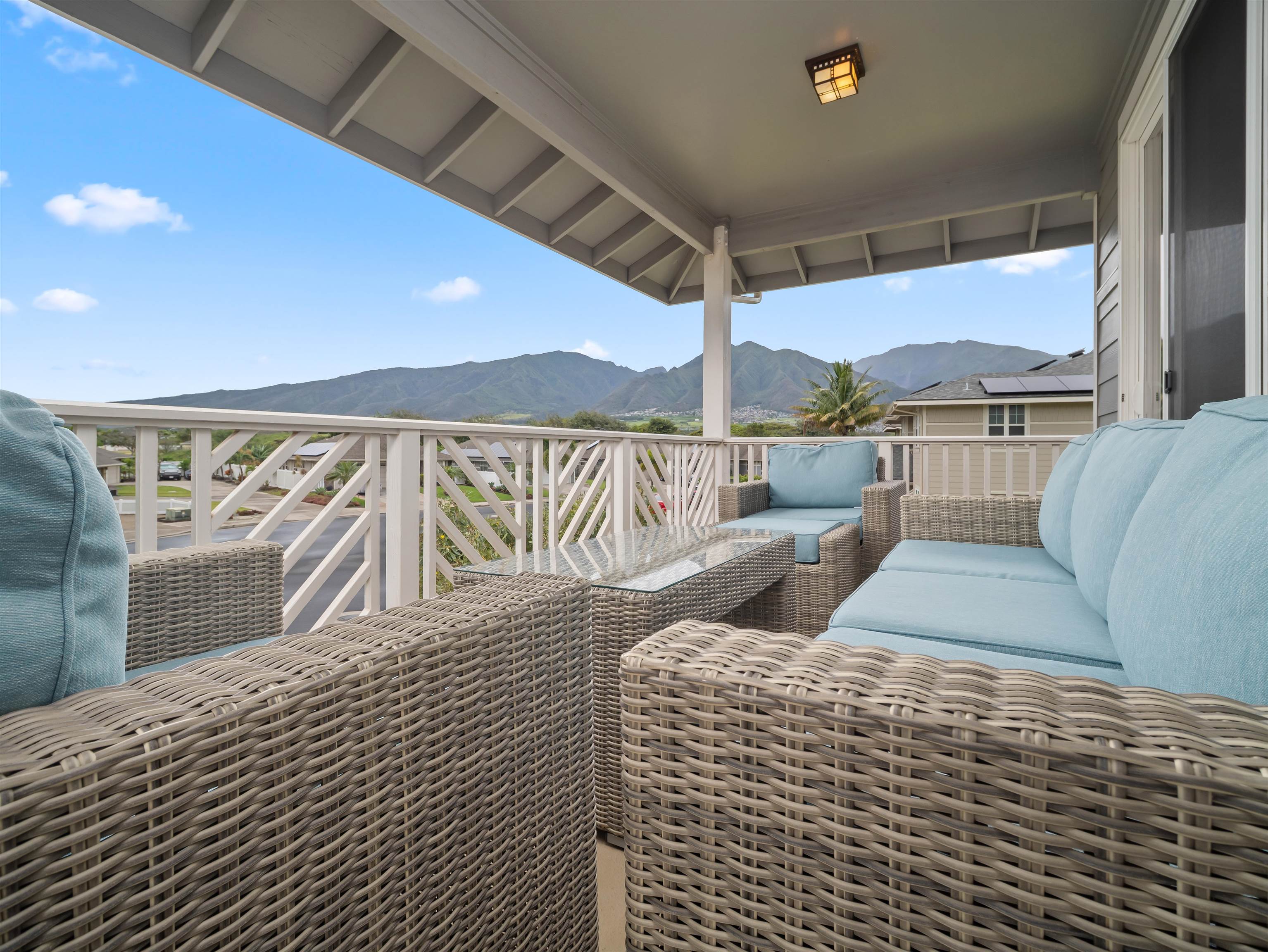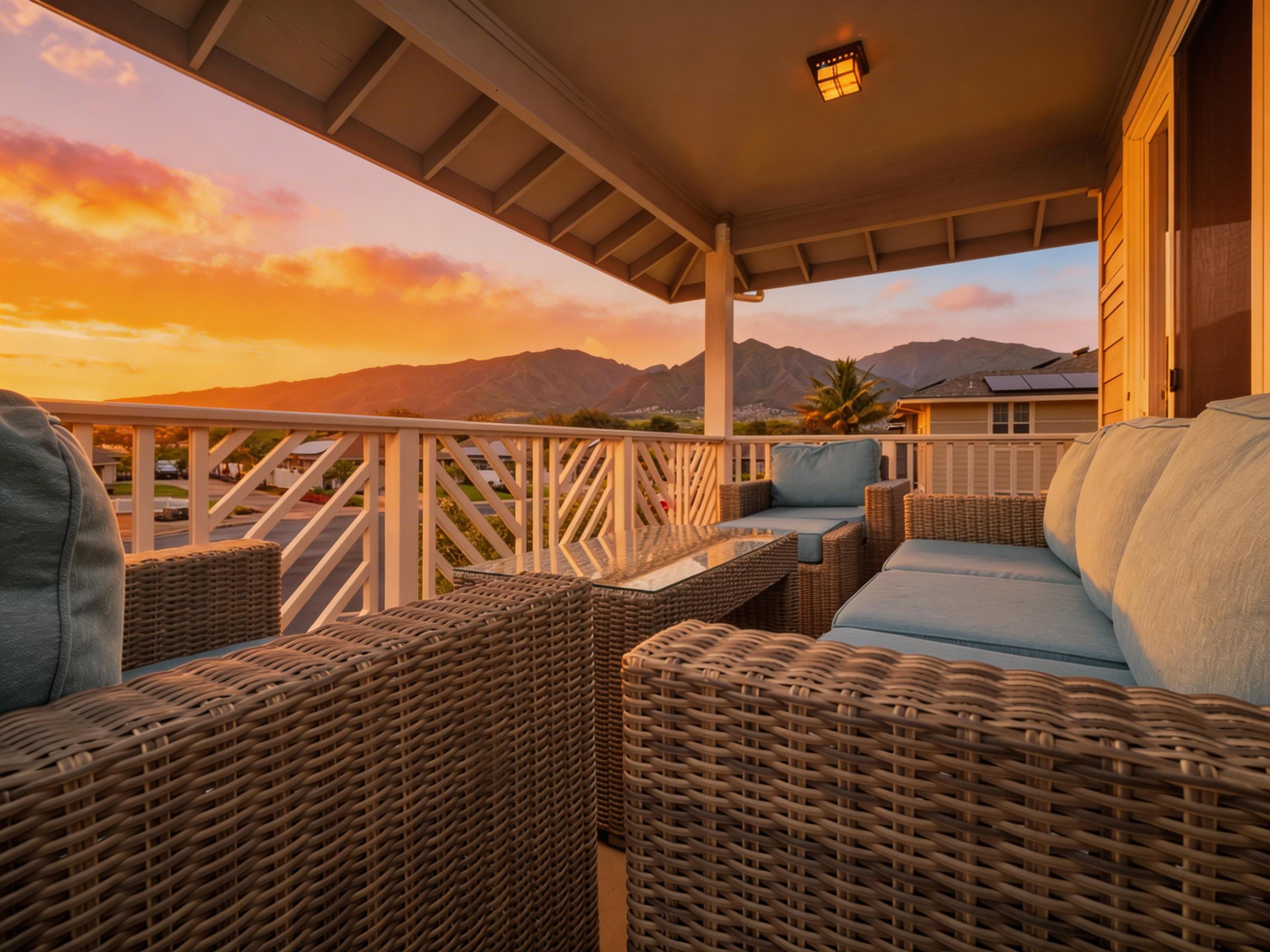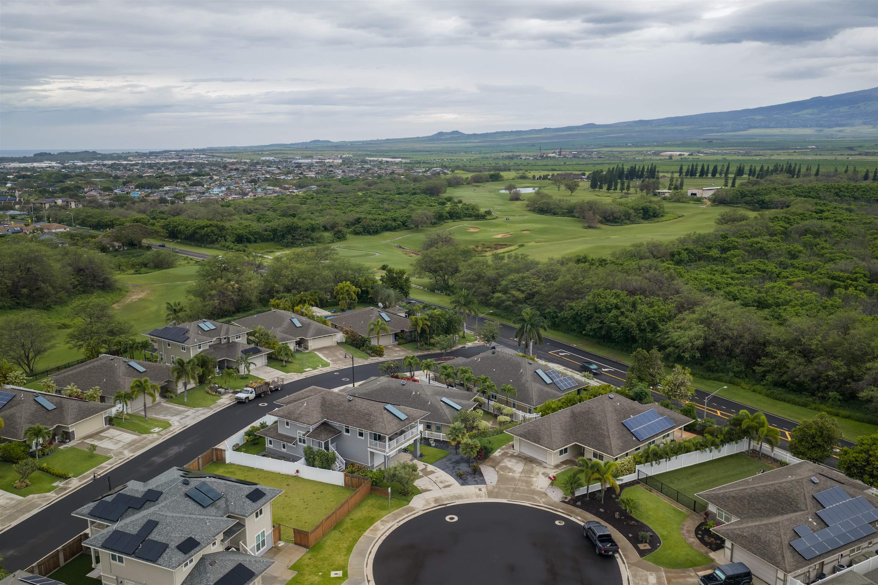 WELCOME HOME to one of the finest offerings in The Parkways at Maui Lani–this former model home has been extensively upgraded, meticulously maintained, and is truly move-in ready. Ideally situated along the lush Dunes at Maui Lani Golf Course, this highly desirable Manele Plan 6 offers a spacious and versatile layout designed for both comfortable living and effortless entertaining. With over-height ceilings, 8-foot custom doors, and vaulted ceilings in the great room and kitchen, the home feels bright, open, and inviting. A large covered lanai seamlessly extends your living space outdoors–perfect for enjoying Maui’s year-round climate. This thoughtfully designed home features multiple living areas, including a separate family room, providing flexibility for extended family, guests, or work-from-home needs. Since its time as the developer’s model home, the property has been significantly enhanced with high-quality upgrades and improvements, including: - Owned photovoltaic system (11 panels) with Tesla battery — dramatically reducing electric costs - Daikin 2-zone central AC + additional split systems for efficient, customized cooling - Hybrid heat pump water heater (energy efficient and helps cool the garage) - New luxury vinyl plank flooring throughout lower level - Extensive interior repainting and updated lighting, fixtures, and smart switches - Upgraded appliances, including new refrigerator, stove (2025), washer/dryer (2022), double oven (2025) and reverse osmosis water filtration system - New windows (2024) replaced under warranty for improved clarity and efficiency The exterior and grounds have been equally improved, creating a private, low-maintenance oasis: - Vinyl fencing, retaining walls, and fully upgraded drainage system - Lush yet water-conscious landscaping with mature fruit trees (avocado, mango, citrus, papaya, lilikoi) and organic garden beds - Automated irrigation and French drains - New gutters, front steps, and outdoor shade system for added comfort and functionality This beautiful cul-de-sac home with amazing Haleakala and West Maui mountain views in the heart of the Maui Lani Master Planned Community, you are just minutes from schools, shopping, dining, medical facilities, and more. This is a rare opportunity to own a highly upgraded, energy-efficient, and beautifully maintained home in one of Central Maui’s most sought-after communities–perfect for owner-occupants, second-home buyers, or anyone seeking quality, convenience, and value. Quick closing possible–this home is truly ready to enjoy from day one.