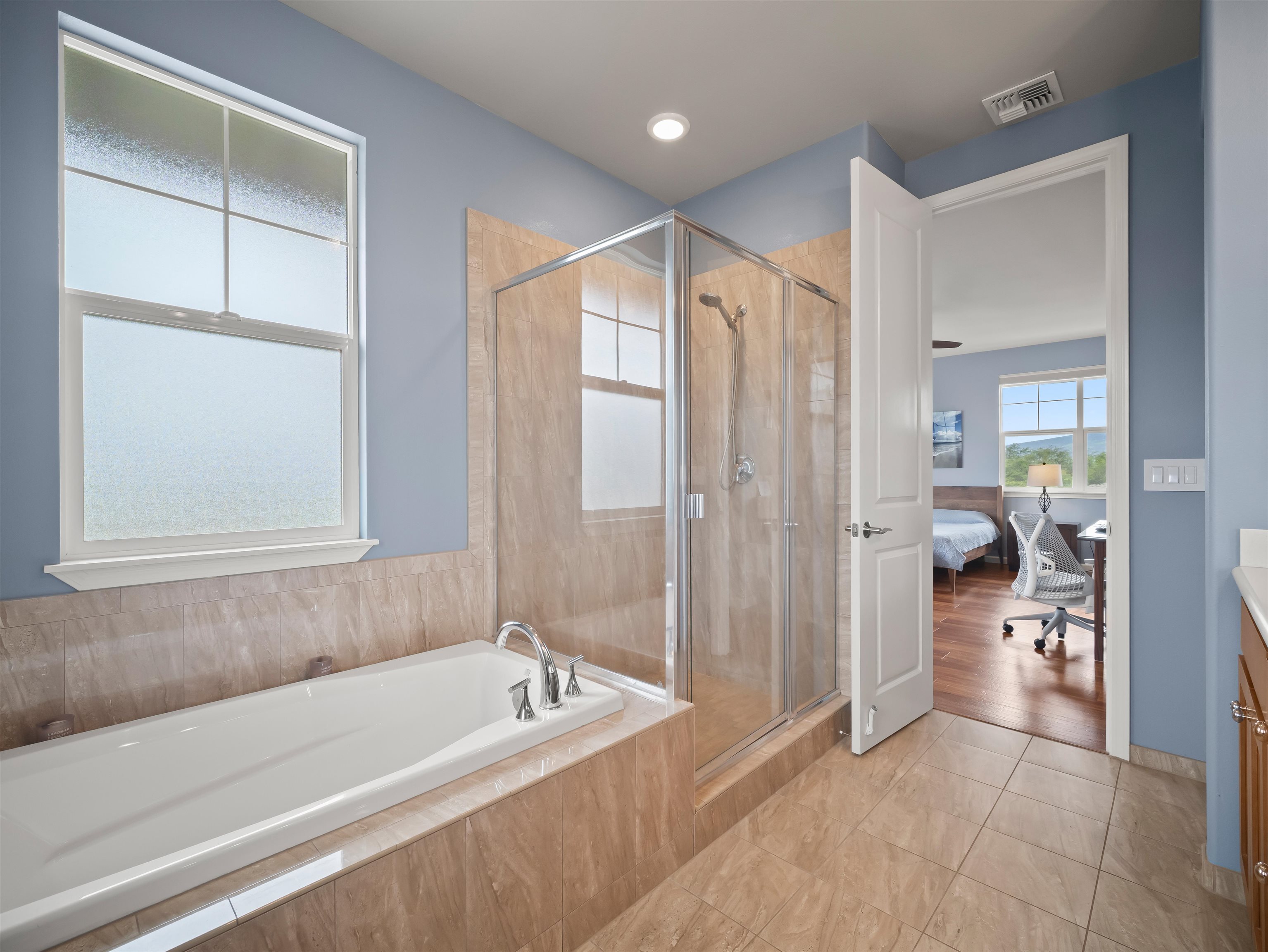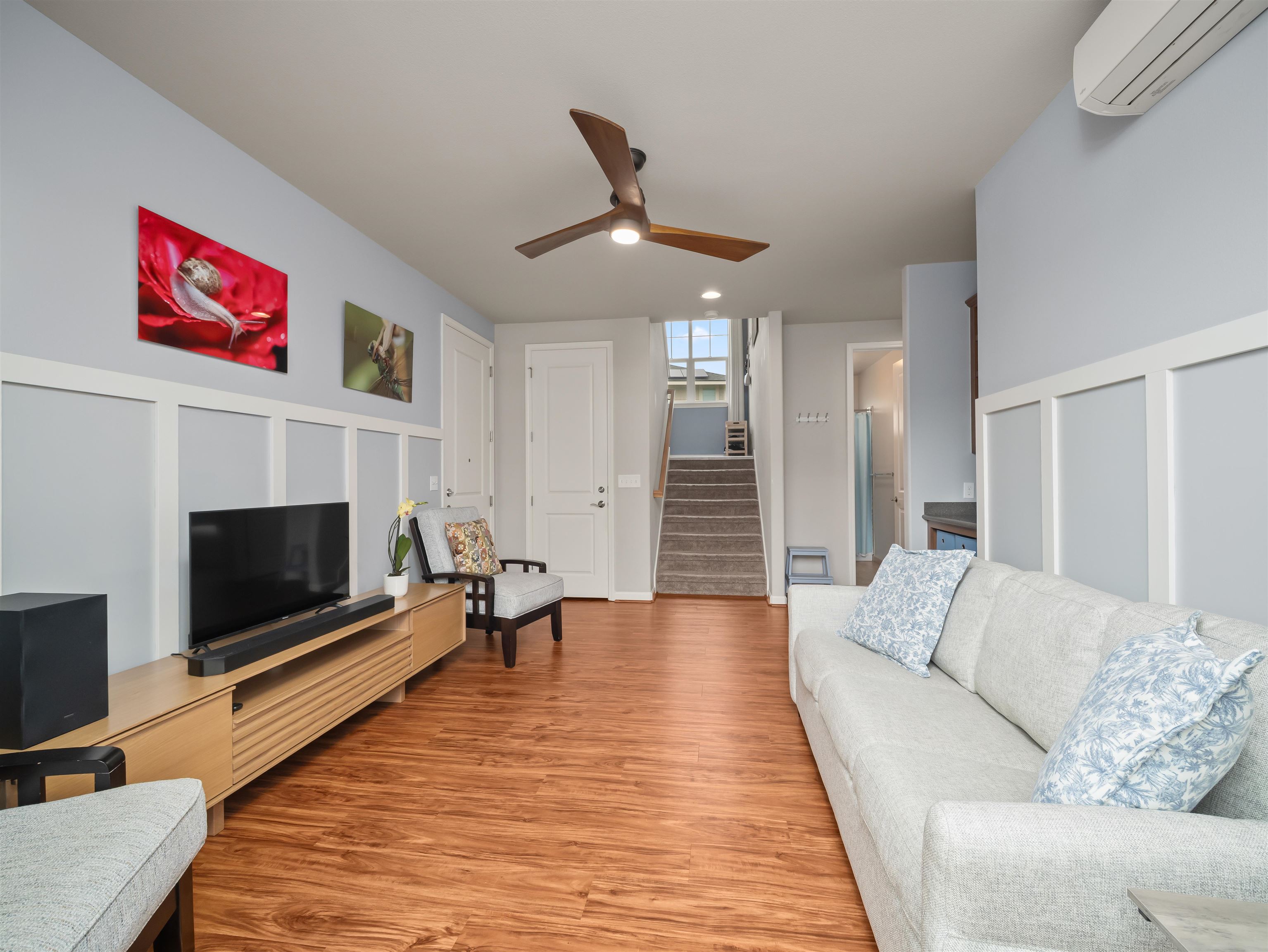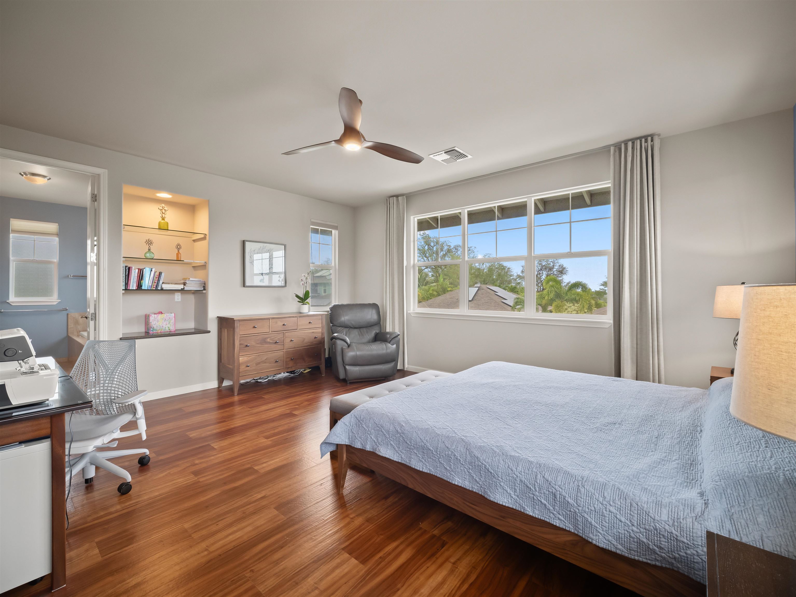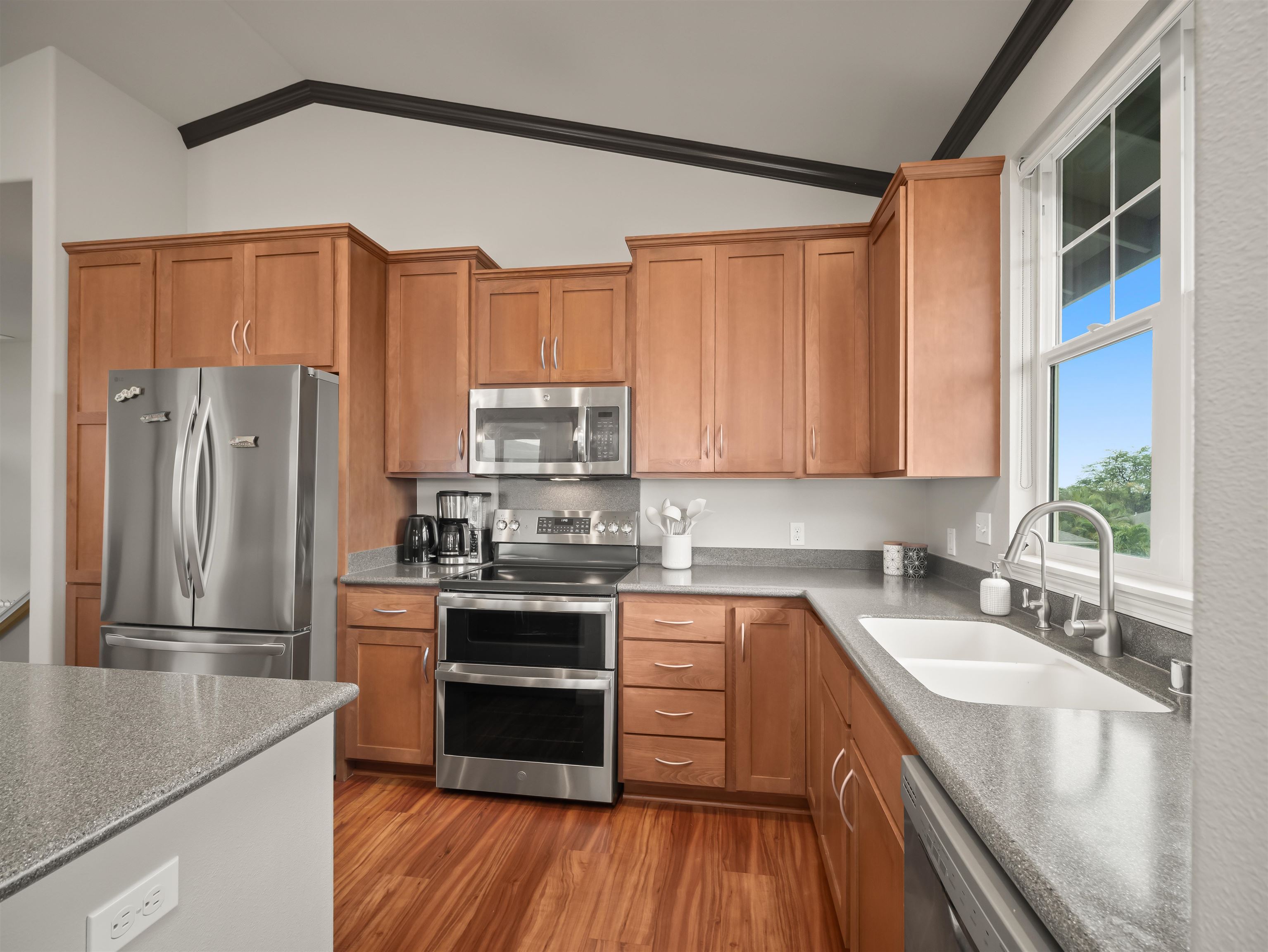 WELCOME HOME to one of the finest offerings in The Parkways at Maui Lani–this former model home has been extensively upgraded, meticulously maintained, and is truly move-in ready. Ideally situated along the lush Dunes at Maui Lani Golf Course, this highly desirable Manele Plan 6 offers a spacious and versatile layout designed for both comfortable living and effortless entertaining. With over-height ceilings, 8-foot custom doors, and vaulted ceilings in the great room and kitchen, the home feels bright, open, and inviting. A large covered lanai seamlessly extends your living space outdoors–perfect for enjoying Maui’s year-round climate. This thoughtfully designed home features multiple living areas, including a separate family room, providing flexibility for extended family, guests, or work-from-home needs. Since its time as the developer’s model home, the property has been significantly enhanced with high-quality upgrades and improvements, including: - Owned photovoltaic system (11 panels) with Tesla battery — dramatically reducing electric costs - Daikin 2-zone central AC + additional split systems for efficient, customized cooling - Hybrid heat pump water heater (energy efficient and helps cool the garage) - New luxury vinyl plank flooring throughout lower level - Extensive interior repainting and updated lighting, fixtures, and smart switches - Upgraded appliances, including new refrigerator, stove (2025), washer/dryer (2022), double oven (2025) and reverse osmosis water filtration system - New windows (2024) replaced under warranty for improved clarity and efficiency The exterior and grounds have been equally improved, creating a private, low-maintenance oasis: - Vinyl fencing, retaining walls, and fully upgraded drainage system - Lush yet water-conscious landscaping with mature fruit trees (avocado, mango, citrus, papaya, lilikoi) and organic garden beds - Automated irrigation and French drains - New gutters, front steps, and outdoor shade system for added comfort and functionality This beautiful cul-de-sac home with amazing Haleakala and West Maui mountain views in the heart of the Maui Lani Master Planned Community, you are just minutes from schools, shopping, dining, medical facilities, and more. This is a rare opportunity to own a highly upgraded, energy-efficient, and beautifully maintained home in one of Central Maui’s most sought-after communities–perfect for owner-occupants, second-home buyers, or anyone seeking quality, convenience, and value. Quick closing possible–this home is truly ready to enjoy from day one.