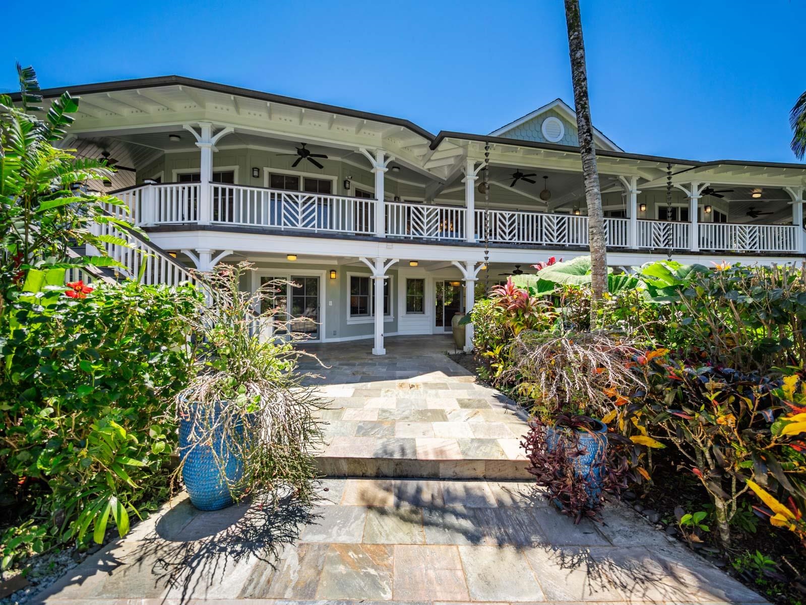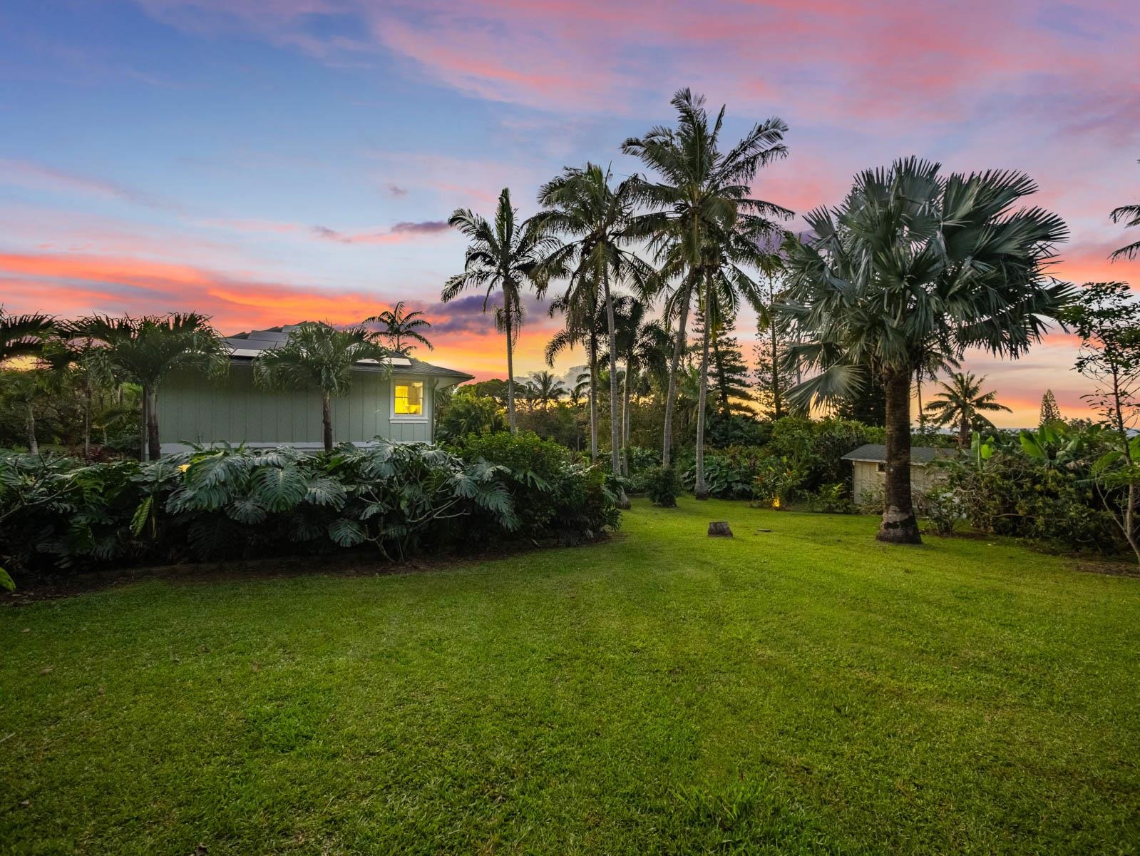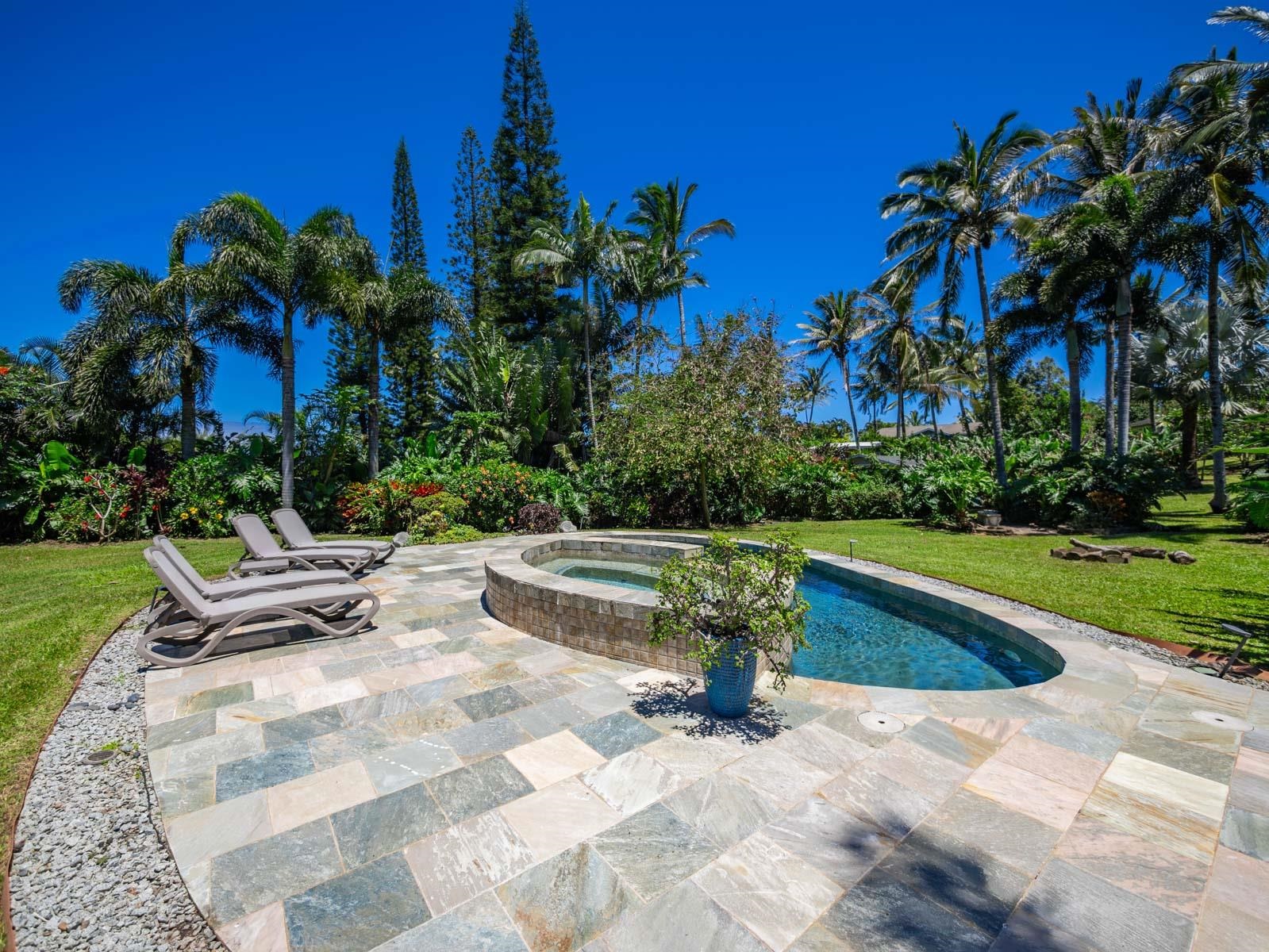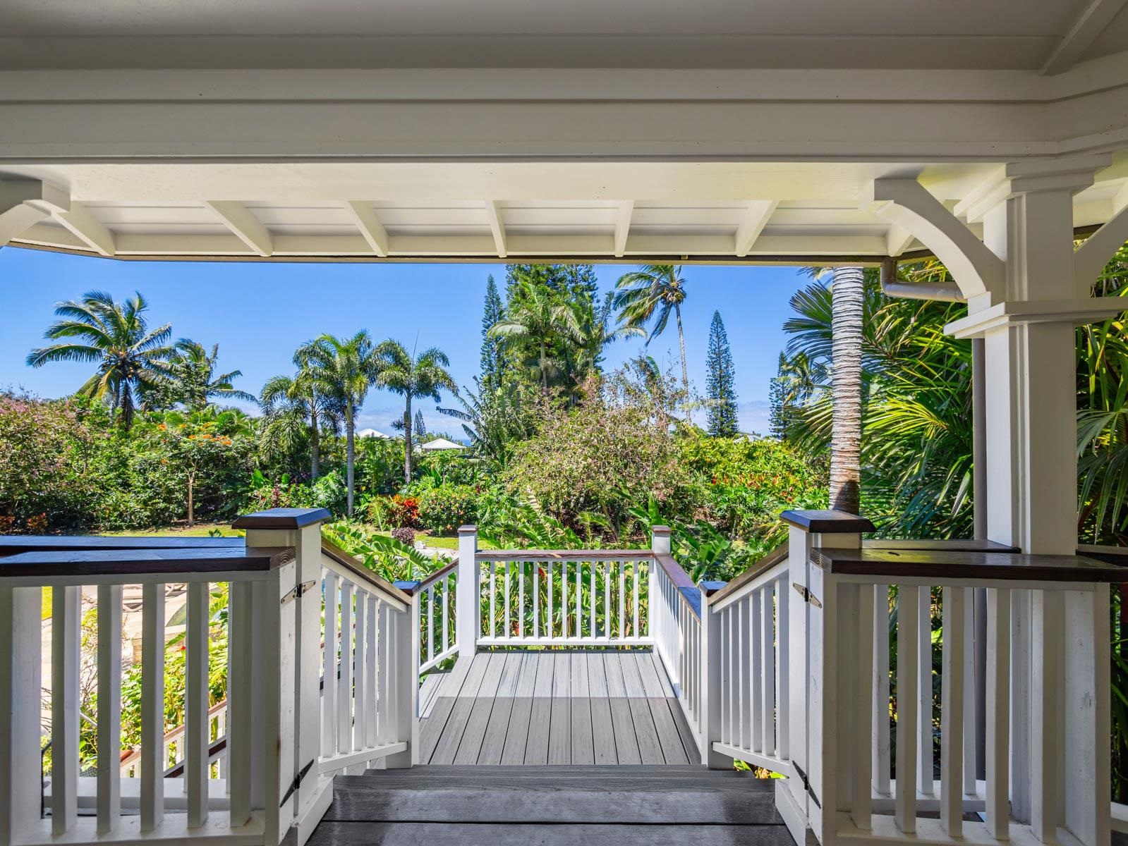 Situated on two privately fenced and gated acres in Haiku, Holokai Hale is a North Shore estate designed for indoor-outdoor living. More than 1,600 square feet of covered space includes lanais, walkways, and multiple areas to relax. Plumeria and puakenikeni line the grounds, with partial ocean views through the canopy. The home offers five bedrooms, six bathrooms, and over 5,000 square feet. The main residence centers on a chef’s kitchen with a large island, butler’s pantry, and direct access to covered lanais for dining and entertaining. Interior and exterior spaces connect seamlessly. The grounds include a saline pool and spa, sauna, cold plunge, and established landscaping with raised garden beds, papaya trees, banana and ginger groves, citrus, lei flowers, and a mature soursop tree. You will find vaulted ceilings and Brazilian Tiger wood floors and each bedroom includes an en-suite bathroom with the primary bedrooms Italian White Carrara Marble bathroom and extra large dressing suite. A separate guest suite provides privacy for extended stays. Additional structures include a detached workshop, an air-conditioned studio with its own sink, and a bonus room above the garage which also has a dumbwaiter. The property is supported by a 52-panel photovoltaic system, solar hot water, split air conditioning, and a whole-home backup generator. Holokai Hale is a flexible property suited for a primary residence, extended family living, or a private retreat.