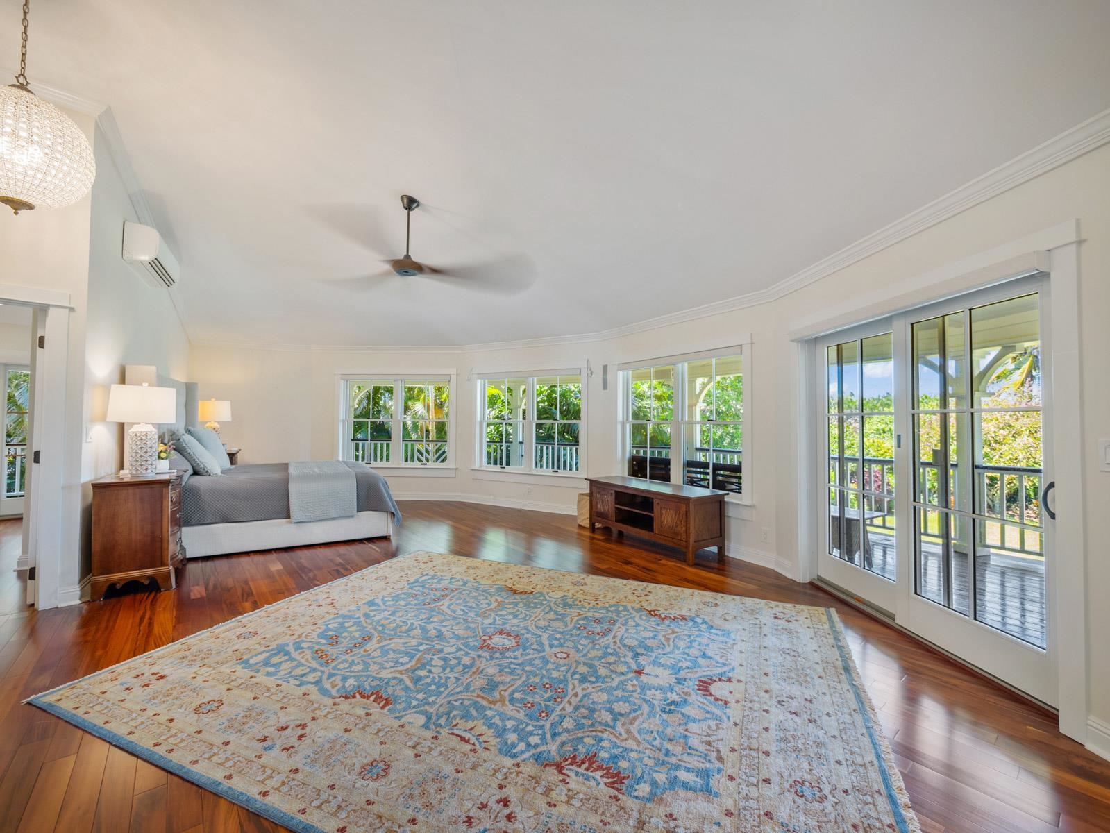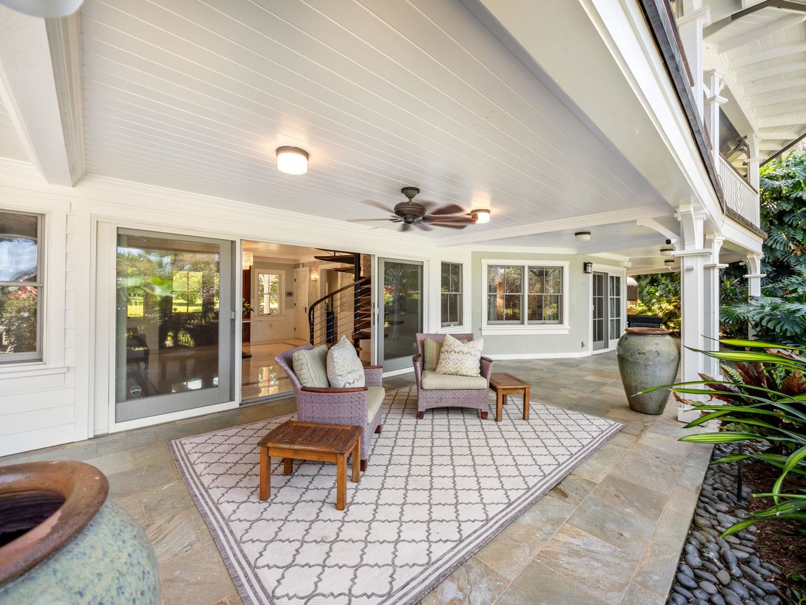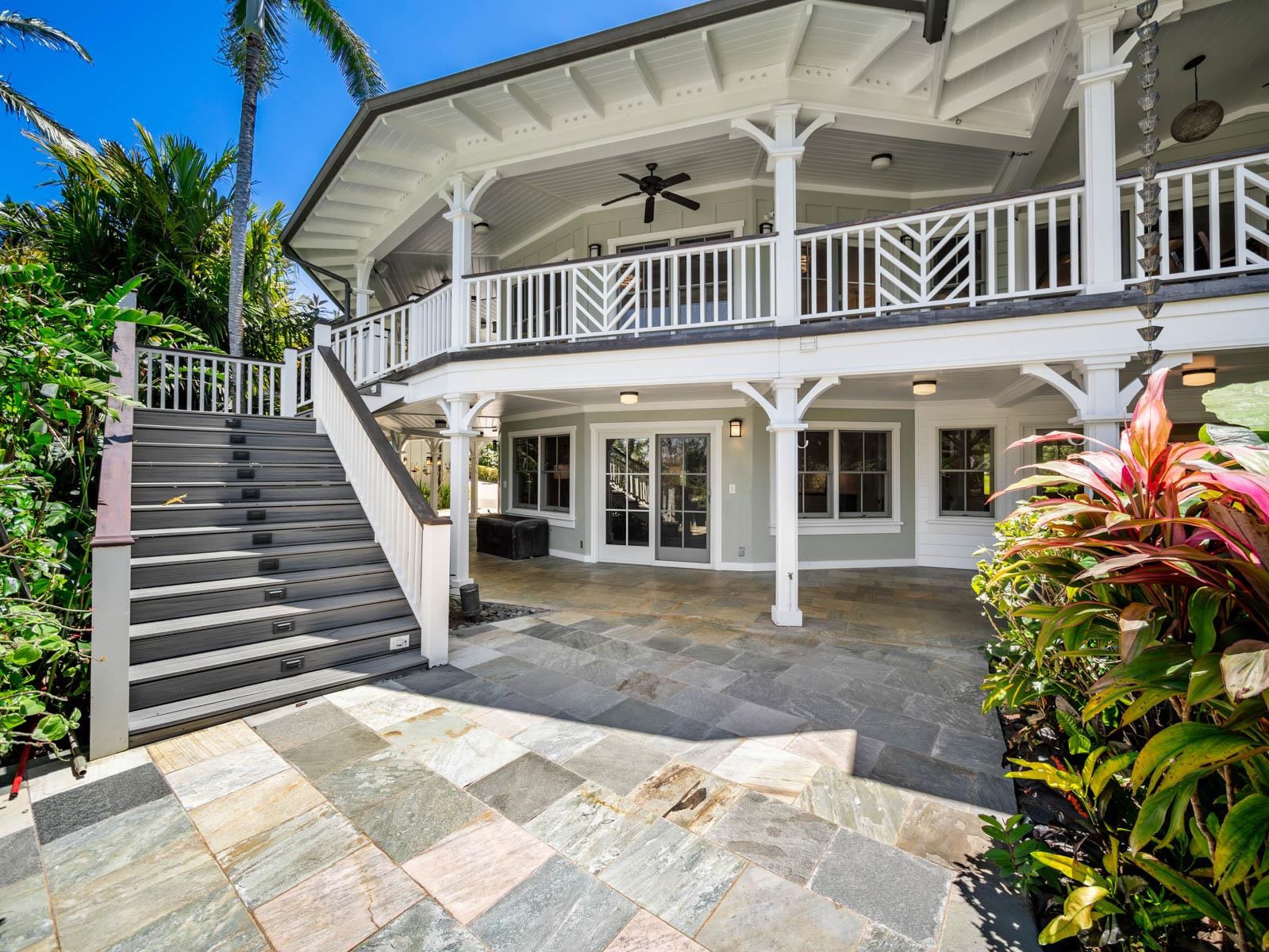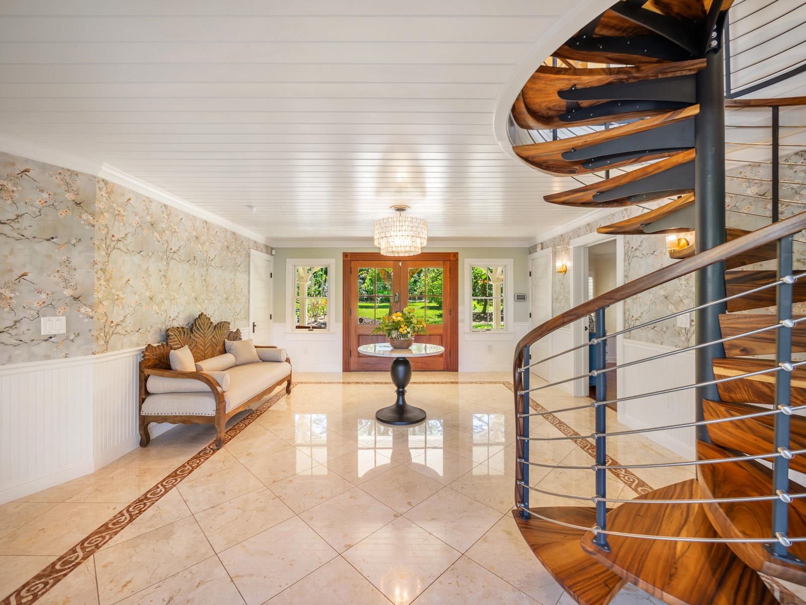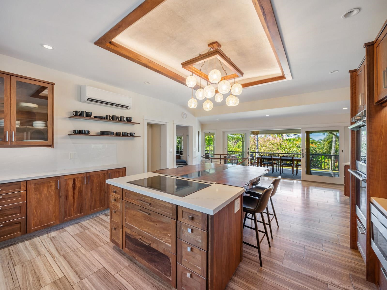 Situated on two privately fenced and gated acres in Haiku, Holokai Hale is a North Shore estate designed for indoor-outdoor living. More than 1,600 square feet of covered space includes lanais, walkways, and multiple areas to relax. Plumeria and puakenikeni line the grounds, with partial ocean views through the canopy. The home offers five bedrooms, six bathrooms, and over 5,000 square feet. The main residence centers on a chef’s kitchen with a large island, butler’s pantry, and direct access to covered lanais for dining and entertaining. Interior and exterior spaces connect seamlessly. The grounds include a saline pool and spa, sauna, cold plunge, and established landscaping with raised garden beds, papaya trees, banana and ginger groves, citrus, lei flowers, and a mature soursop tree. You will find vaulted ceilings and Brazilian Tiger wood floors and each bedroom includes an en-suite bathroom with the primary bedrooms Italian White Carrara Marble bathroom and extra large dressing suite. A separate guest suite provides privacy for extended stays. Additional structures include a detached workshop, an air-conditioned studio with its own sink, and a bonus room above the garage which also has a dumbwaiter. The property is supported by a 52-panel photovoltaic system, solar hot water, split air conditioning, and a whole-home backup generator. Holokai Hale is a flexible property suited for a primary residence, extended family living, or a private retreat.