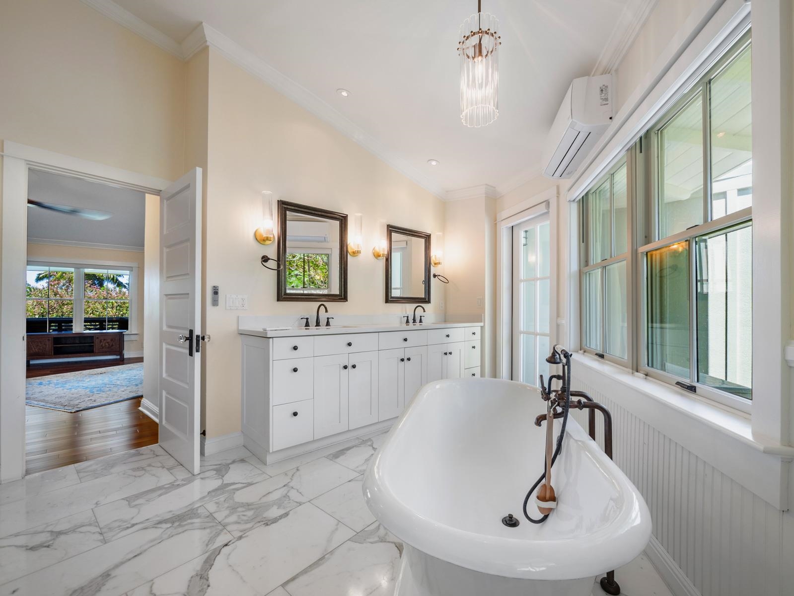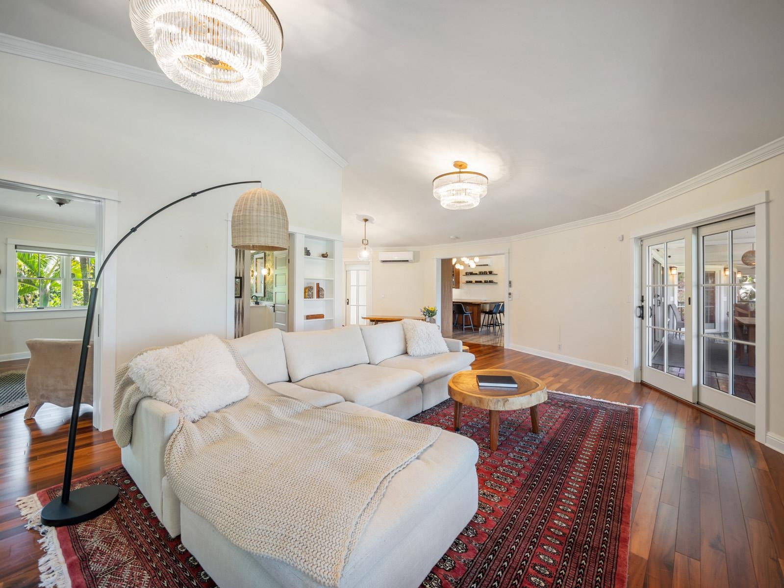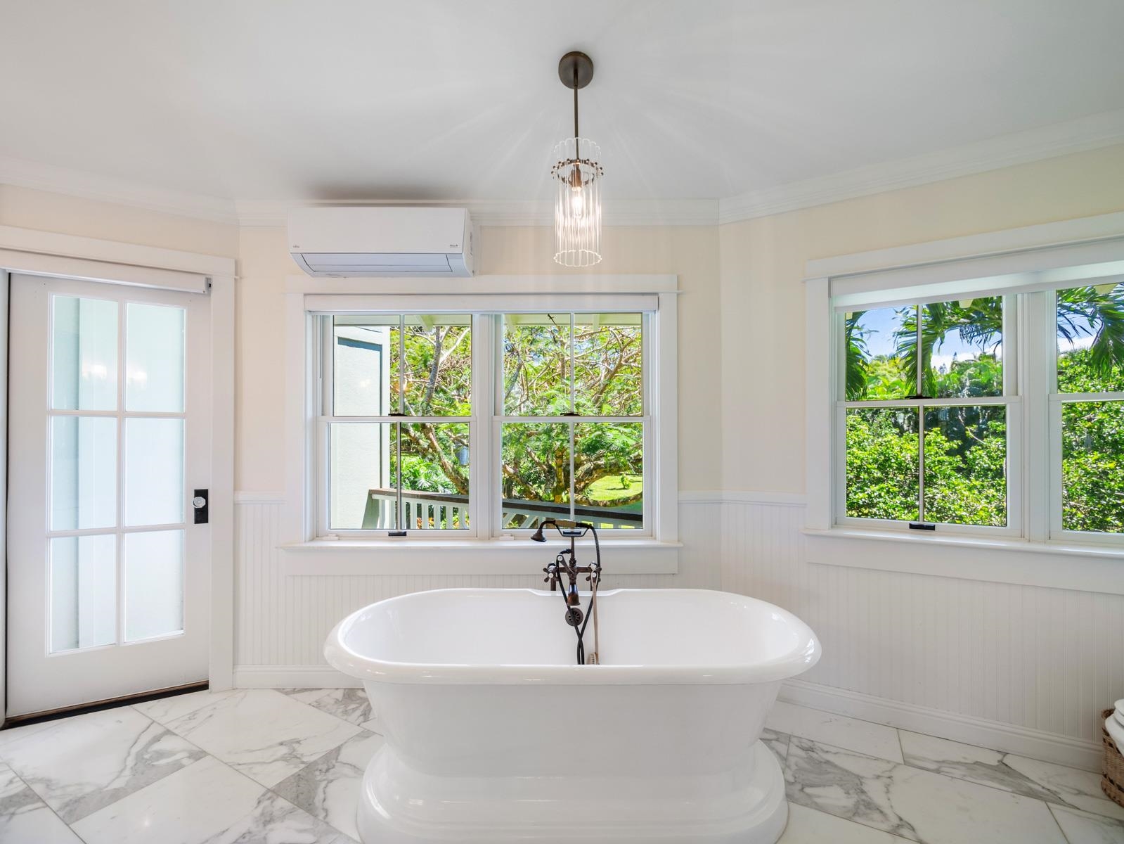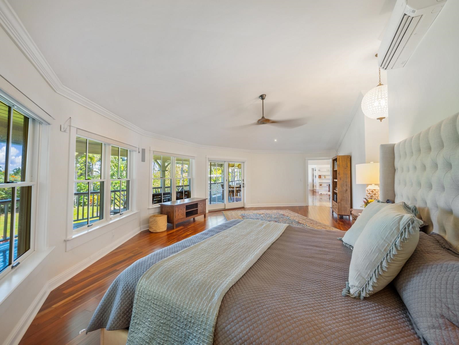 Situated on two privately fenced and gated acres in Haiku, Holokai Hale is a North Shore estate designed for indoor-outdoor living. More than 1,600 square feet of covered space includes lanais, walkways, and multiple areas to relax. Plumeria and puakenikeni line the grounds, with partial ocean views through the canopy. The home offers five bedrooms, six bathrooms, and over 5,000 square feet. The main residence centers on a chef’s kitchen with a large island, butler’s pantry, and direct access to covered lanais for dining and entertaining. Interior and exterior spaces connect seamlessly. The grounds include a saline pool and spa, sauna, cold plunge, and established landscaping with raised garden beds, papaya trees, banana and ginger groves, citrus, lei flowers, and a mature soursop tree. You will find vaulted ceilings and Brazilian Tiger wood floors and each bedroom includes an en-suite bathroom with the primary bedrooms Italian White Carrara Marble bathroom and extra large dressing suite. A separate guest suite provides privacy for extended stays. Additional structures include a detached workshop, an air-conditioned studio with its own sink, and a bonus room above the garage which also has a dumbwaiter. The property is supported by a 52-panel photovoltaic system, solar hot water, split air conditioning, and a whole-home backup generator. Holokai Hale is a flexible property suited for a primary residence, extended family living, or a private retreat.