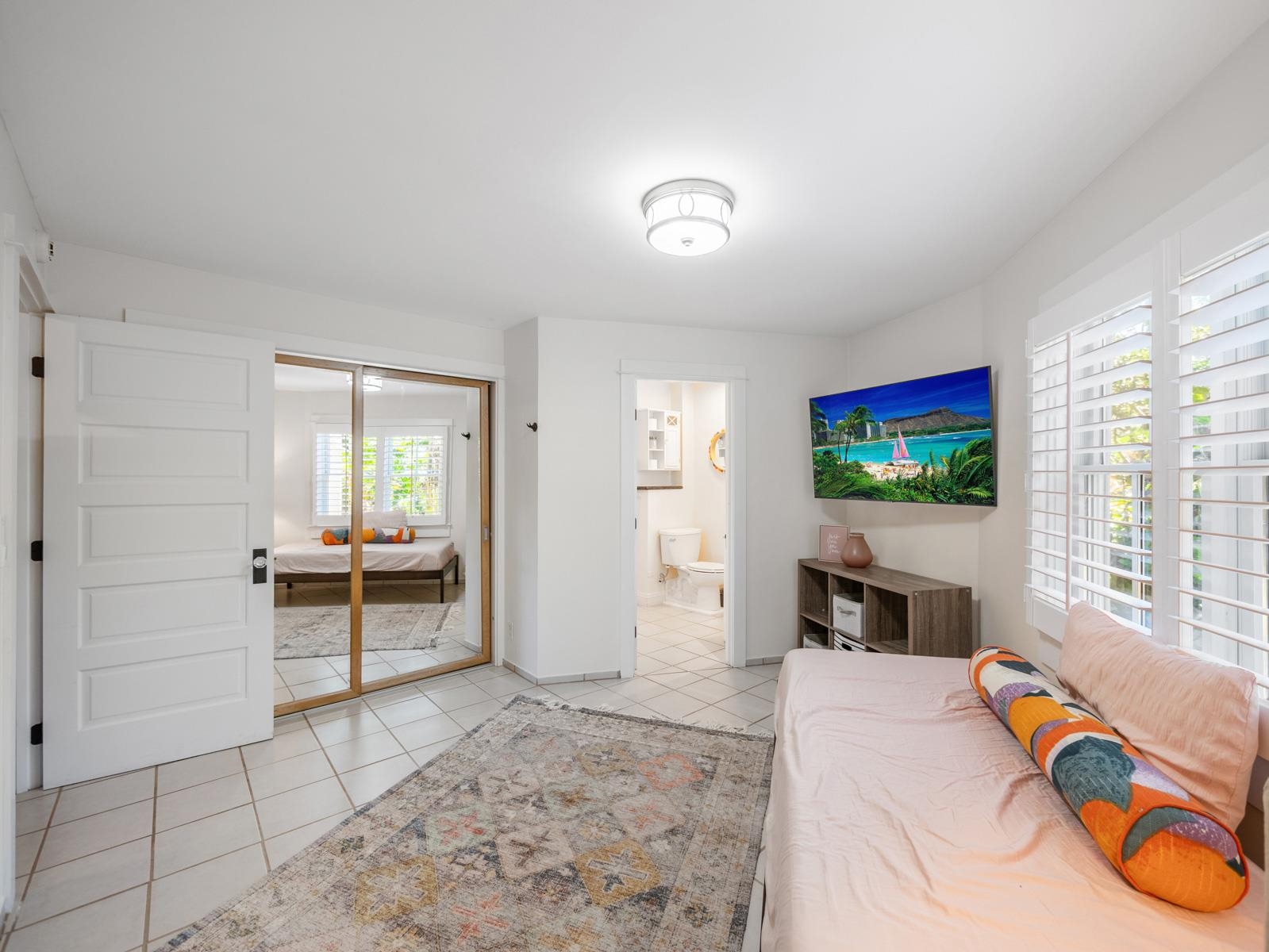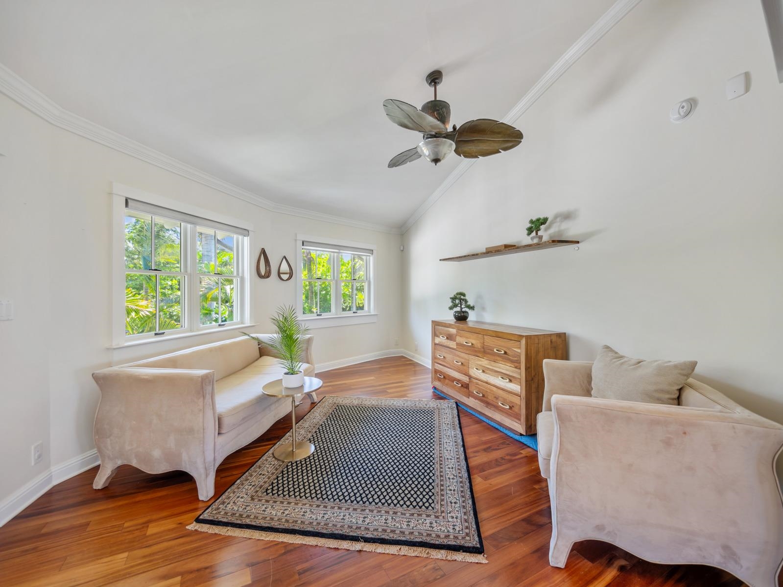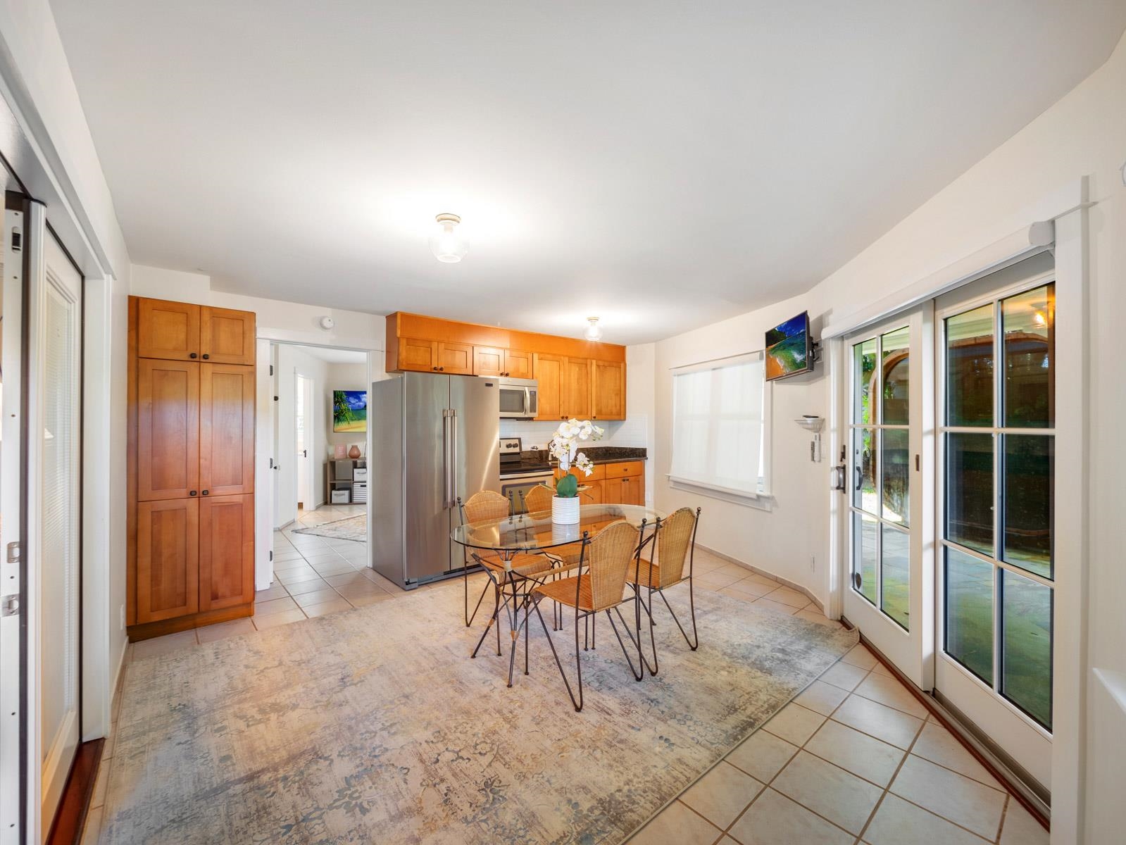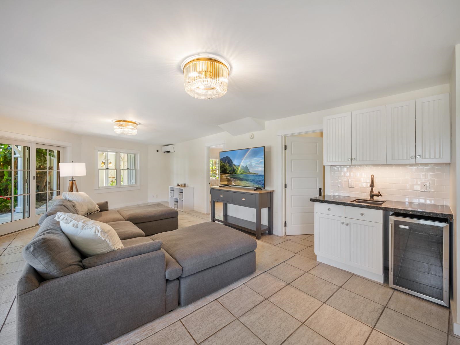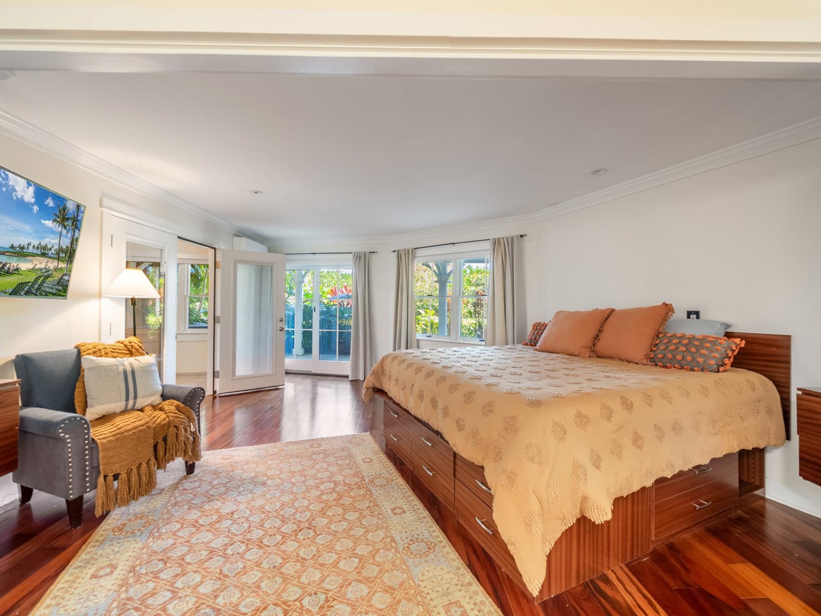 Situated on two privately fenced and gated acres in Haiku, Holokai Hale is a North Shore estate designed for indoor-outdoor living. More than 1,600 square feet of covered space includes lanais, walkways, and multiple areas to relax. Plumeria and puakenikeni line the grounds, with partial ocean views through the canopy. The home offers five bedrooms, six bathrooms, and over 5,000 square feet. The main residence centers on a chef’s kitchen with a large island, butler’s pantry, and direct access to covered lanais for dining and entertaining. Interior and exterior spaces connect seamlessly. The grounds include a saline pool and spa, sauna, cold plunge, and established landscaping with raised garden beds, papaya trees, banana and ginger groves, citrus, lei flowers, and a mature soursop tree. You will find vaulted ceilings and Brazilian Tiger wood floors and each bedroom includes an en-suite bathroom with the primary bedrooms Italian White Carrara Marble bathroom and extra large dressing suite. A separate guest suite provides privacy for extended stays. Additional structures include a detached workshop, an air-conditioned studio with its own sink, and a bonus room above the garage which also has a dumbwaiter. The property is supported by a 52-panel photovoltaic system, solar hot water, split air conditioning, and a whole-home backup generator. Holokai Hale is a flexible property suited for a primary residence, extended family living, or a private retreat.
