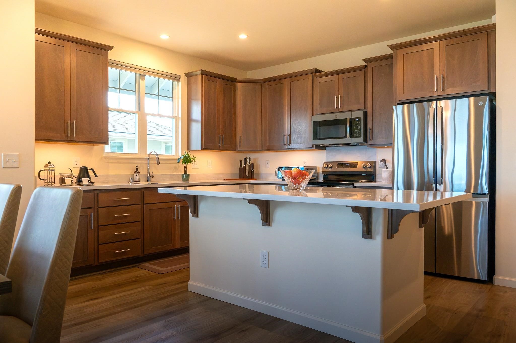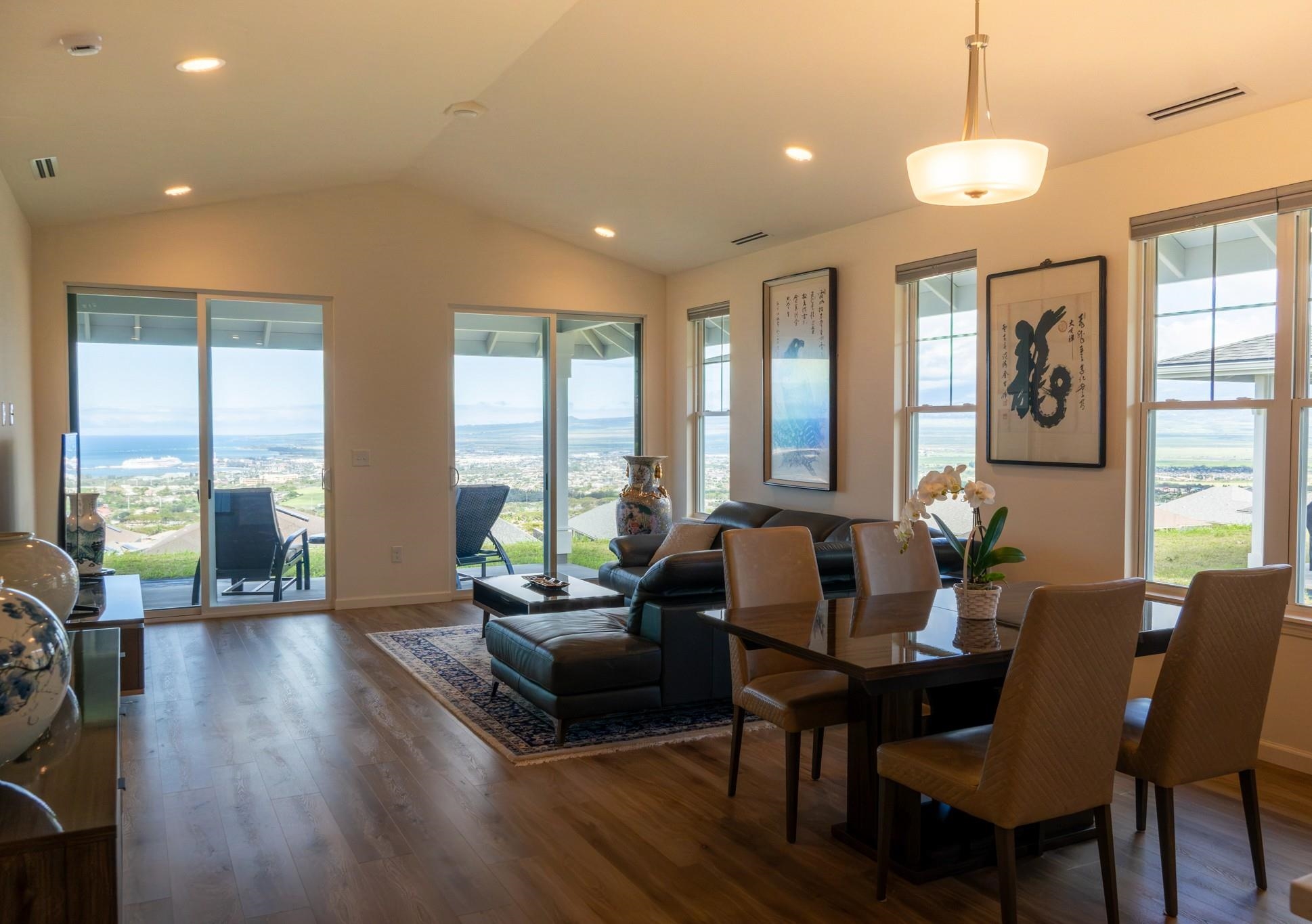 My goodness these stunning vistas!! Beautiful, newly built 3-bedroom 2-bathroom home in Anuhea at Kehalani with sweeping ocean to mountain views. This lovely home is located close to charming Wailuku town and numerous parks, schools, restaurants and shopping. GE Slate gray appliances compliment the beautiful, open kitchen. Huper Optik ceramic window tinting on all windows work alongside the 5-ton Bosch central air conditioning to keep the home cool and protected from UV rays. The oversized lot is a palate for you to design your own tropical oasis. The generous 2-car garage has been upgraded with an EV outlet for your electric vehicle. Welcome home!