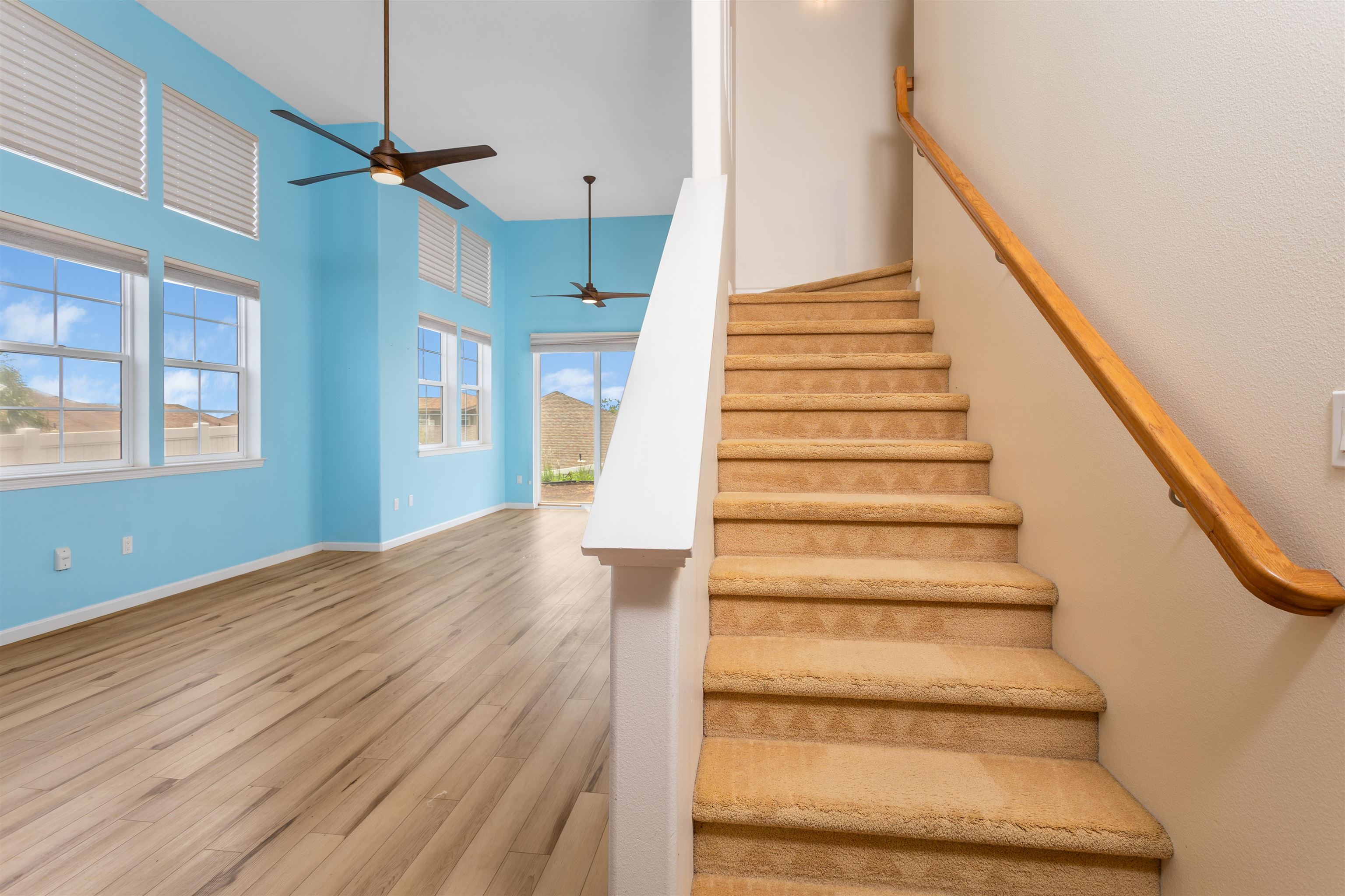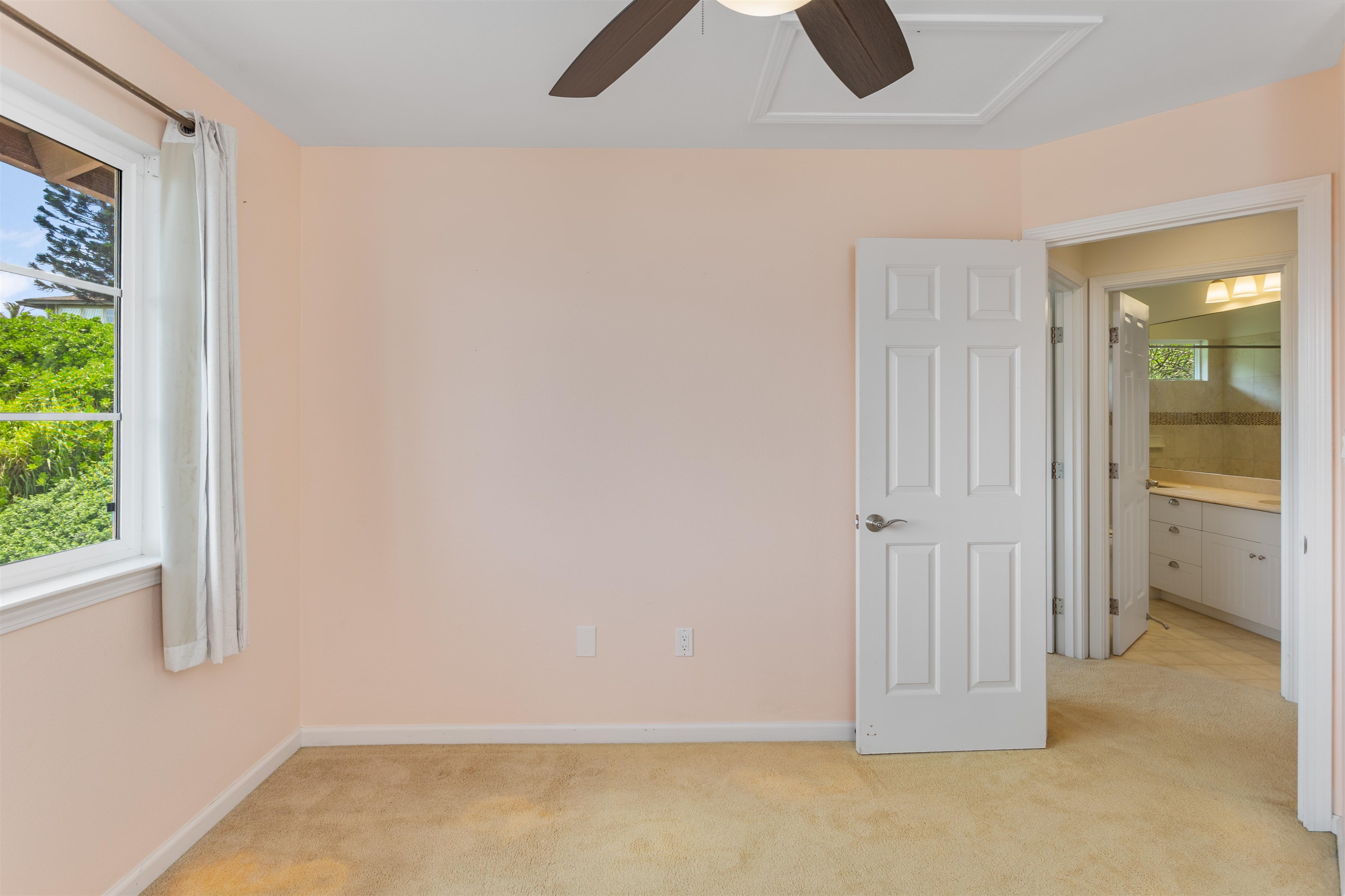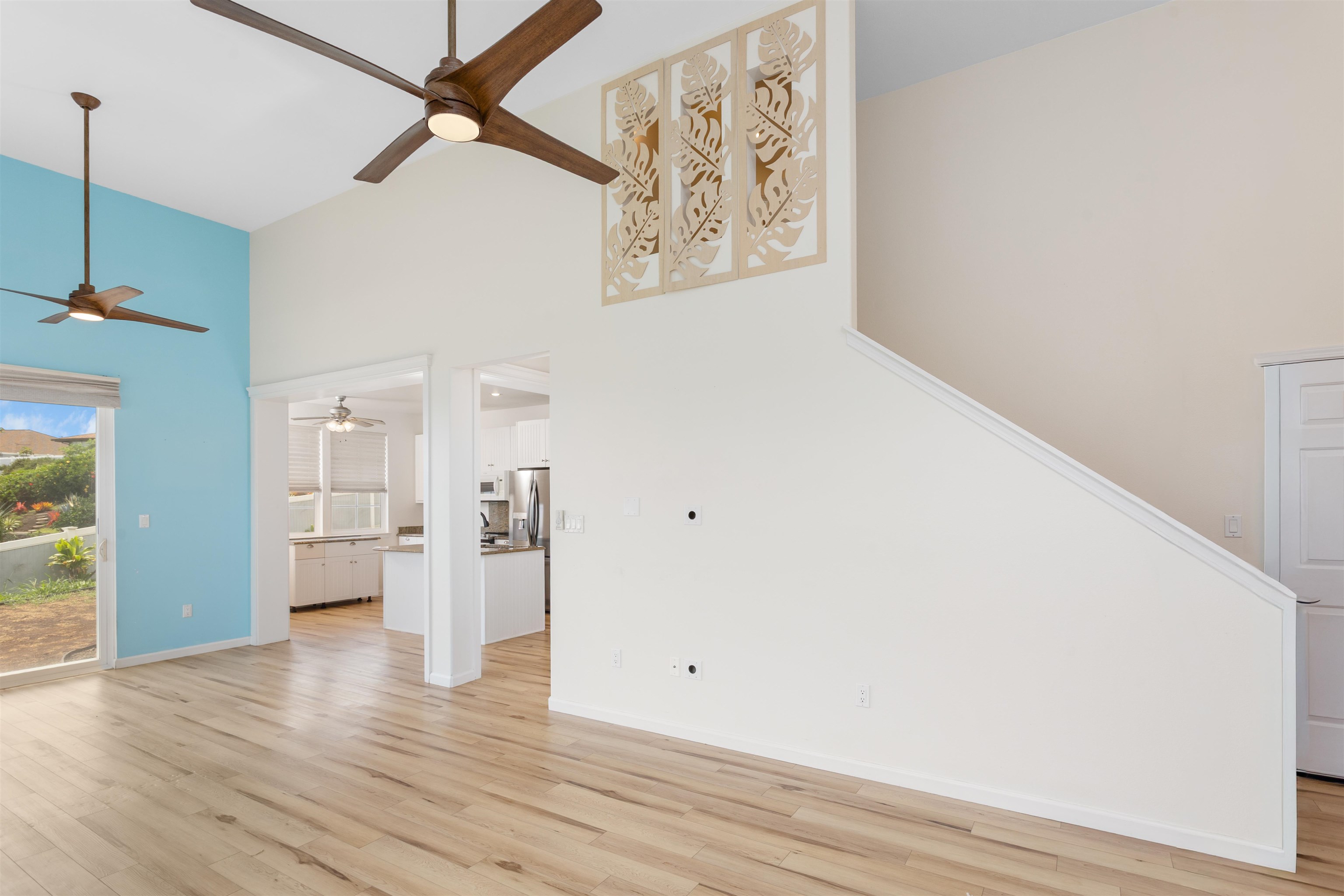 Welcome to your new island sanctuary at 96 Kinohi Loa Street, located in the premier planned community of Kehalani. This 3-bedroom, 2.5-bathroom home offers a rare combination of comfort, convenience, and expansive outdoor space in one of Central Maui's most sought-after neighborhoods. The home’s layout is designed for both accessibility and privacy, featuring a conveniently located downstairs primary bedroom and full bath, plus an adjacent half bath. Upstairs, two additional bedrooms and a full bath serve as peaceful retreats, each offering beautiful views of the garden and the majestic slopes of Haleakala. The heart of the home is defined by its grand, open-concept living area, where soaring high ceilings meet dramatic floor-to-ceiling windows allowing soft, tropical light to filter through and create a vibrant, airy atmosphere. The property features an immense 11,556-square-foot lot that is nearly double the size of the typical Kehalani parcel. This vast yard offers a peekaboo ocean view and serene vantage for watching the sunset glow over Haleakala. A fully owned solar panel system delivers sustainable energy and significant utility savings without the burden of a monthly lease. Complementing this efficiency is a dedicated electric vehicle charging station, ensuring the home is perfectly equipped for the future of island travel. Outdoors, gardeners will delight in the raised flower bed and a thriving herb garden, featuring aromatic basil, rosemary, and other herbs. Located at a higher elevation, the Kehalani neighborhood enjoys cooler temperatures and refreshing trade winds, with the mountains providing natural shade from the late afternoon sun. Living here means enjoying miles of pedestrian trails, neighborhood parks, beautiful sunrises and afternoon walks with ocean and mountain views. The location offers the perfect home base for a seamless Maui lifestyle with ultimate convenience. You are just minutes away from the Kehalani Village Center, Maui Memorial Medical Center, and the charming shops and eateries of historic Wailuku Town. The beaches of Kihei, the spirit of Lahaina, and the beauty of Upcountry are all quickly reachable within 30 minutes. Whether you are heading to work or setting off for a fun day at the beach or shopping and dining, this home offers a great location to easily enjoy the best Maui has to offer.