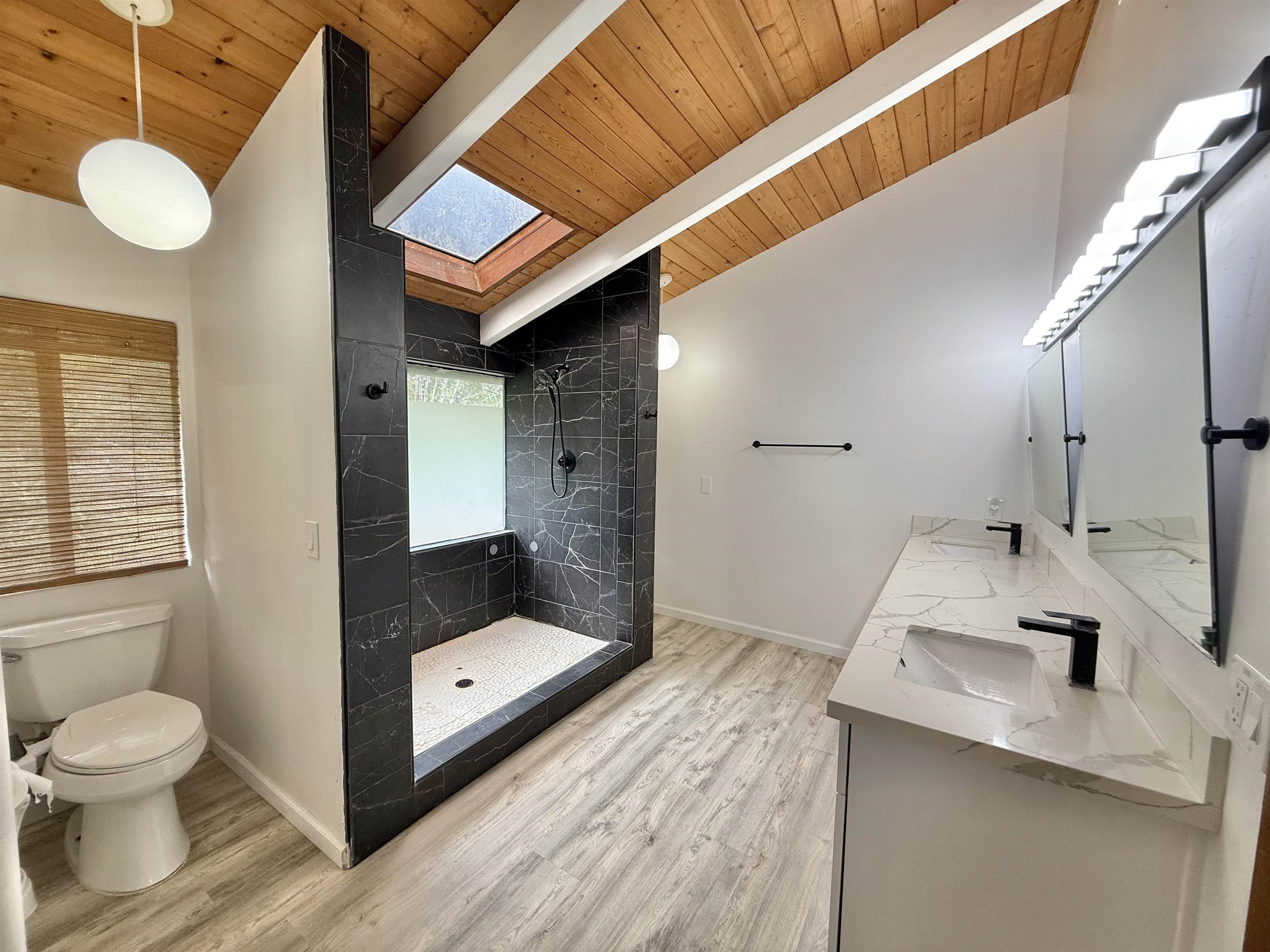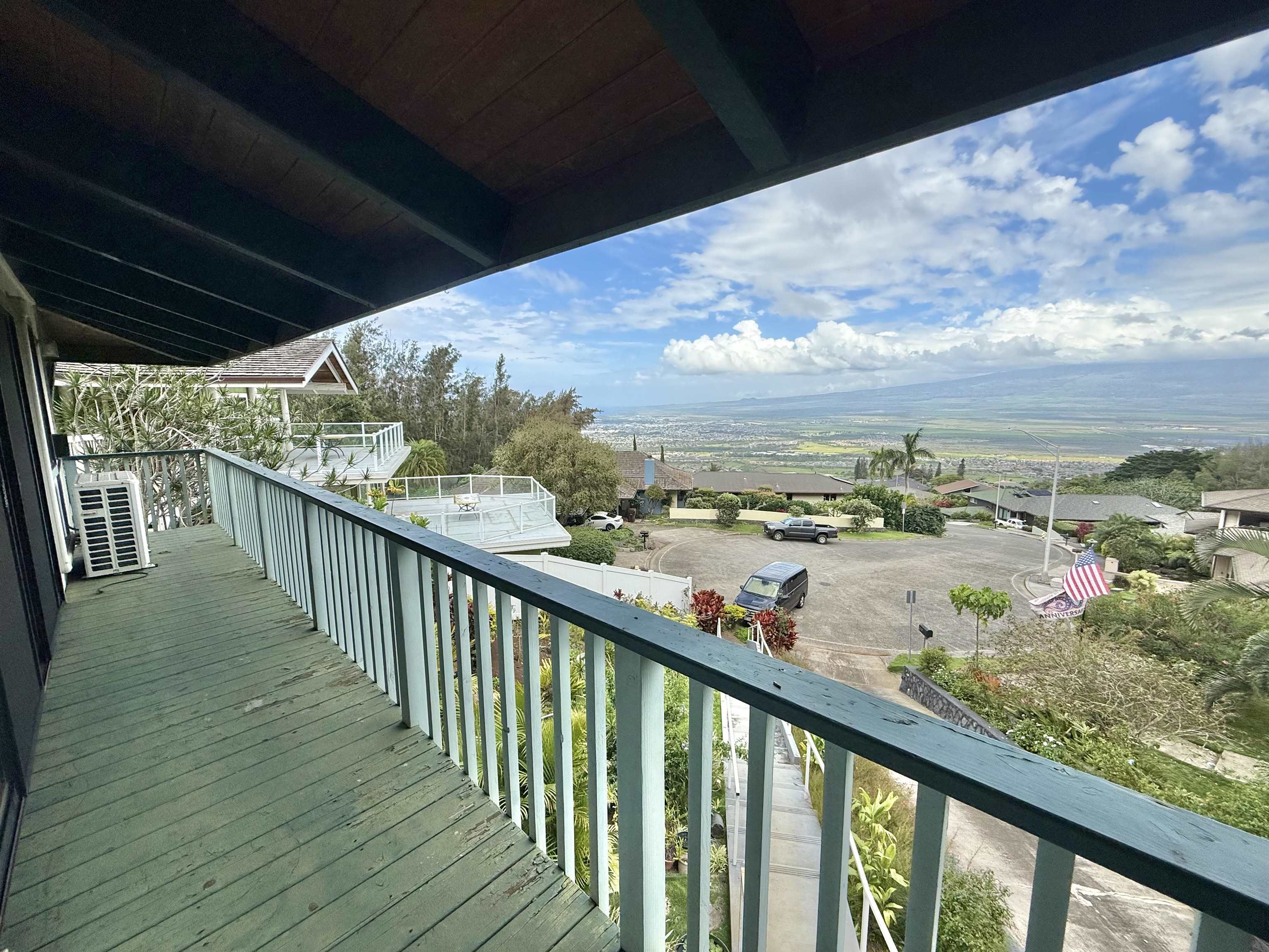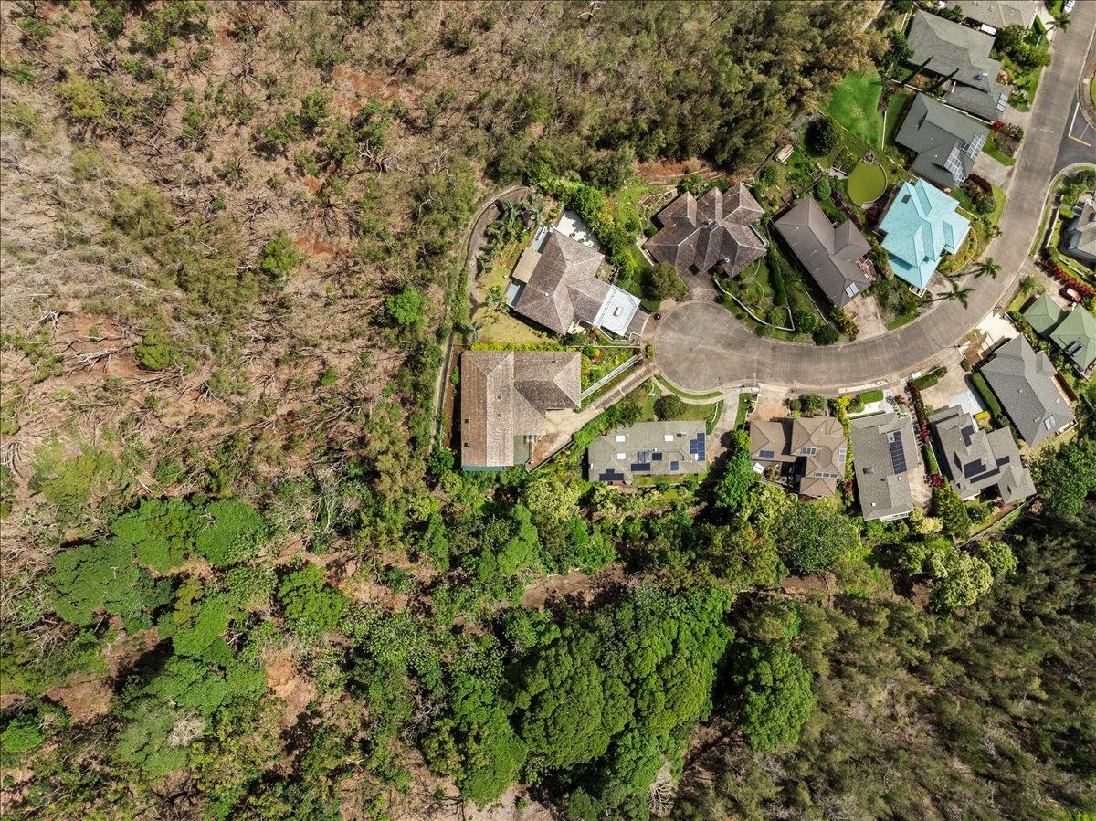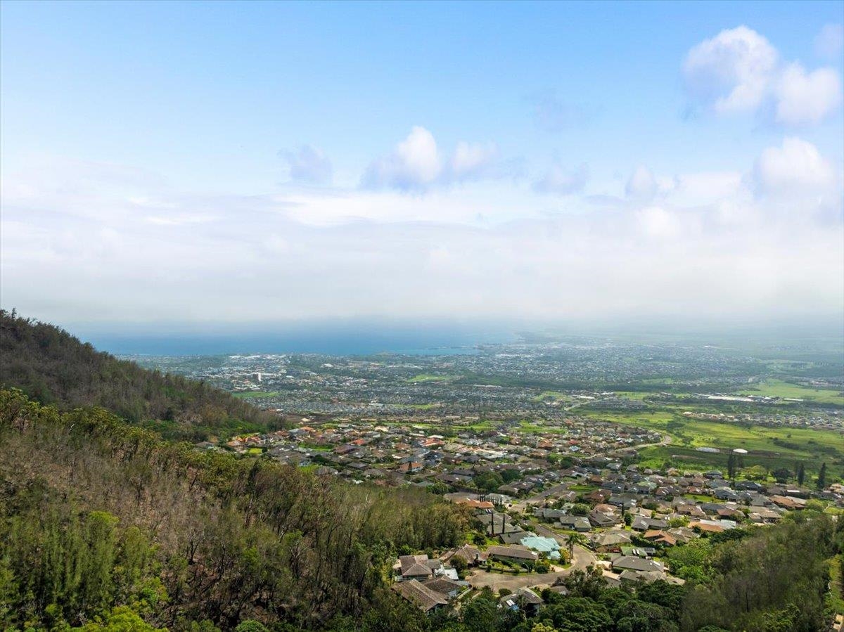 Perched at the top of Wailuku Heights, this exceptional residence offers a rare blend of space, privacy, and breathtaking natural beauty. This expansive 4-bedroom, 4-bathroom home boasts approximately 4,248 square feet of interior living space on a generous 10,794 square foot lot. Designed to capture the essence of island living, the property features soaring vaulted ceilings, a grand entrance, and seamless indoor outdoor flow with wrap-around patios on every level. Perfect for enjoying panoramic mountain and forest views. The main living area is thoughtfully appointed with a fireplace, large 7-span ceiling fans, and a split air conditioning unit for year-round comfort. The well equipped kitchen includes a double oven with range, ample pantry storage, and functional layout ideal for both everyday living and entertaining. The spacious primary suite serves as a private retreat, complete with its own split AC system and a fully renovated ensuite bathroom. Luxurious finishes include a double vanity with quartz countertops, LVP flooring, dual toilets, and an elegant walk-in shower with dual shower heads and rich dark tile. A skylight above the soaking tub frames a serene, picture-perfect forest view, creating a spa-like experience. All bathrooms throughout the home feature tiled showers, and the renovated laundry room continues the high-end finishes and functionality found in the primary suite. Additional highlights include abundant storage space, an 896 square foot garage accommodating 2—3 vehicles, and a beautifully landscaped front garden. With the West Maui Mountains as your backyard backdrop, this 1989-built home offers a rare opportunity to own a distinctive property in one of Maui’s most desirable neighborhoods. Contact your favorite realtor for a showing!