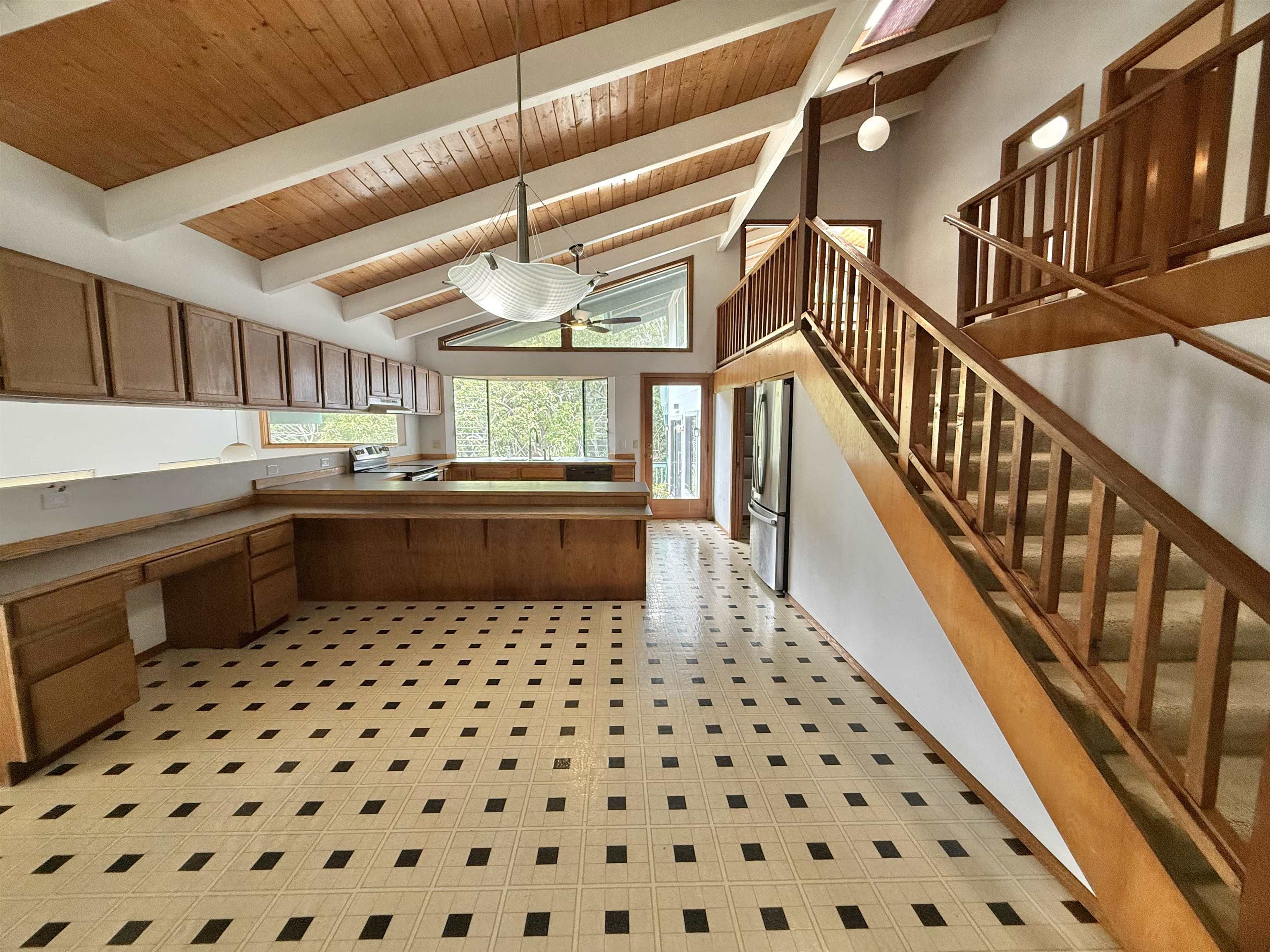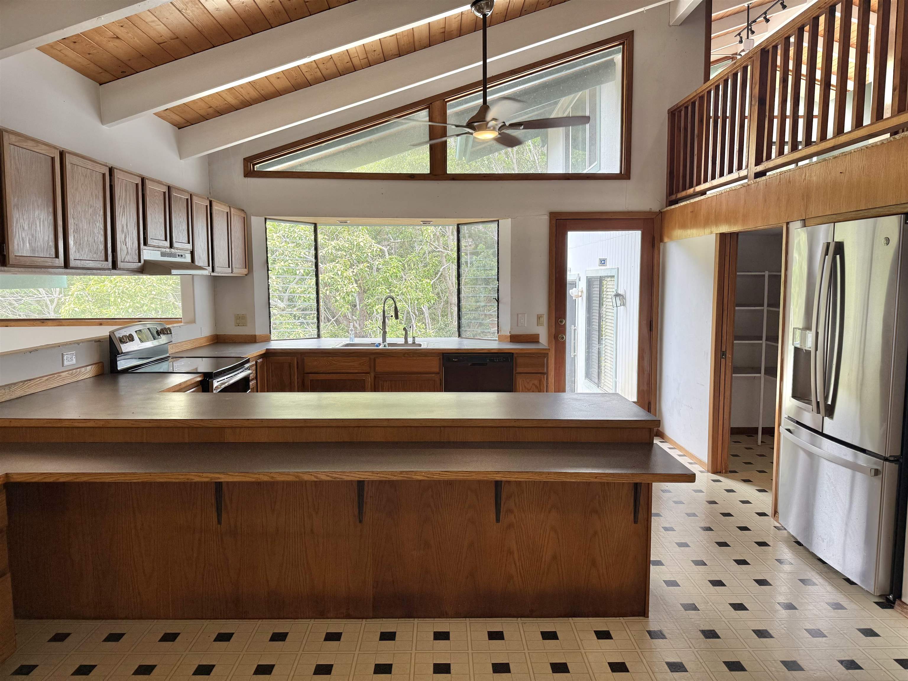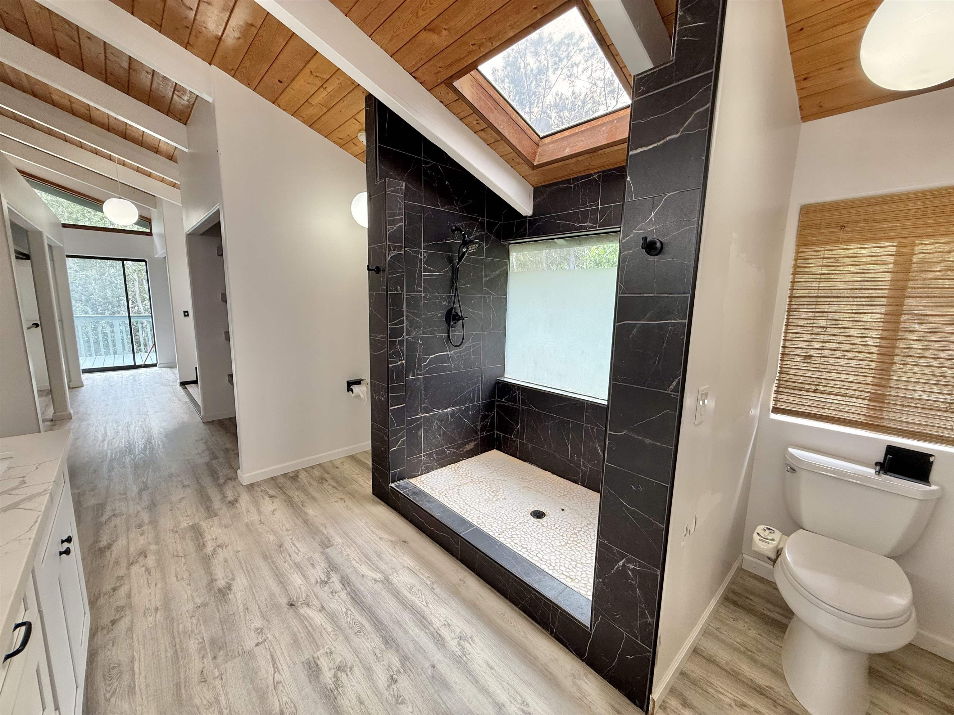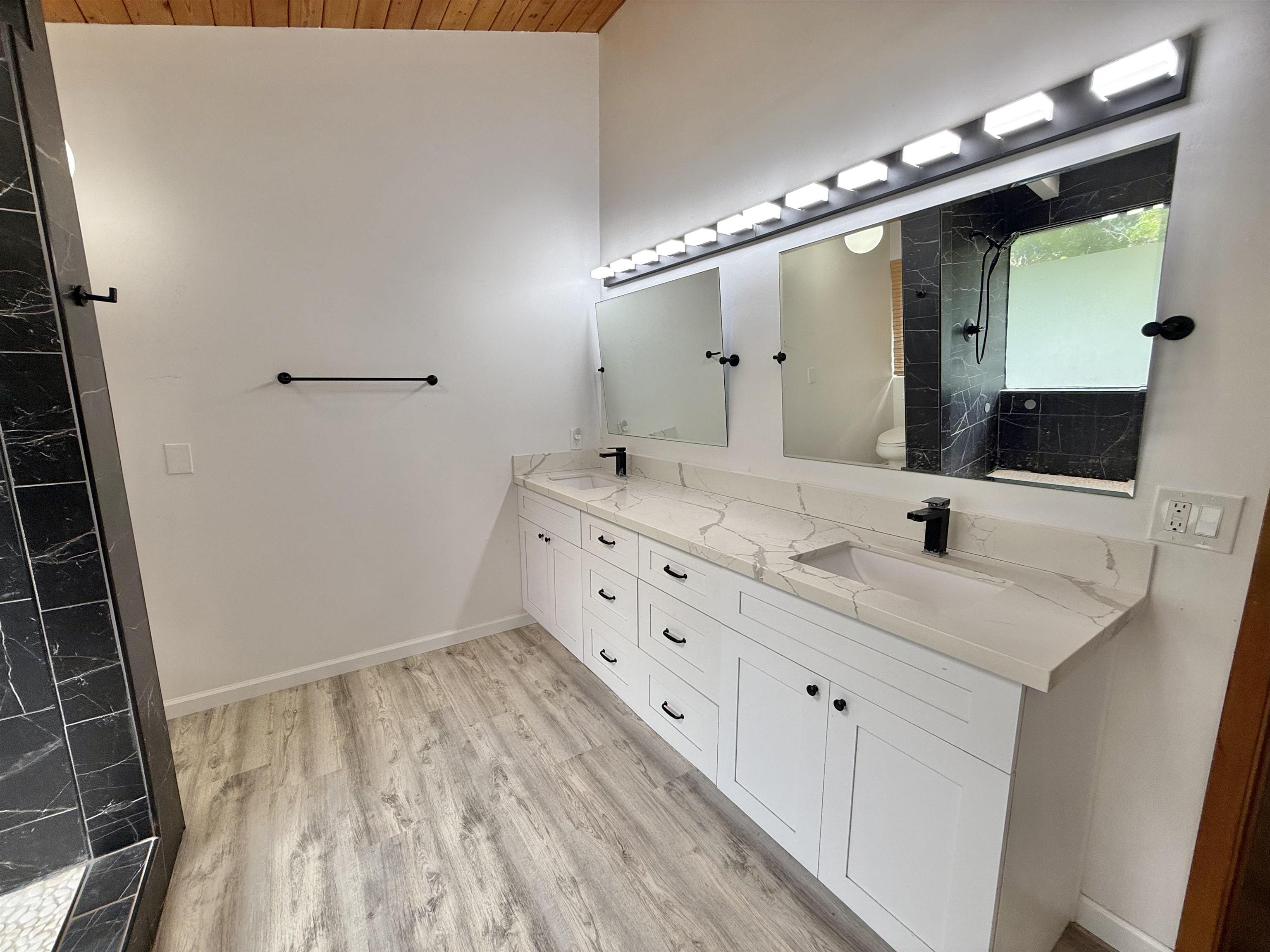 Perched at the top of Wailuku Heights, this exceptional residence offers a rare blend of space, privacy, and breathtaking natural beauty. This expansive 4-bedroom, 4-bathroom home boasts approximately 4,248 square feet of interior living space on a generous 10,794 square foot lot. Designed to capture the essence of island living, the property features soaring vaulted ceilings, a grand entrance, and seamless indoor outdoor flow with wrap-around patios on every level. Perfect for enjoying panoramic mountain and forest views. The main living area is thoughtfully appointed with a fireplace, large 7-span ceiling fans, and a split air conditioning unit for year-round comfort. The well equipped kitchen includes a double oven with range, ample pantry storage, and functional layout ideal for both everyday living and entertaining. The spacious primary suite serves as a private retreat, complete with its own split AC system and a fully renovated ensuite bathroom. Luxurious finishes include a double vanity with quartz countertops, LVP flooring, dual toilets, and an elegant walk-in shower with dual shower heads and rich dark tile. A skylight above the soaking tub frames a serene, picture-perfect forest view, creating a spa-like experience. All bathrooms throughout the home feature tiled showers, and the renovated laundry room continues the high-end finishes and functionality found in the primary suite. Additional highlights include abundant storage space, an 896 square foot garage accommodating 2—3 vehicles, and a beautifully landscaped front garden. With the West Maui Mountains as your backyard backdrop, this 1989-built home offers a rare opportunity to own a distinctive property in one of Maui’s most desirable neighborhoods. Contact your favorite realtor for a showing!