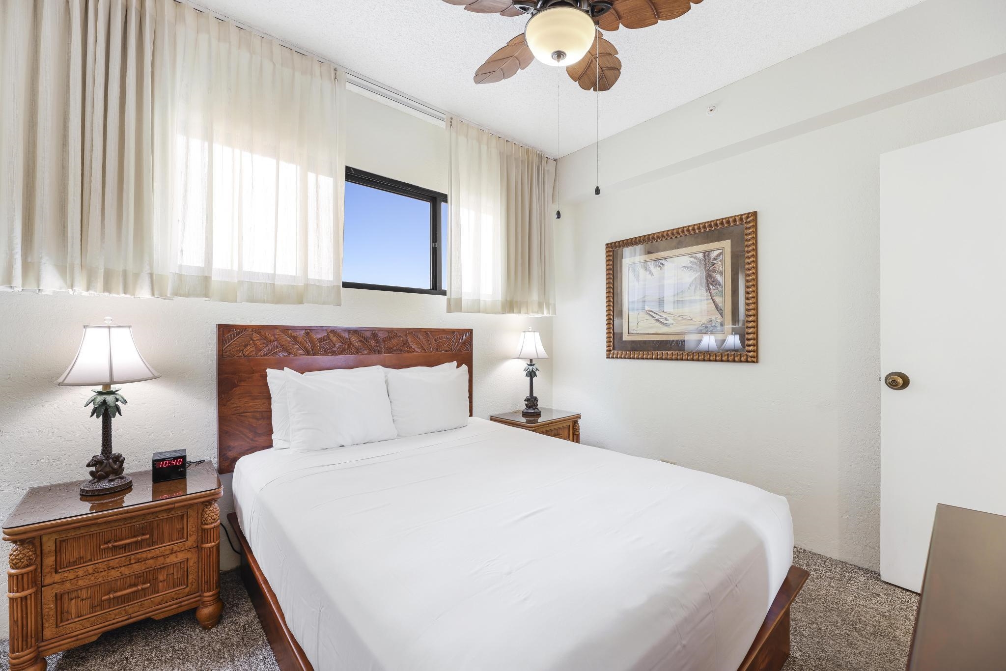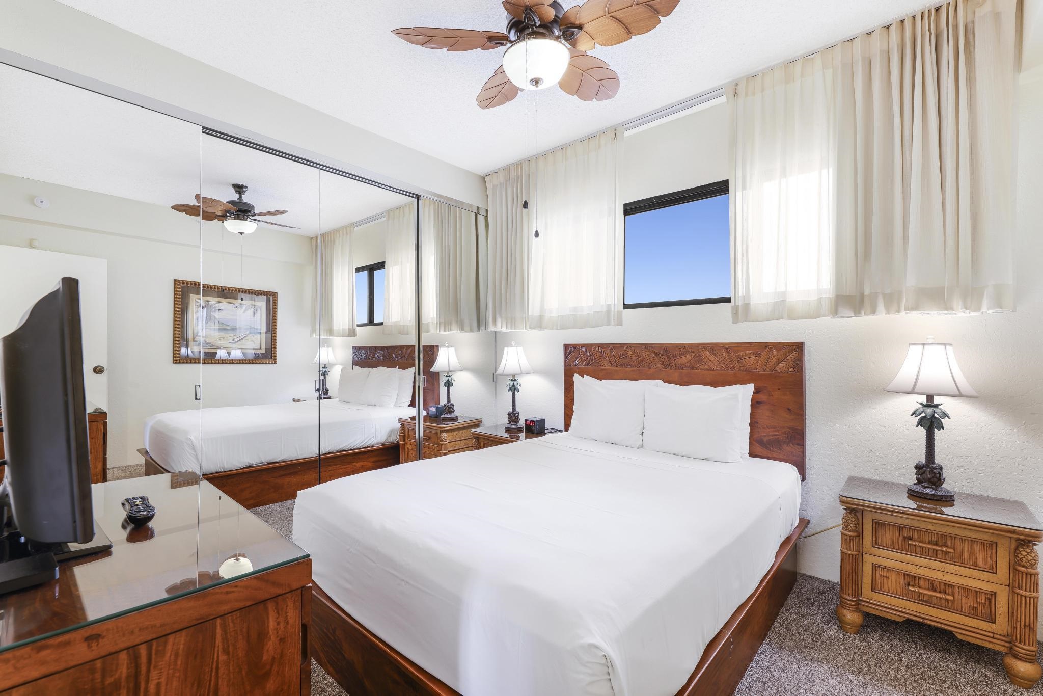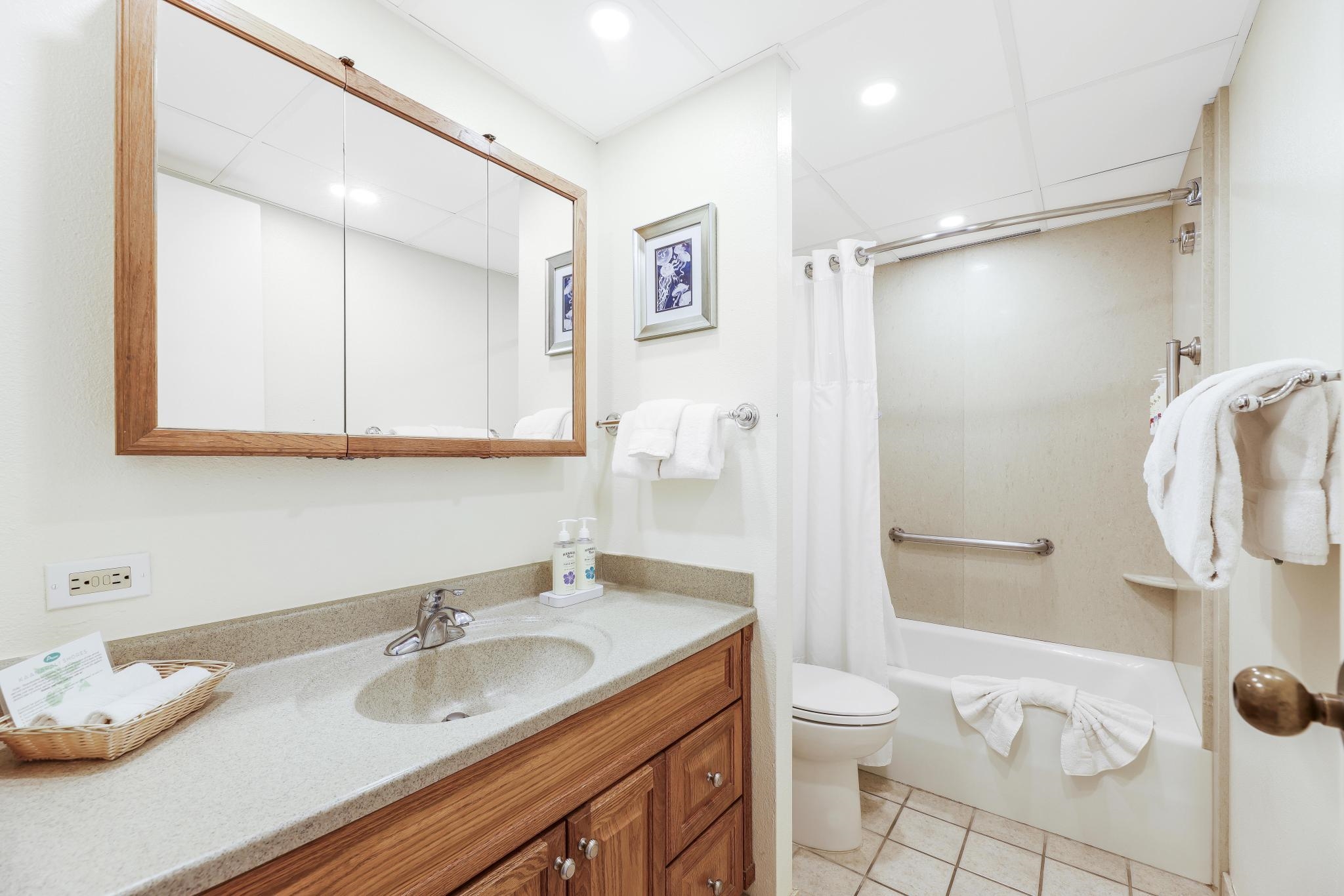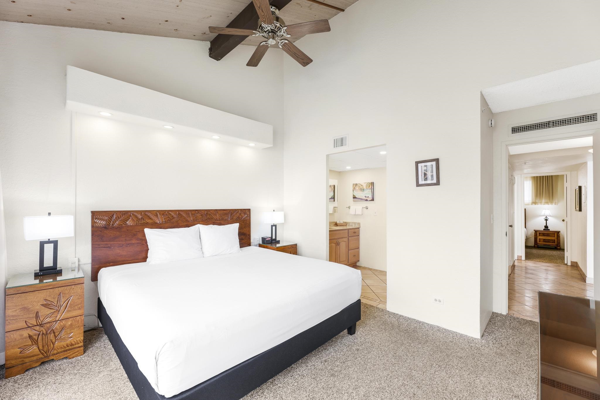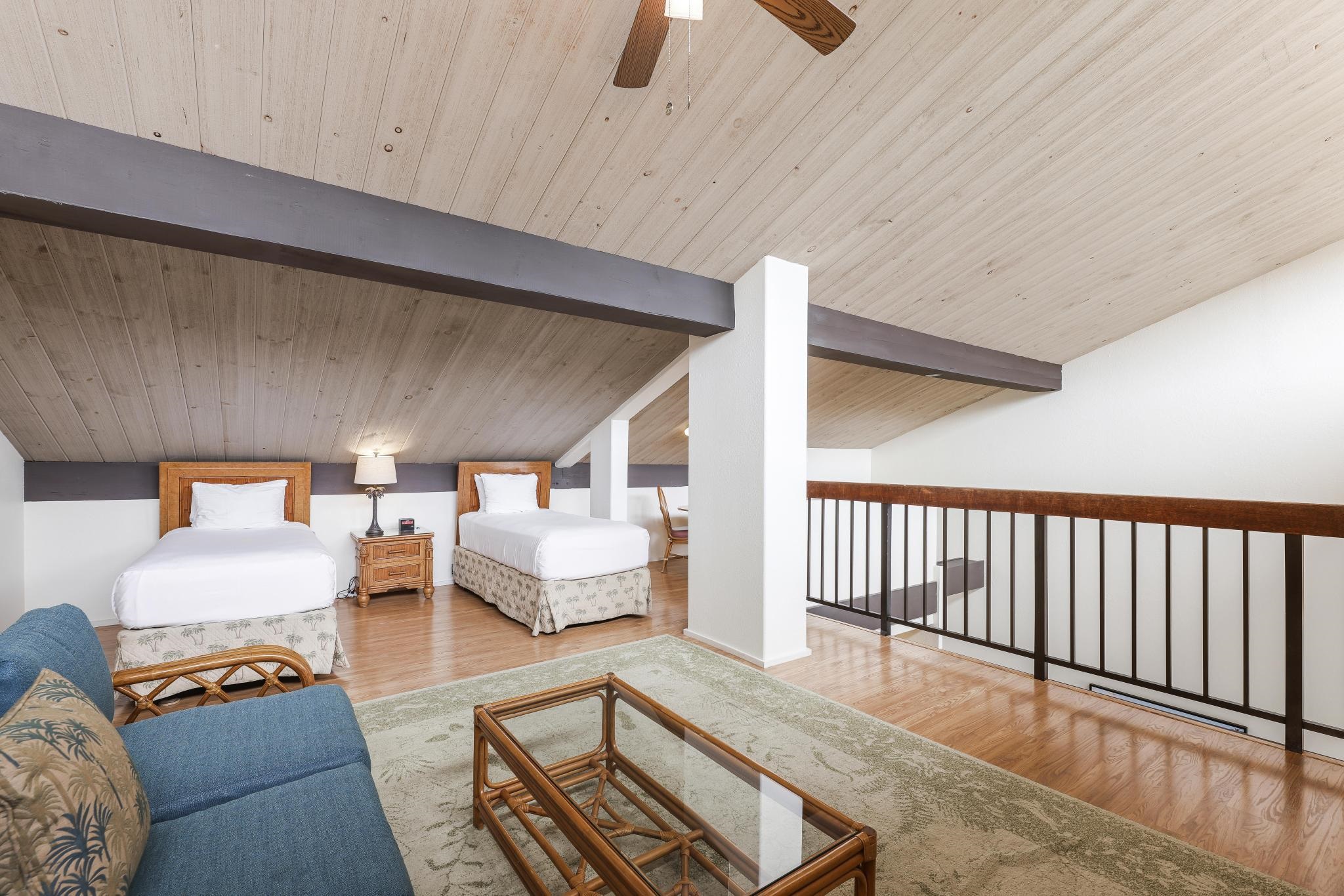 Kaanapali Shores 455- Hotel Zone Property. Experience breathtaking ocean views from this top-floor, fourth-level unit in the desirable low-rise building at Kaanapali Shores. This spacious residence features a versatile “three-bedroom style” floor plan, ideal for accommodating larger groups or extended family stays. The main level offers two well-appointed bedrooms, including a primary suite with floor-to-ceiling windows showcasing stunning views of Molokai and the Pacific Ocean, along with a private en suite bathroom. The second bedroom is thoughtfully designed with ample closet space and comfortable sleeping arrangements. A second bathroom on the main floor. Your spiral staircase leads to the expansive loft, complete with high ceilings, abundant natural light from upper windows, and additional sleeping and lounge space–perfect for entertaining or unwinding. The loft also includes extra storage with a lock-off area for personal belongings and room for a game table or additional seating. The kitchen is beautifully upgraded with custom wood cabinetry, granite countertops, and flows seamlessly into the tiled living and dining areas, creating a welcoming and functional space. Kaanapali Shores offers exceptional amenities, including two swimming pools, an on-site restaurant, fitness center, front desk services, and sundry and gift shops. This makes it an outstanding opportunity for vacation rental income or personal use. Perfect for singles or family gatherings or group vacations, this property embodies the best of Maui living. Discover why Kaanapali Shores remains one of West Maui’s most sought-after resort communities. This is a Leasehold unit.
