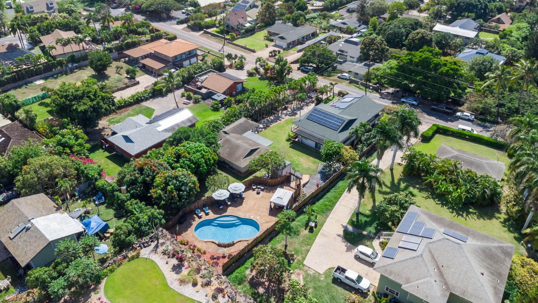 A true family home offering expansive living space and room to breathe. This beautifully renovated property features tasteful finishes throughout, a large wraparound deck with great ocean and mountain views, a spacious three-car carport, and a dedicated workshop. The main home includes an extended living area that's ideal for multigenerational living generous in size and conveniently located on the main level for easy access. In addition, there's a charming two-bedroom cottage with its own carport, plus a stunning resort-style pool perfectly tucked away for maximum privacy. This property is all about seclusion and comfort an exceptional Maui retreat. Not a drive-by, as it's impossible to appreciate all the features from the street. Enjoy your own backyard oasis with mature mango, papaya, and pomelo trees providing a fresh tropical harvest.