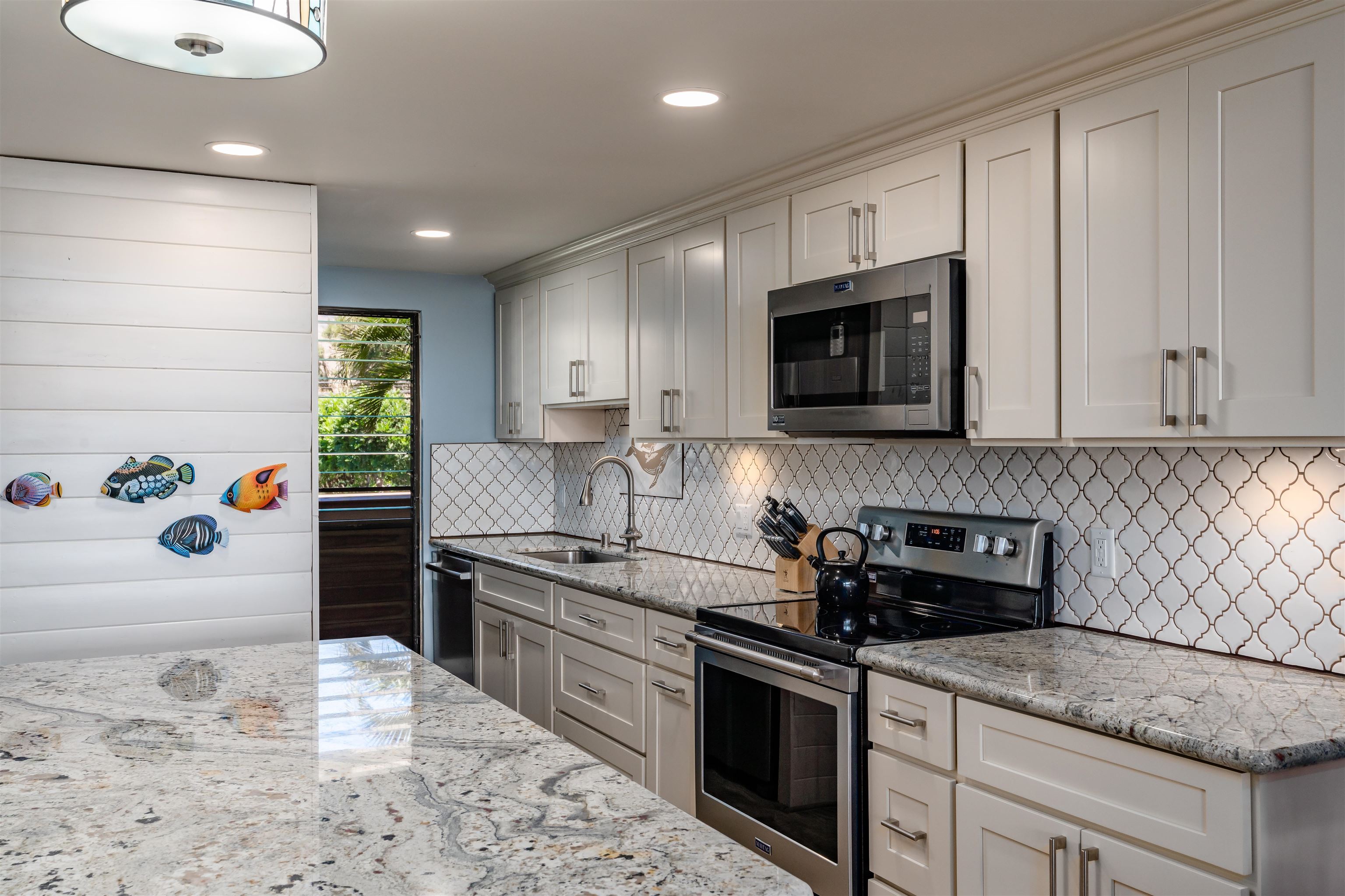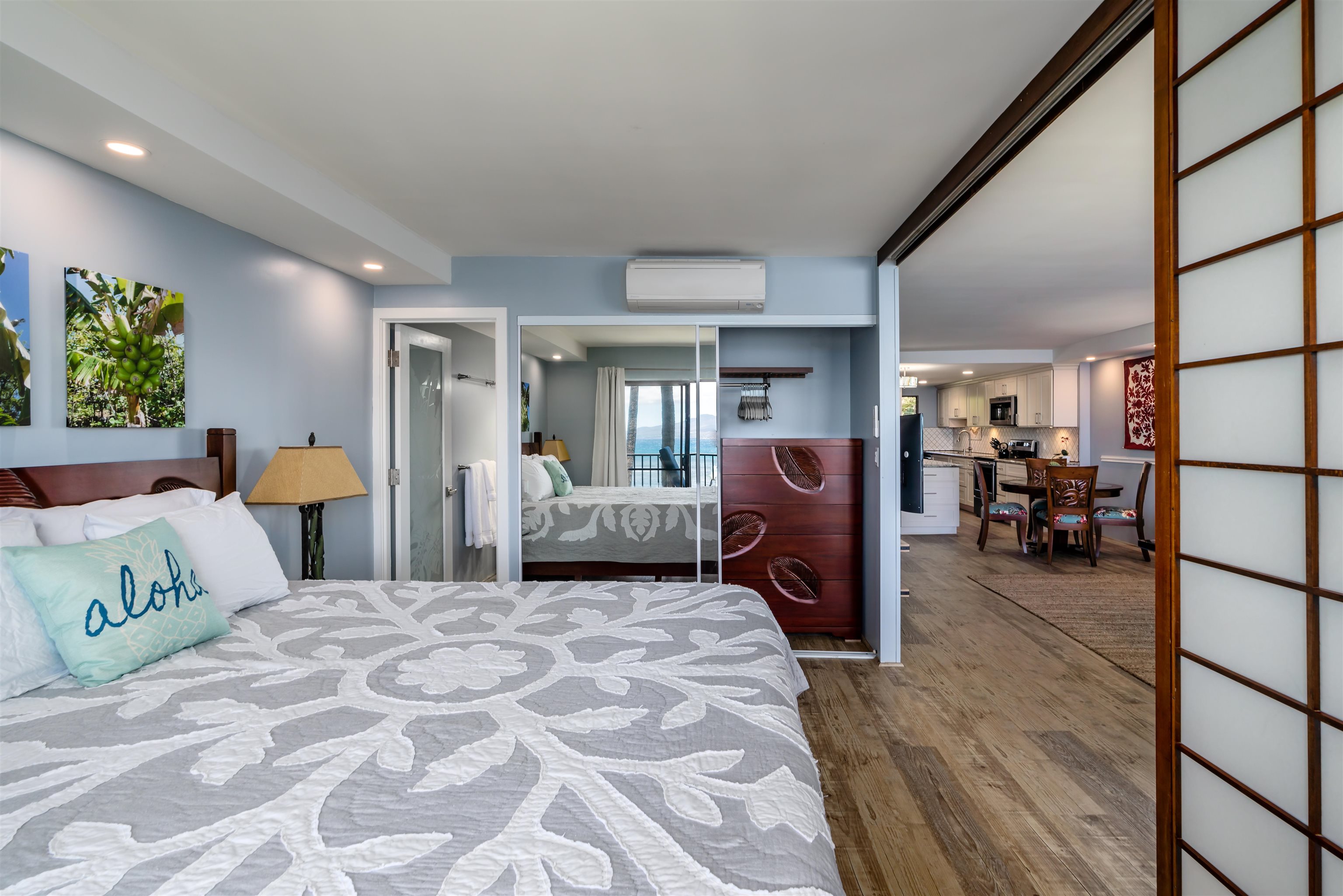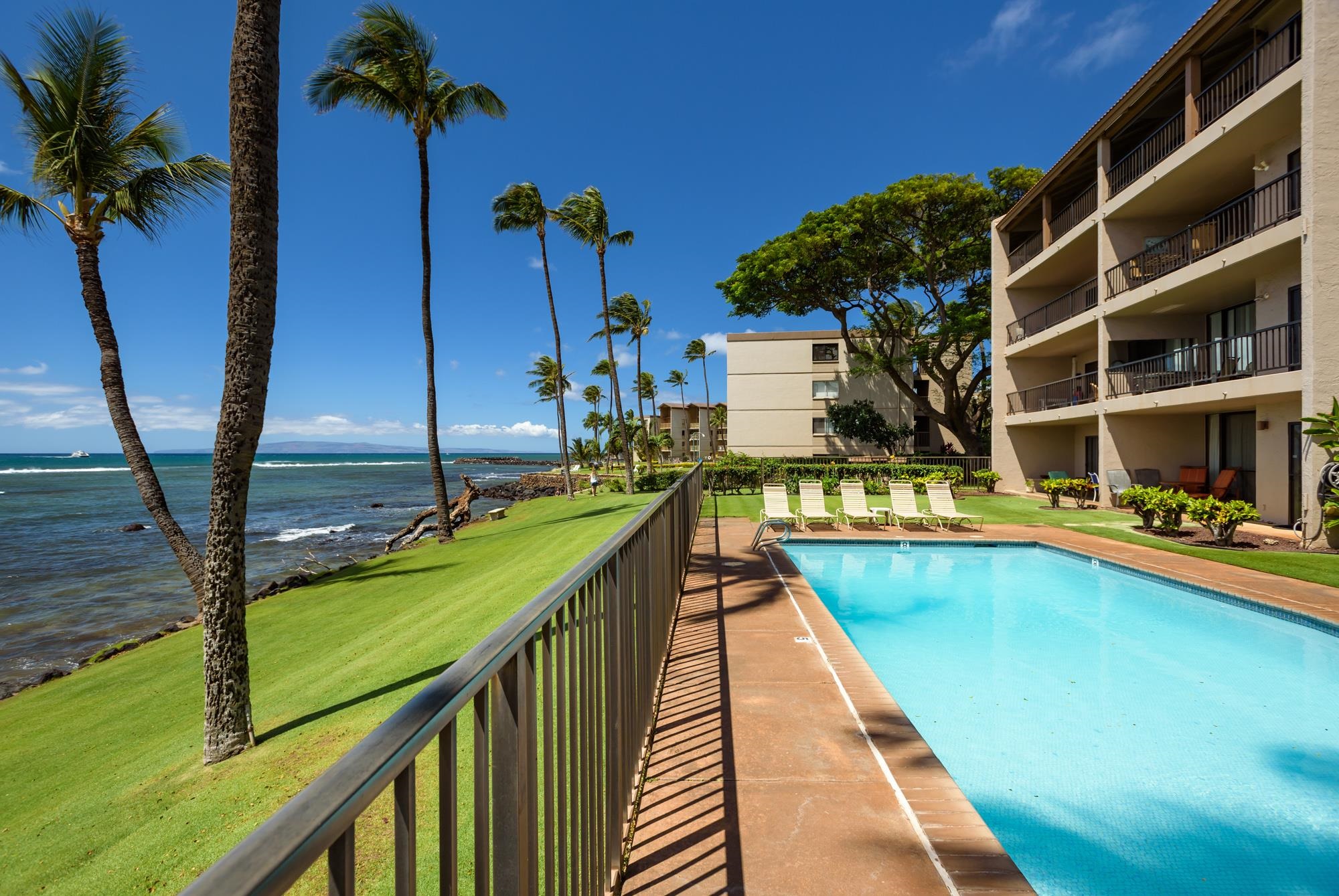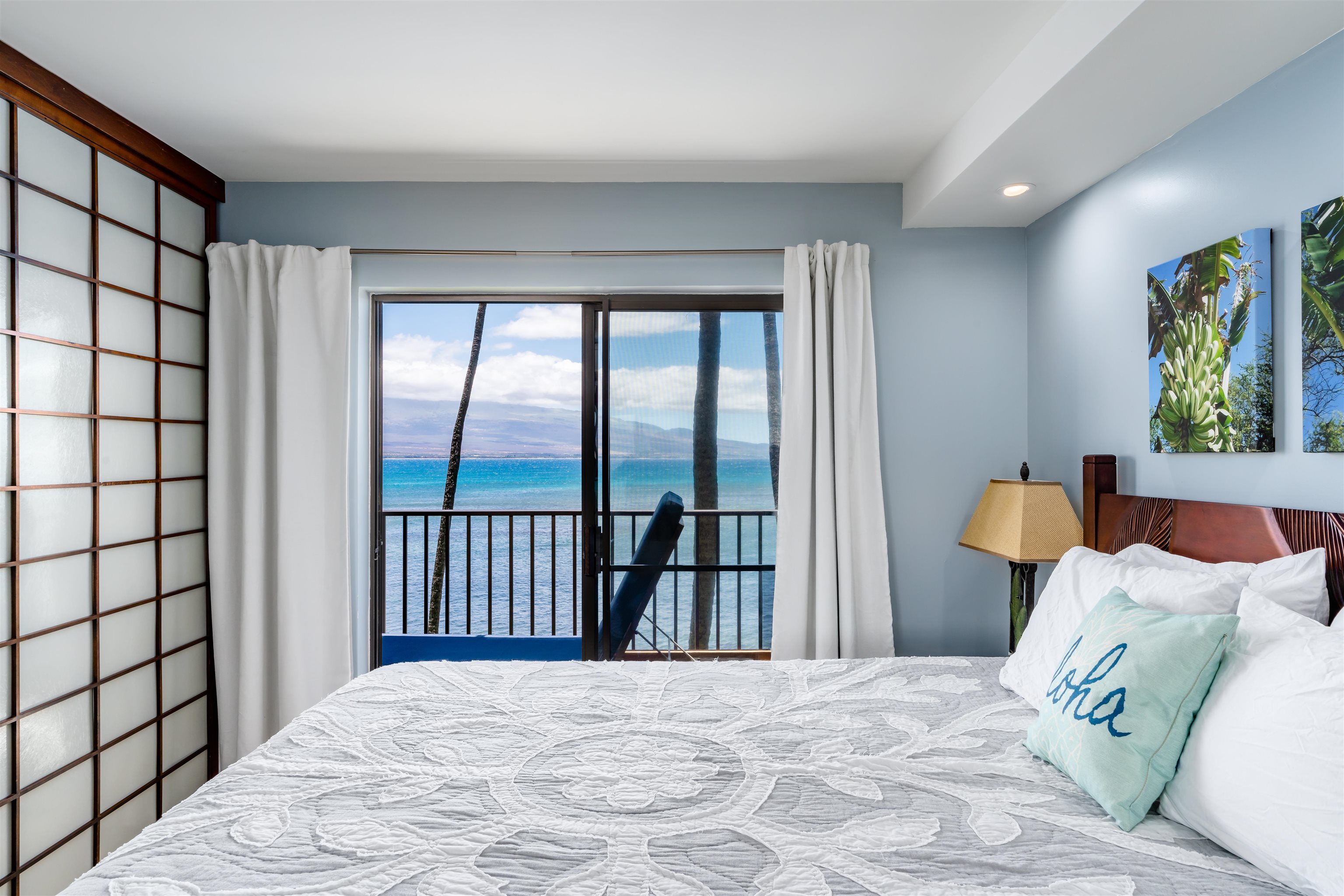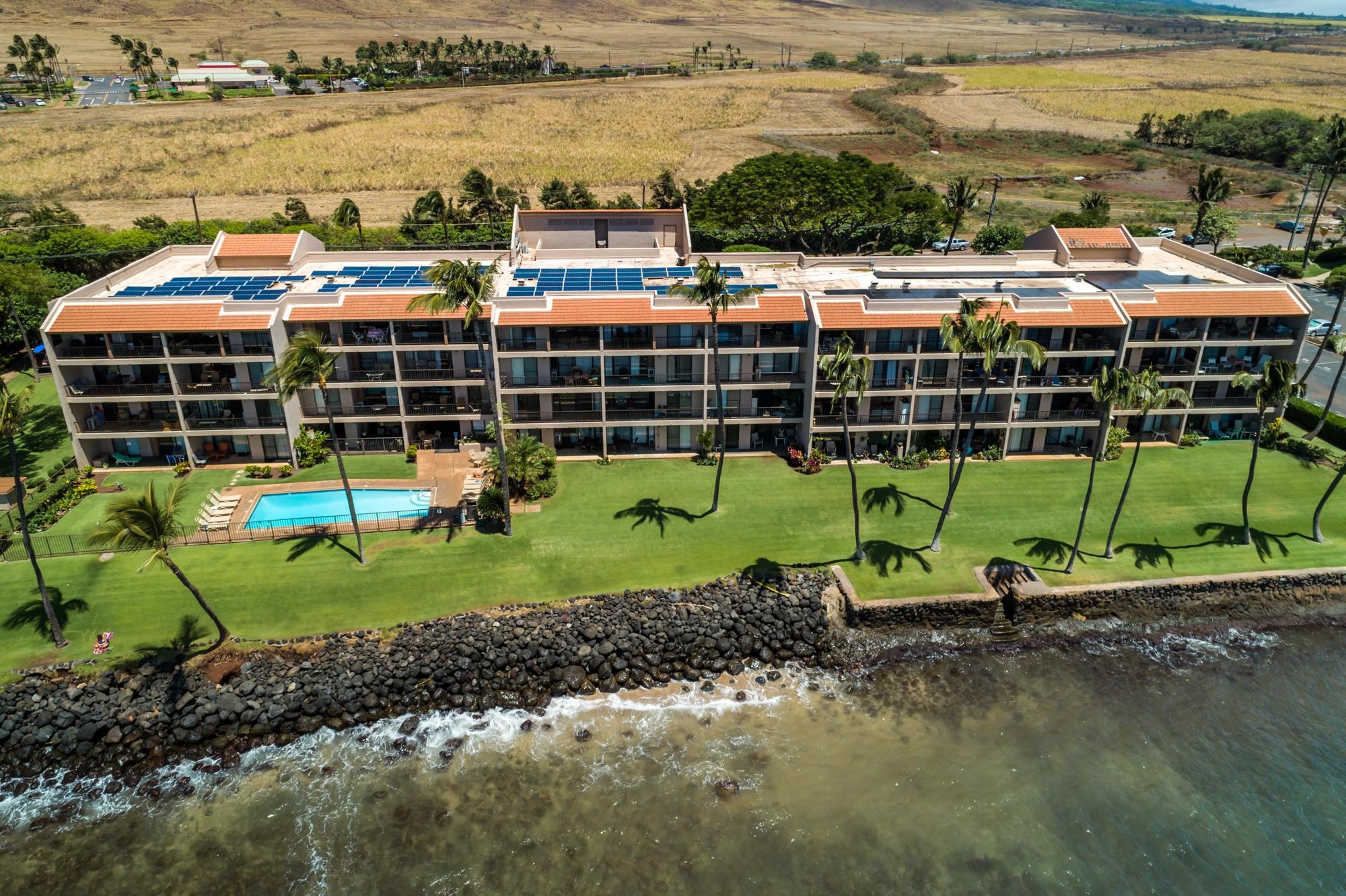 Lauloa 209 – oceanfront, fully renovated, and ready to go. Step inside to wide-plank floors, solid wood cabinetry, new countertops, and split A/C throughout. The living area opens to a lanai with unobstructed views across Ma'alaea Bay to Haleakala. Primary suite has an ensuite bath and ocean views. The building sits right on the water with a pool, lawn, and easy access to Ma'alaea Harbor, Sugar Beach, and nearby restaurants. Turnkey condition with proven rental history. Second home, investment, or both – this one checks the boxes.