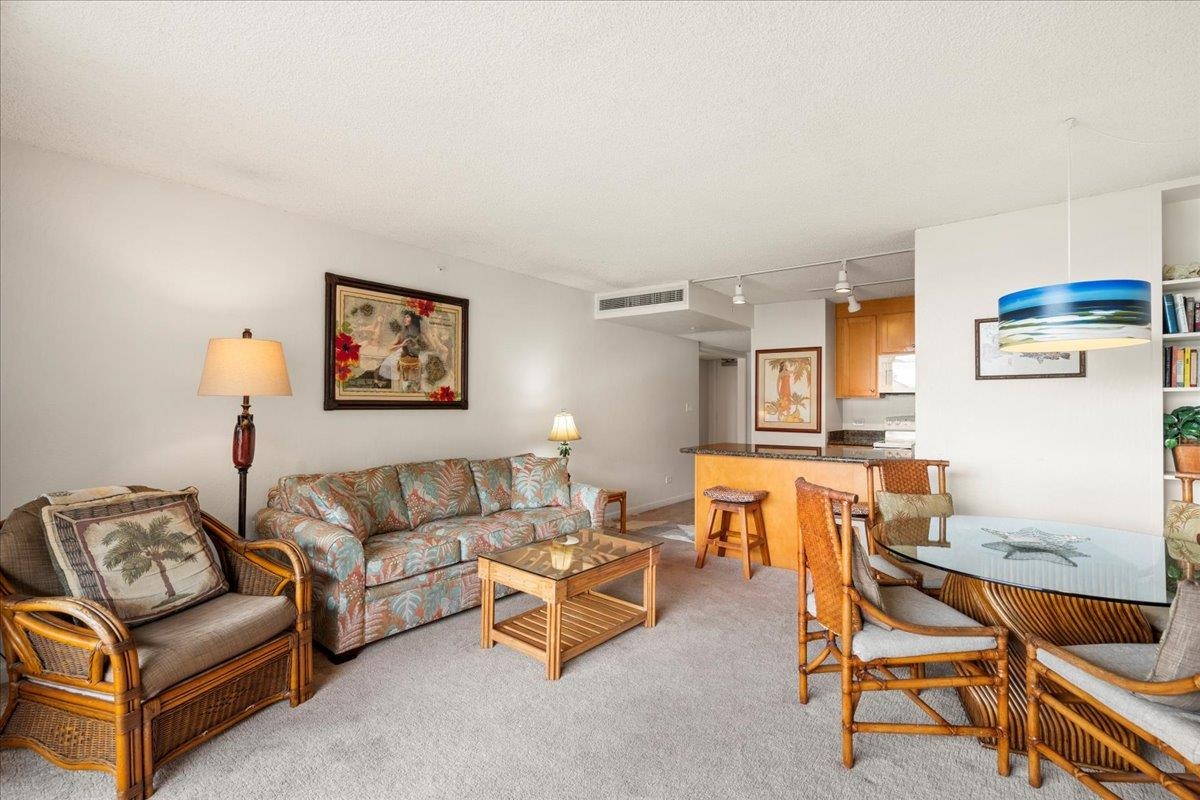 This is the one! A well-established Hotel Zoned, short-term vacation rental with a strong history of consistent occupancy. Experience the epitome of resort living at Aston Kaanapali Shores #423. Located perfectly on the fourth floor, this resort-style condominium offers two bedrooms, two bathrooms, and accommodations for up to six guests. A spacious private lanai affords views of the verdant tropical landscape, courtyard pool, as well as breathtaking ocean vistas, sunsets, and whale sightings. The lanai also overlooks a serene koi pond, with tranquil sounds from the waterfall. The residence is offered fully furnished and showcases an open floor plan that includes a comprehensively equipped kitchen, a dining table for four occupants, a breakfast bar with stools, a Smart television, a new pull-out sofa sleeper, and supplementary seating options. #423 is a well-established short-term vacation rental with a strong occupancy history. Beyond the resort gates, the best of West Maui is literally at your fingertips. Whalers Village, Hula Grill and Duke's Beach House to Star Noodle and Mala Ocean Tavern. Championship golf courses are all within easy reach. And for nature lovers, the Ka'anapali coastline is one of Maui's premier whale watching destinations – from December through April, humpback whales breach and spout just offshore. Combined with the nightly spectacle of fiery West Maui sunsets painting the sky over Lanai and Molokai, the views from #423 are nothing short of magical, season after season. As part of the iconic Aston Kaanapali Shores oceanfront resort, owners and guests enjoy world-class amenities right at their doorstep – lush 10-acre tropical grounds with direct beachfront access, two sparkling freshwater pools, relaxing hot tubs, tennis and pickleball courts, a fitness center, and a beloved open-air beachfront restaurant and bar. Don't miss your chance to own this true ocean-view treasure on the world-renowned Ka'anapali Coast – where lifestyle and investment meet in perfect harmony.
