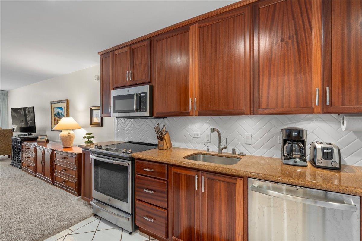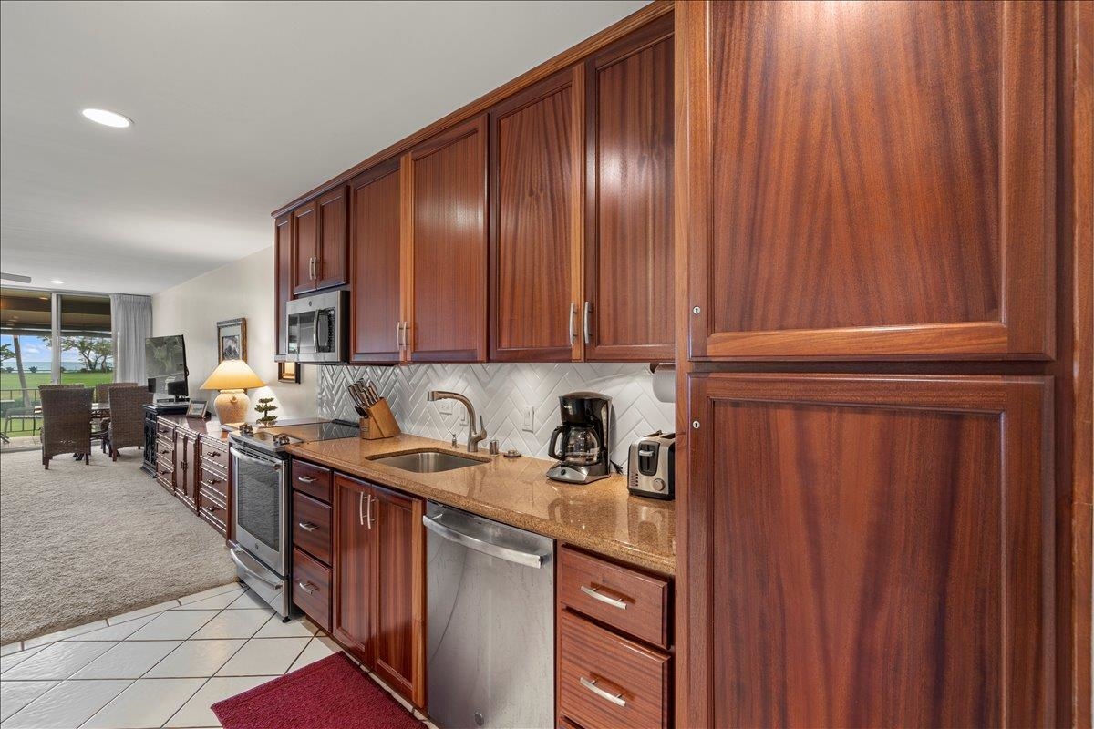 Welcome to your island retreat at Maui Eldorado, ideally located in the desirable J Building and just a short distance to the exclusive beachfront cabana. This well-maintained studio unit captures the essence of relaxed Kaanapali living, with lovely ocean and golf course views adding to its appeal. Remodeled approximately 15 years ago and meticulously cared for by the current owners, the unit features warm wood cabinetry, granite countertops, and a crisp white tiled backsplash, creating a clean and inviting kitchen space. The cohesive design continues into the bathroom, where matching materials and tones provide a seamless, elegant look. A walk-in glass and tile shower adds a touch of modern comfort and style. Maui Eldorado offers exceptional amenities including three swimming pools, a hot tub, and a state-of-the-art fitness center. Enjoy a peaceful and quiet setting while still being just moments from the energy of Whalers Village, where you’ll find shopping, dining, and a wide array of beach activities. This is a leasehold property, with a monthly lease rent in addition to the monthly maintenance fees, which include utilities. Property is zoned A-2 and subject to Bill 9.