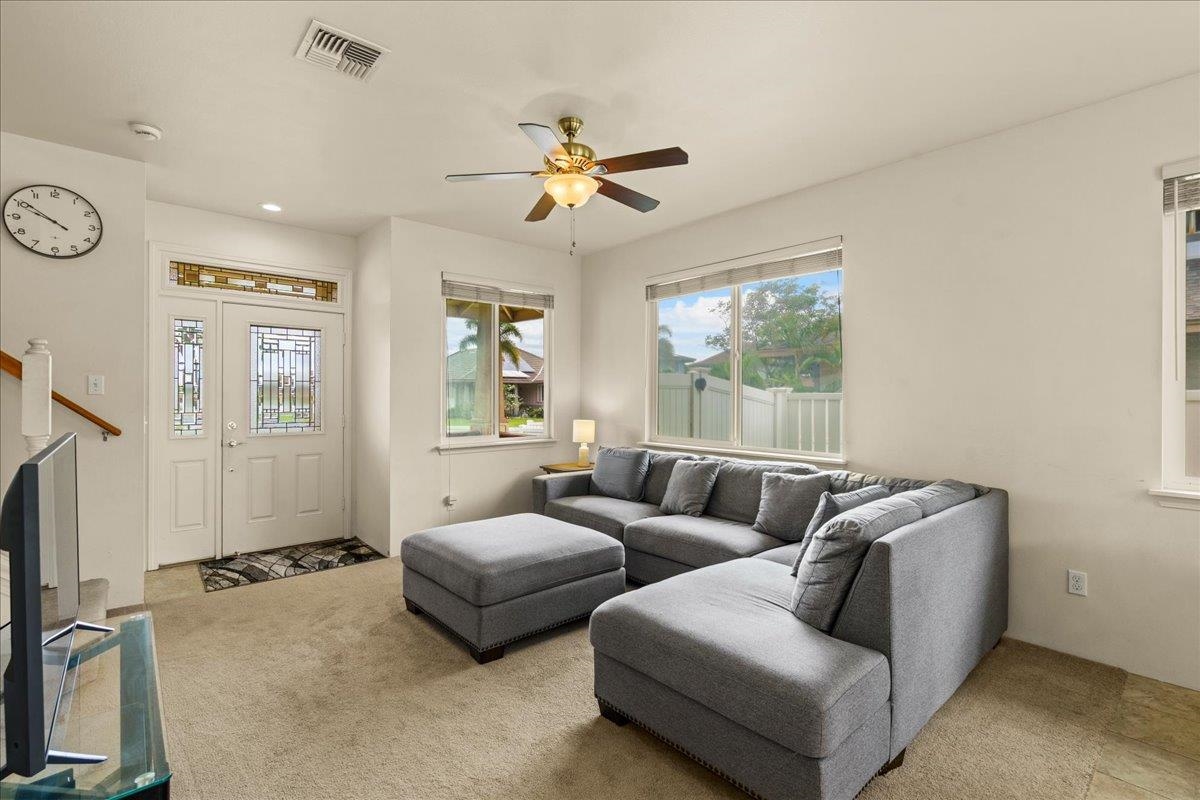 Discover comfort and convenience at 60 Anamuli Street in the desirable Na Hoku at Maui Lani community. This well-designed 4-bedroom, 2.5-bath home offers a bright and inviting layout, featuring an open living and dining area that flows seamlessly into the kitchen, perfect for both everyday living and entertaining. The primary bedroom is conveniently located on the main floor, offering privacy and ease of access, complete with its own full en-suite bath. Upstairs, you’ll find three additional bedrooms along with a full bath, providing plenty of space for family, guests, or a home office. A half bath downstairs adds extra convenience for visitors.The functional floor plan is enhanced by abundant natural light, creating a warm and welcoming atmosphere throughout. Enjoy outdoor living with a private yard space, ideal for relaxing or hosting, along with the convenience of a two-car garage.Centrally located, this home is just minutes from the Central Maui Regional Sports Complex, Maui Memorial Medical Center, and the Maui Lani Golf Course, as well as schools, parks, and shopping. Experience the ease of Central Maui living in one of the island’s most convenient communities. Priced to Sell!