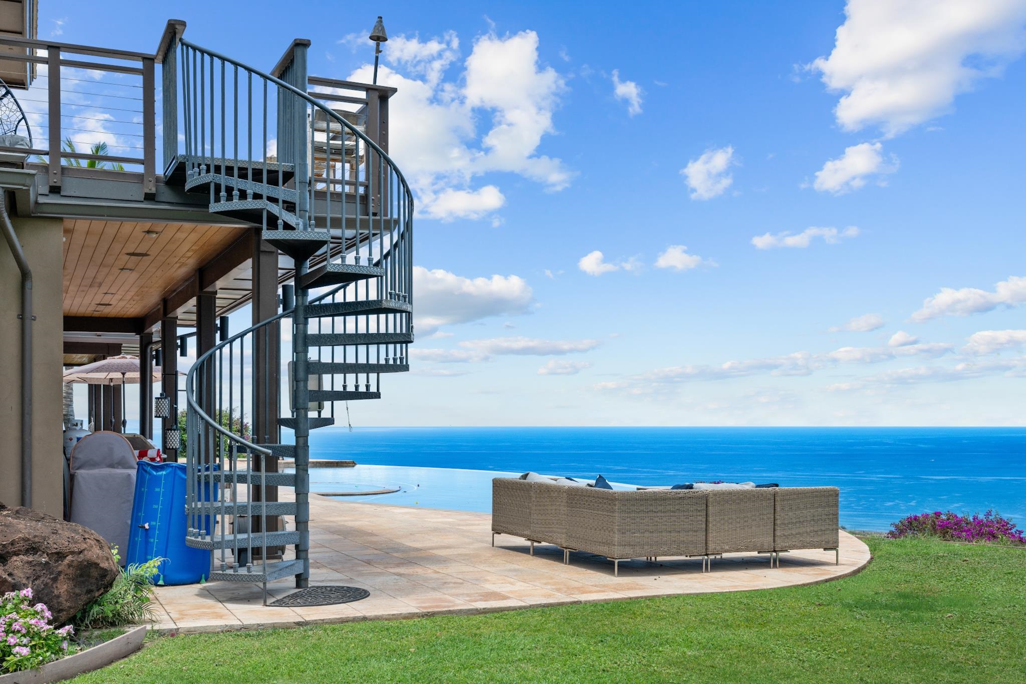 Perched atop 45 acres of Launiupoko’s most coveted slopes, this extraordinary estate offers a rare sanctuary of privacy, space, and incomparable Maui beauty. Sweeping panoramic ocean, outer island, and sunset views define every horizon, while gentle trade winds and the serenity of open land create an unparalleled sense of escape. The 5,863 sq. ft. residence is a masterpiece of thoughtful design, featuring 5 ensuite bedrooms–including dual master suites–5.5 baths, and expansive living spaces that flow effortlessly to multiple lanais. An 80-foot infinity-edge pool frames the horizon, perfect for sunset gatherings or quiet reflection. The 3-car garage has been transformed into a high-end gym, reflecting a lifestyle that values wellness and leisure. Not one, but two 14,999-gallon gravity-fed water tanks provide both potable and agricultural water, supporting a property designed for flexibility, whether as a private compound, agricultural estate, or multi-structure retreat. A 3,800 sq. ft. barn offers extraordinary potential for equestrian, guest, or creative uses. This property is a CPR'd/residential condo property: Main home parcel of 45 acres off a 50 acre parcel. This is more than a home–it is a legacy property, a place where every day is defined by space, privacy, and the timeless rhythm of island life. For the discerning buyer seeking the ultimate Maui retreat, 554 Punakea Loop is a rare and unmatched opportunity.