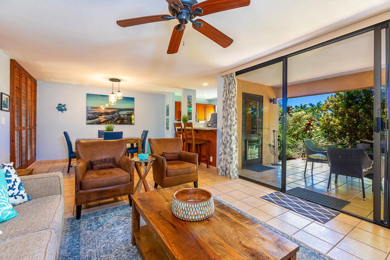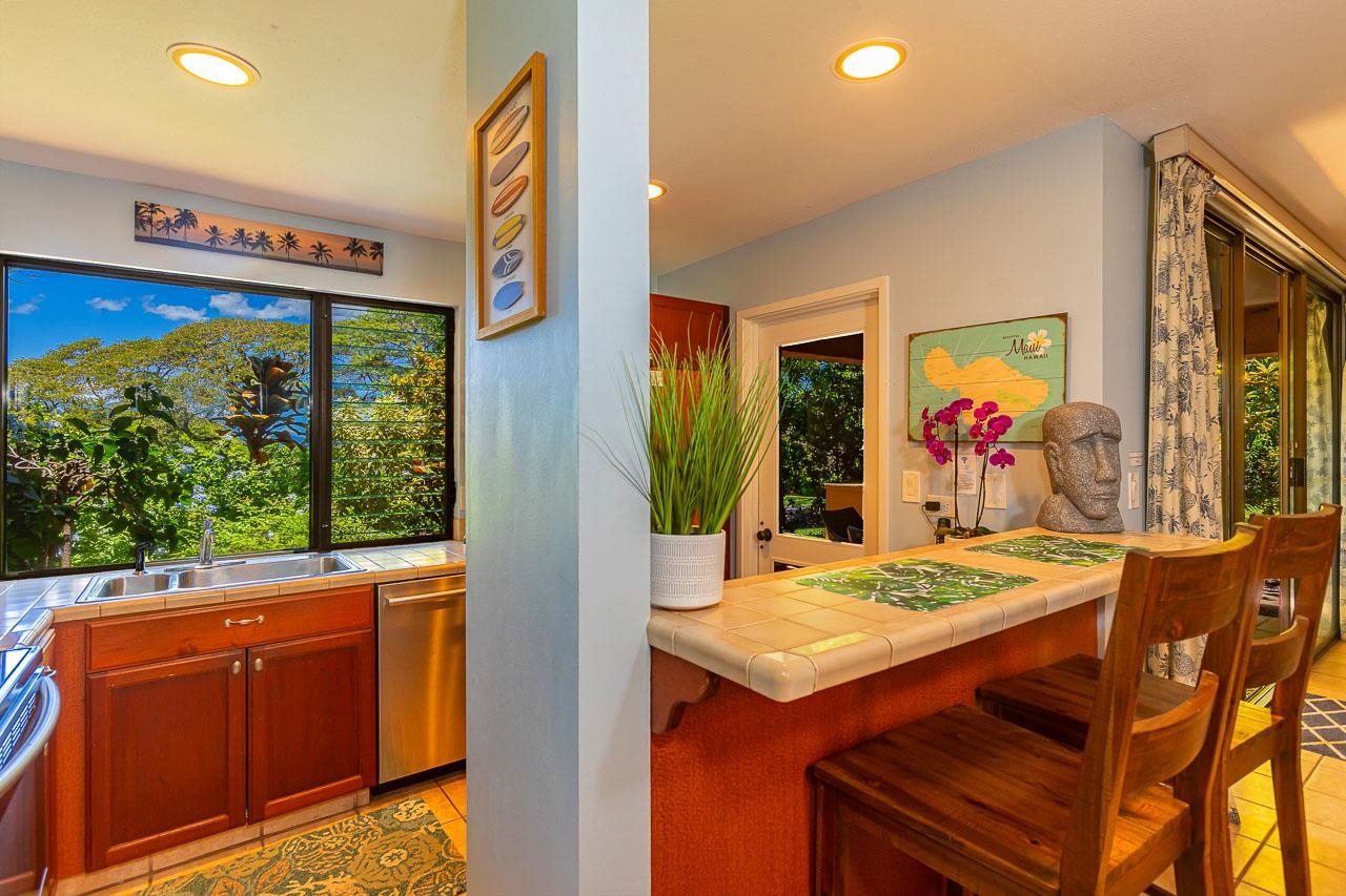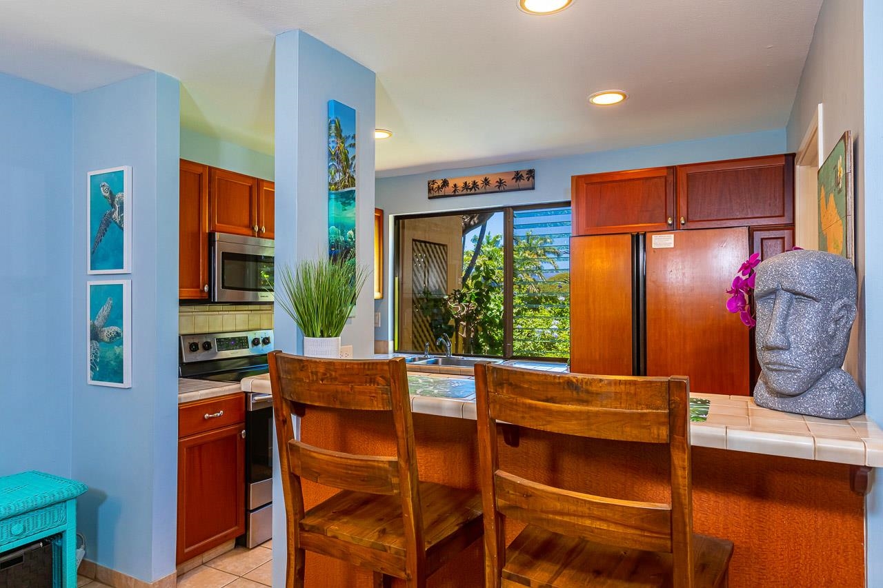 This charming, private ground-floor 1-bedroom, 1-bathroom end-unit is flooded with natural light and has been meticulously maintained. From the spacious living area, kitchen, and extended tiled lanai, you'll enjoy beautiful views of the lush garden. The unit perfectly blends indoor and outdoor living, with direct access from the kitchen that's ideal for alfresco dining. It's like stepping into your own "Secret Garden of Maui." When it's time for the beach and some sun, this unit offers a short 4 minute stroll down to Maui's famous Keawakapu beach. The kitchen boasts stainless steel appliances, including a wood-clad refrigerator, warm-toned ceramic tile countertops, and a full-height backsplash. The natural wood louvered sliders and bi-fold doors enhance the unit's rich and inviting atmosphere. The bedroom offers access to a private garden lanai, creating a peaceful retreat. The custom bathroom features a floor-to-ceiling tiled, glass-enclosed shower with decorative seashell accents. A Murphy bed adds versatility, providing a second sleeping area. Wailea Ekahi is known for its lush tropical landscaping, mature plantings, and a variety of amenities, including multiple pools and tennis courts. The Keawakapu beachfront pool and gathering pavilion are truly exceptional. Nearby, the renowned Shops at Wailea offer fine dining, shopping, and art galleries. Wailea also provides world-class opportunities for golf, tennis, diving, snorkeling, horseback riding, hiking, and is close to luxurious spas.