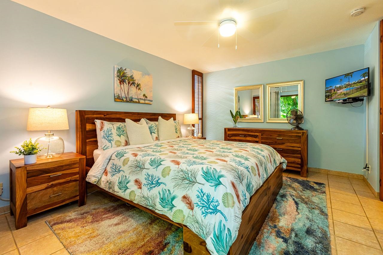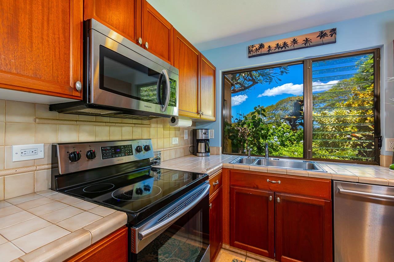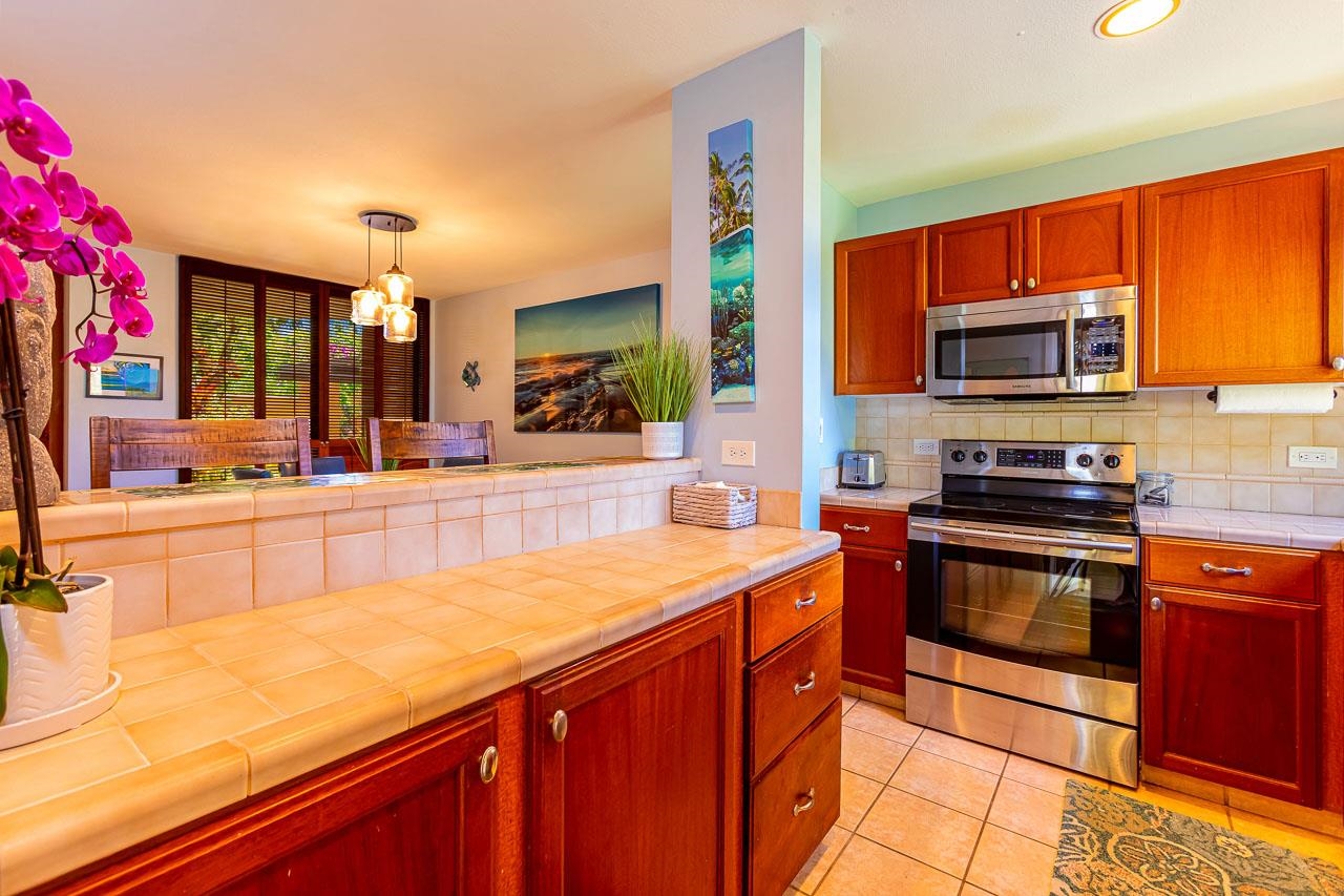 This charming, private ground-floor 1-bedroom, 1-bathroom end-unit is flooded with natural light and has been meticulously maintained. From the spacious living area, kitchen, and extended tiled lanai, you'll enjoy beautiful views of the lush garden. The unit perfectly blends indoor and outdoor living, with direct access from the kitchen that's ideal for alfresco dining. It's like stepping into your own "Secret Garden of Maui." When it's time for the beach and some sun, this unit offers a short 4 minute stroll down to Maui's famous Keawakapu beach. The kitchen boasts stainless steel appliances, including a wood-clad refrigerator, warm-toned ceramic tile countertops, and a full-height backsplash. The natural wood louvered sliders and bi-fold doors enhance the unit's rich and inviting atmosphere. The bedroom offers access to a private garden lanai, creating a peaceful retreat. The custom bathroom features a floor-to-ceiling tiled, glass-enclosed shower with decorative seashell accents. A Murphy bed adds versatility, providing a second sleeping area. Wailea Ekahi is known for its lush tropical landscaping, mature plantings, and a variety of amenities, including multiple pools and tennis courts. The Keawakapu beachfront pool and gathering pavilion are truly exceptional. Nearby, the renowned Shops at Wailea offer fine dining, shopping, and art galleries. Wailea also provides world-class opportunities for golf, tennis, diving, snorkeling, horseback riding, hiking, and is close to luxurious spas.