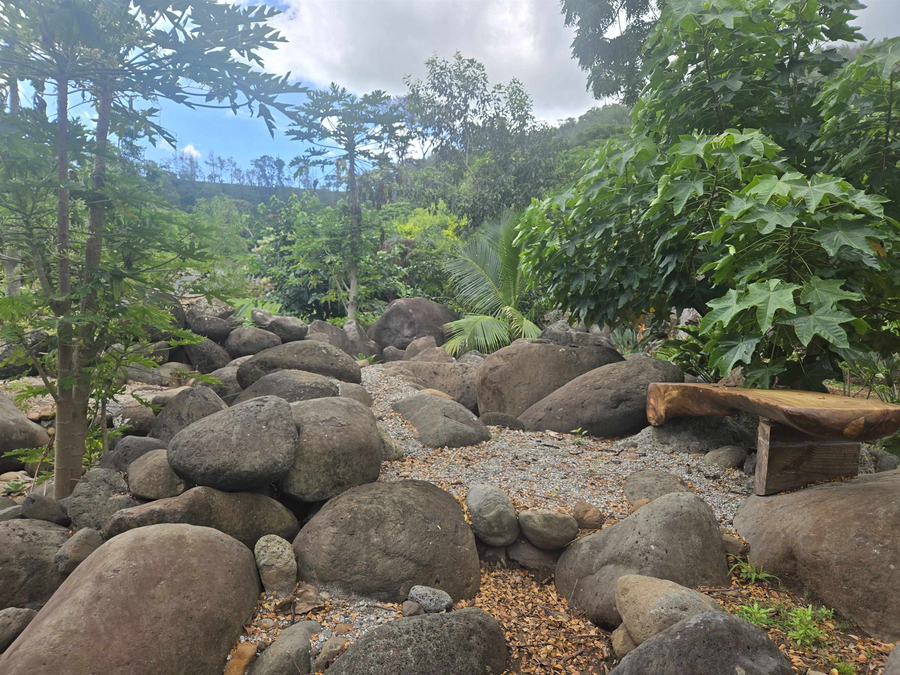 This is not the typical 2nd dwelling on 2 acres. All infrastructure for the main dwelling (ie, water system, electricity, and septic) is installed. It has 5 years of loving landscaping, including many fruit trees. Unfortunately, the main dwelling was lost in the recent Kona Low storms due to the Wailuku River changing its normal path. What remains is a well-built and well-appointed 2-bedroom dwelling with a granite kitchen countertop and Pergo Extreme, the best flooring laminate Pergo offers. This dwelling can be increased to 1500 sf as a 2nd farm dwelling or larger if considered the main dwelling. Both septic systems were designed to handle 5 bedrooms. A 656-sf container/storage facility is well located to serve the entire property. A water system utilizing rain catchment and river water is well-designed with more than adequate storage for domestic and agricultural use. What also remains is the benefit of living in Central Maui, in a very rural setting, and a small gated community. The proximity to medical facilities, government offices, and work options cannot be overstated.
