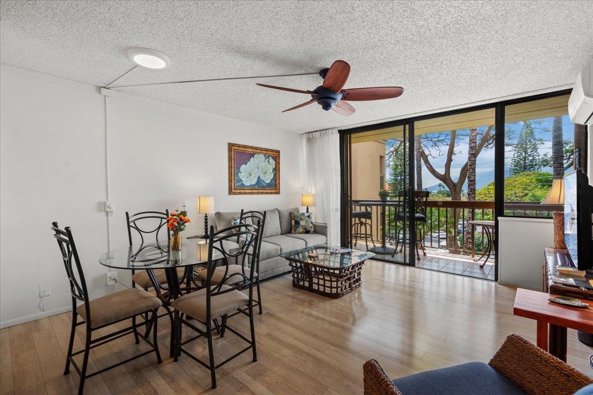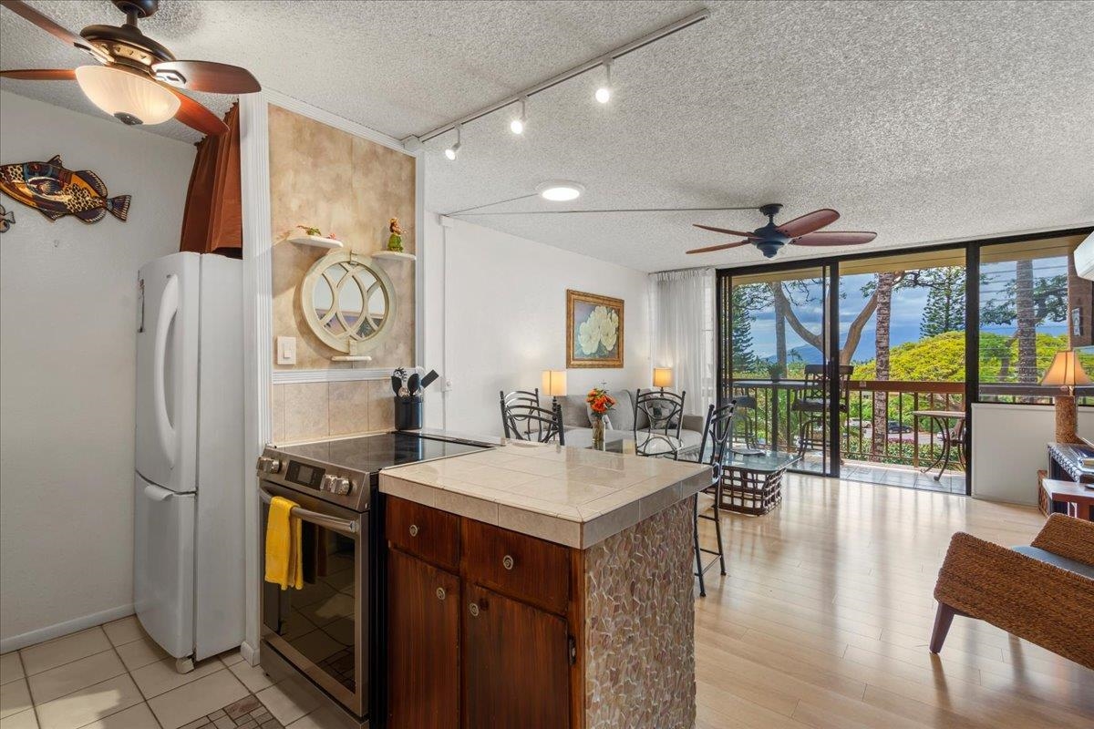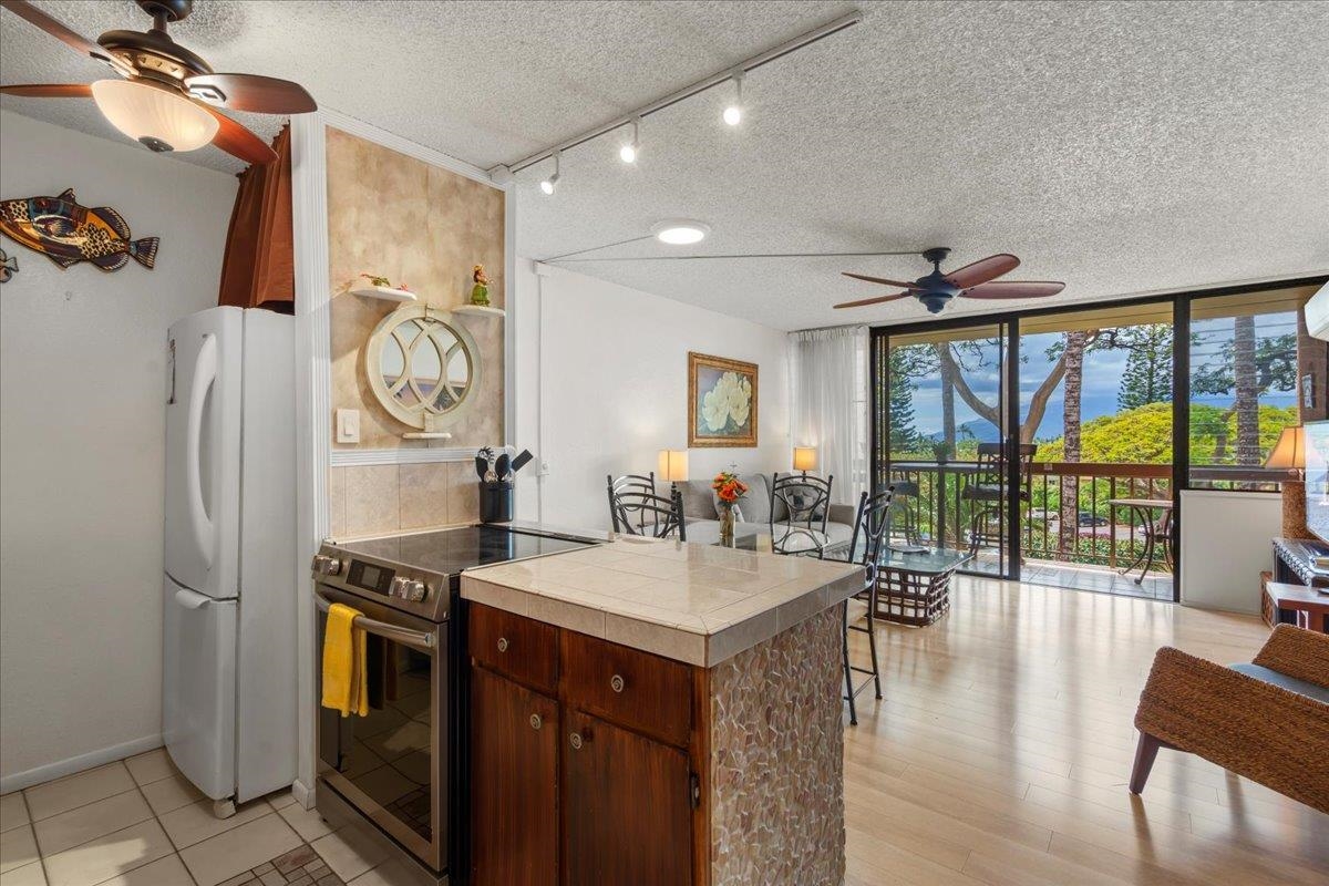 Welcome to Maui Vista 2-313, a beautifully furnished and updated third-floor unit offering ocean and West Maui views. Tucked away in a private and peaceful setting, this residence feels like your own island treehouse. This well-appointed one-bedroom features tile and luxury vinyl flooring throughout, along with two new split-system A/C units to keep the space cool and comfortable year-round. Maui Vista is a highly desirable South Maui complex, conveniently located to beaches, shopping, and dining. Resort-style amenities include three swimming pools, tennis and pickleball courts, inviting BBQ areas, and lush tropical landscaping. Apartment-zoned complex and easy to show.