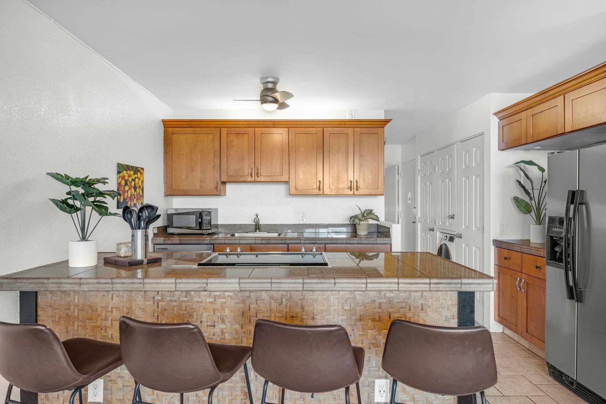 Welcome to Maui Vista, perfectly positioned in the heart of South Kihei just moments from Charlie Young Beach and Kamaole Beach Park I. From here, you can easily walk to some of Kihei’s best beaches, restaurants, cafés, and local shops–making it easy to settle into the Maui lifestyle without ever needing to go far. This 3rd-floor unit enjoys a nicely centered ocean view along with great natural light and tradewind breezes. Maui Vista is well known for its resort-style amenities, including three swimming pools, six tennis courts, and multiple BBQ areas set throughout spacious, tropical grounds–giving owners and guests plenty of room to relax and enjoy. Whether you’re starting your day with a beach walk or winding down with a sunset nearby, this location makes it all feel effortless.