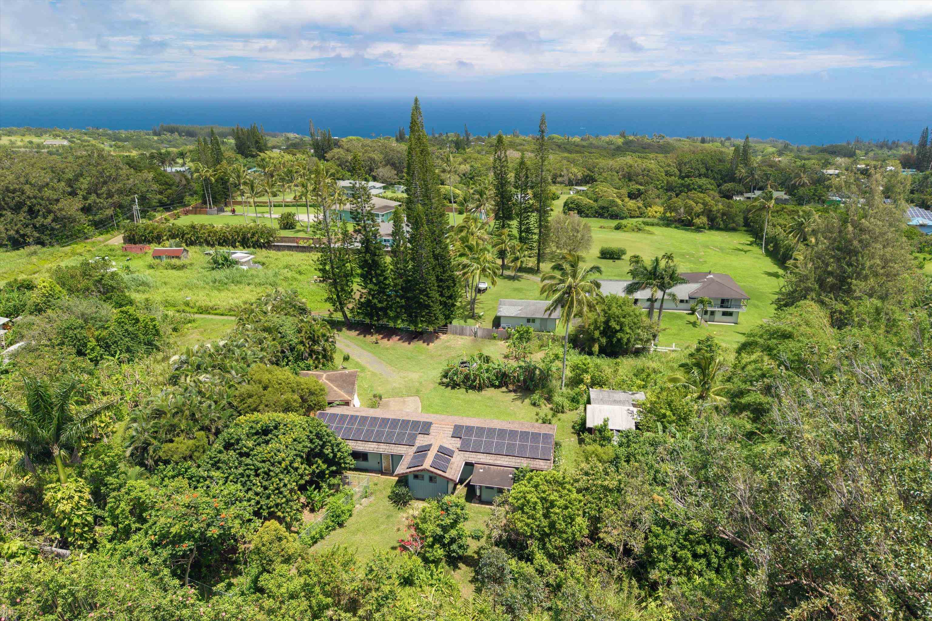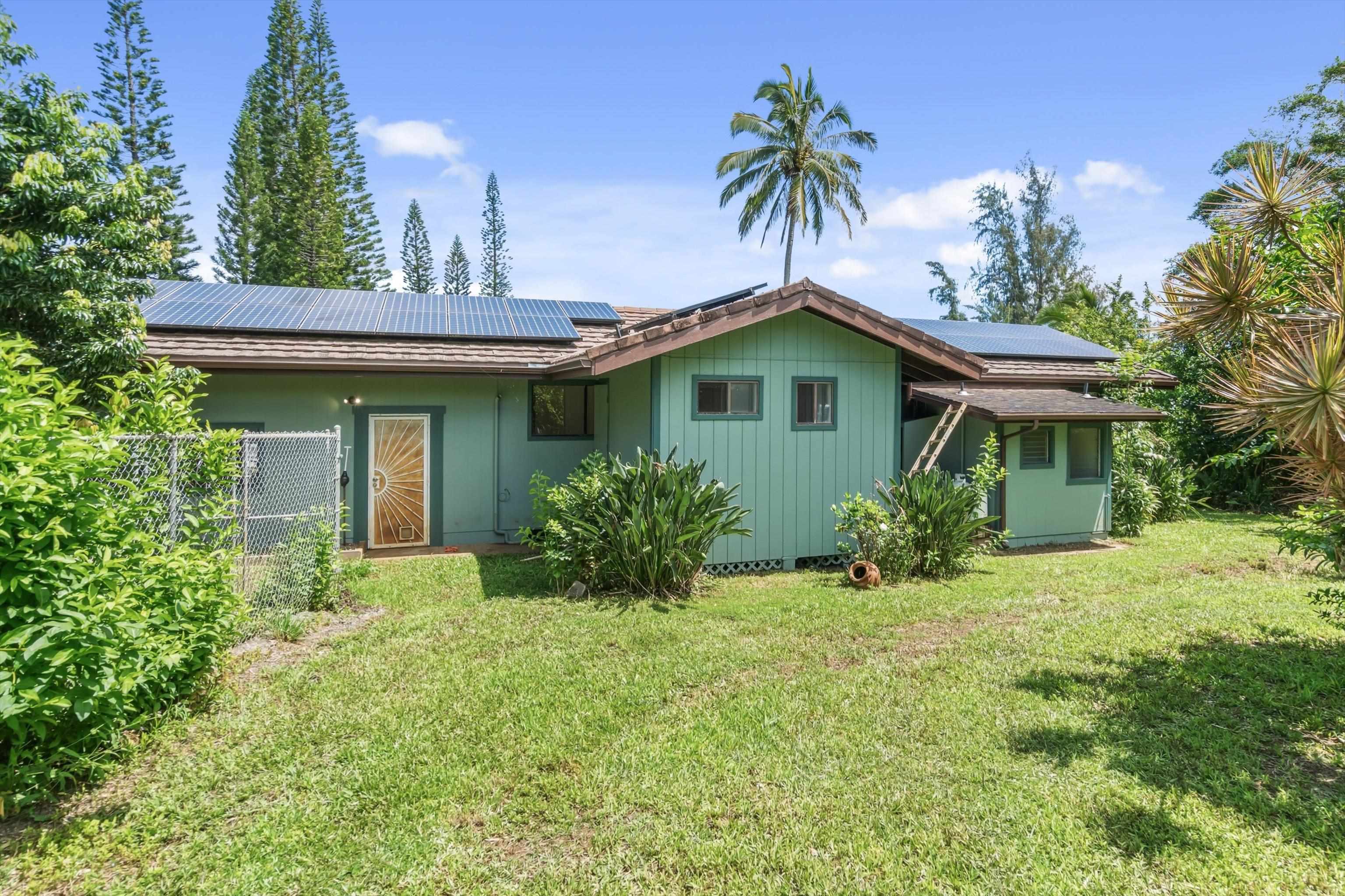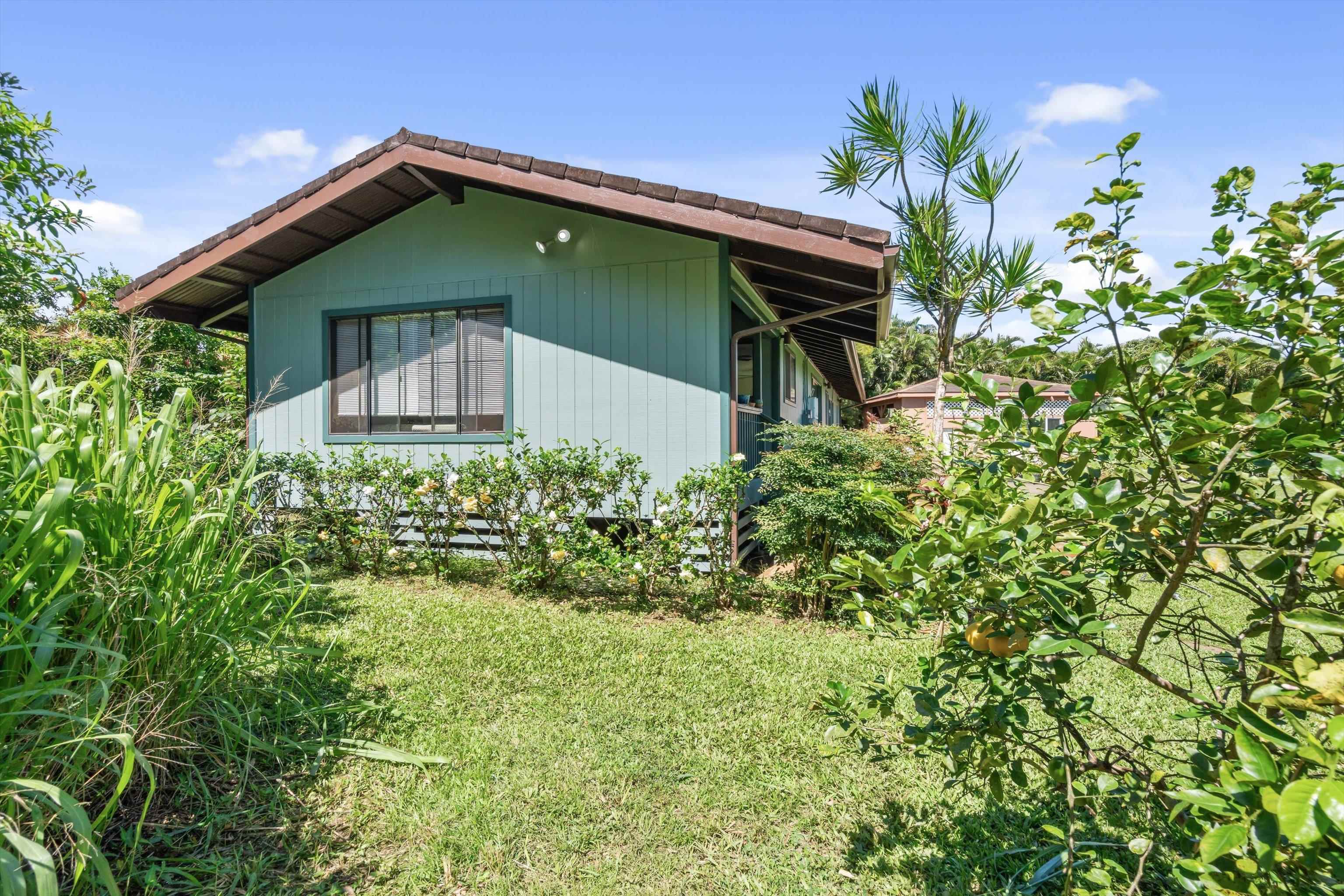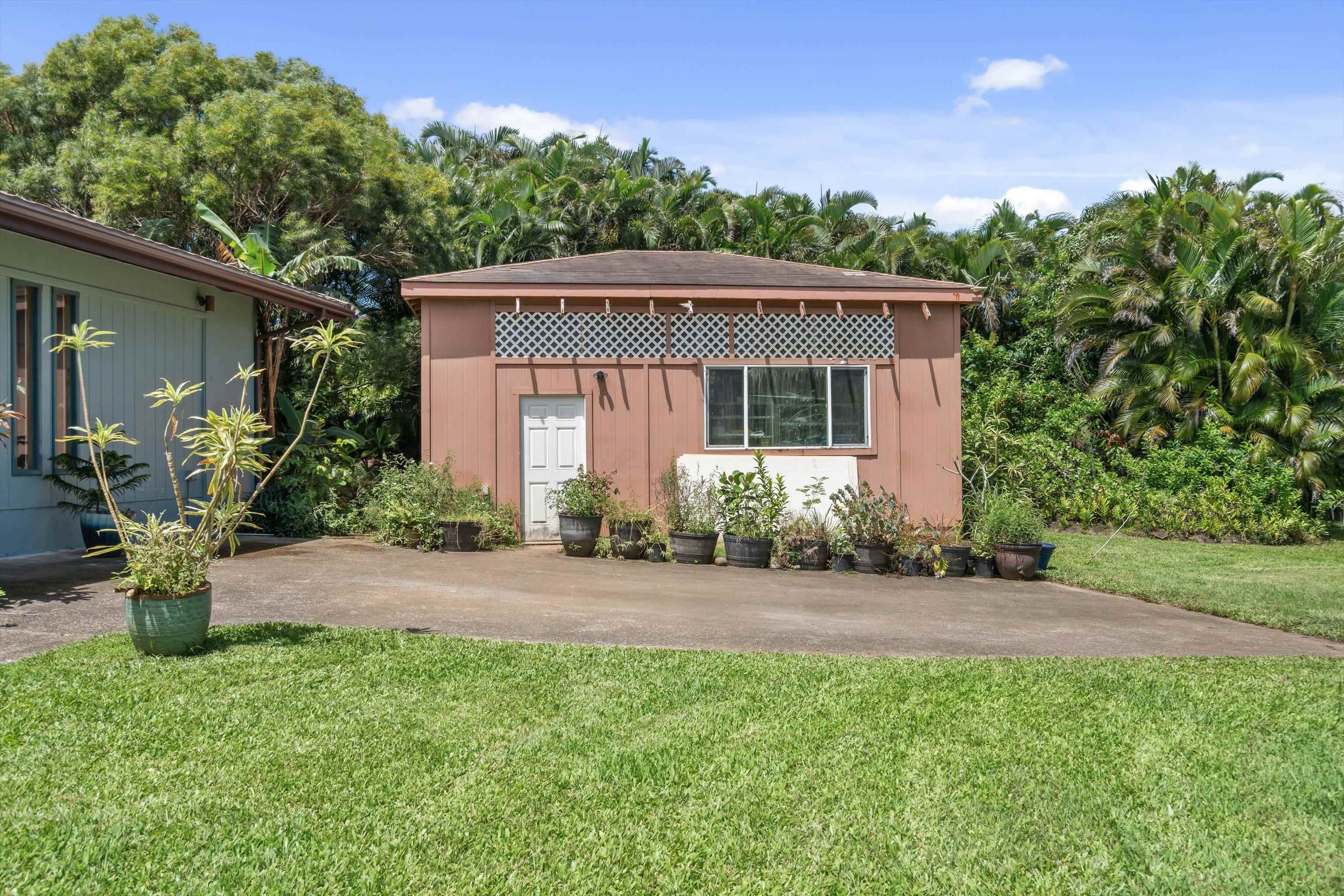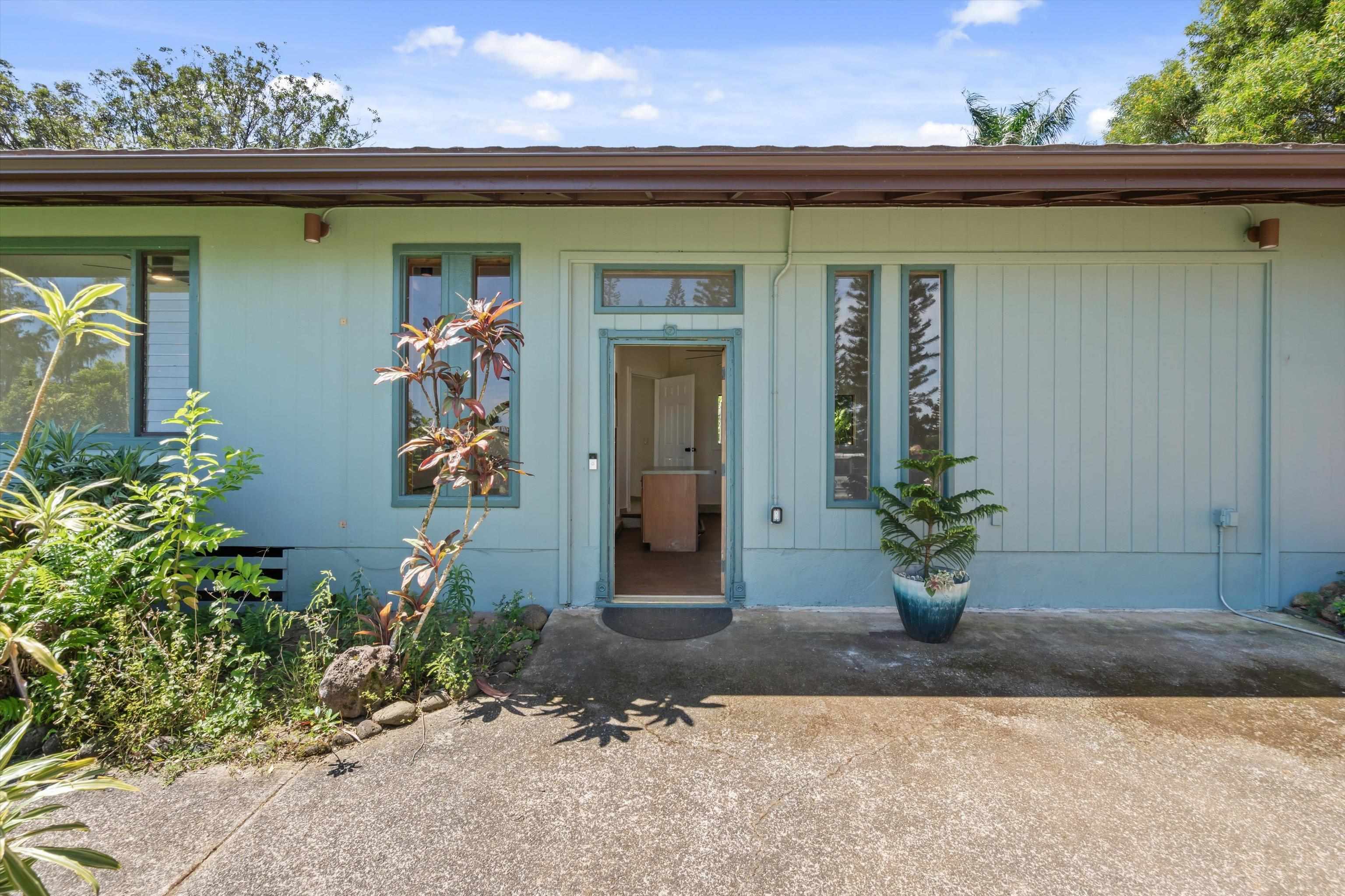 Tucked away on 1.47 lush agricultural acres in Haiku, this private property offers a rare blend of flexibility, privacy, and island charm. Public records reflect a 2-bedroom, 2-bath home, while the adaptable layout allows for multiple living options, including a potential attached studio or separate-entry unit–ideal for extended family, guests, or rental income. The home features a spacious, open feel with seamless indoor-outdoor living. Mature landscaping includes a variety of fruit trees–lime, Hawaiian lemon, coconut, banana, and sugar cane–along with puakenikeni, heliconia, and gardenia and other tropical flowers. A peaceful bamboo grove adds to the sense of serenity, tucked within the uncultivated portion of the acreage. Additional highlights include a detached structure with an Endless Pool spa and storage, extra outbuildings, and two fenced areas suited for gardening, pets, or agriculture. Set back from Holokai Road behind a gated entry, the property offers exceptional privacy in a peaceful Haiku setting. Within a 15 minute drive, are stores, schools, post office and beaches. Some images include virtual staging.