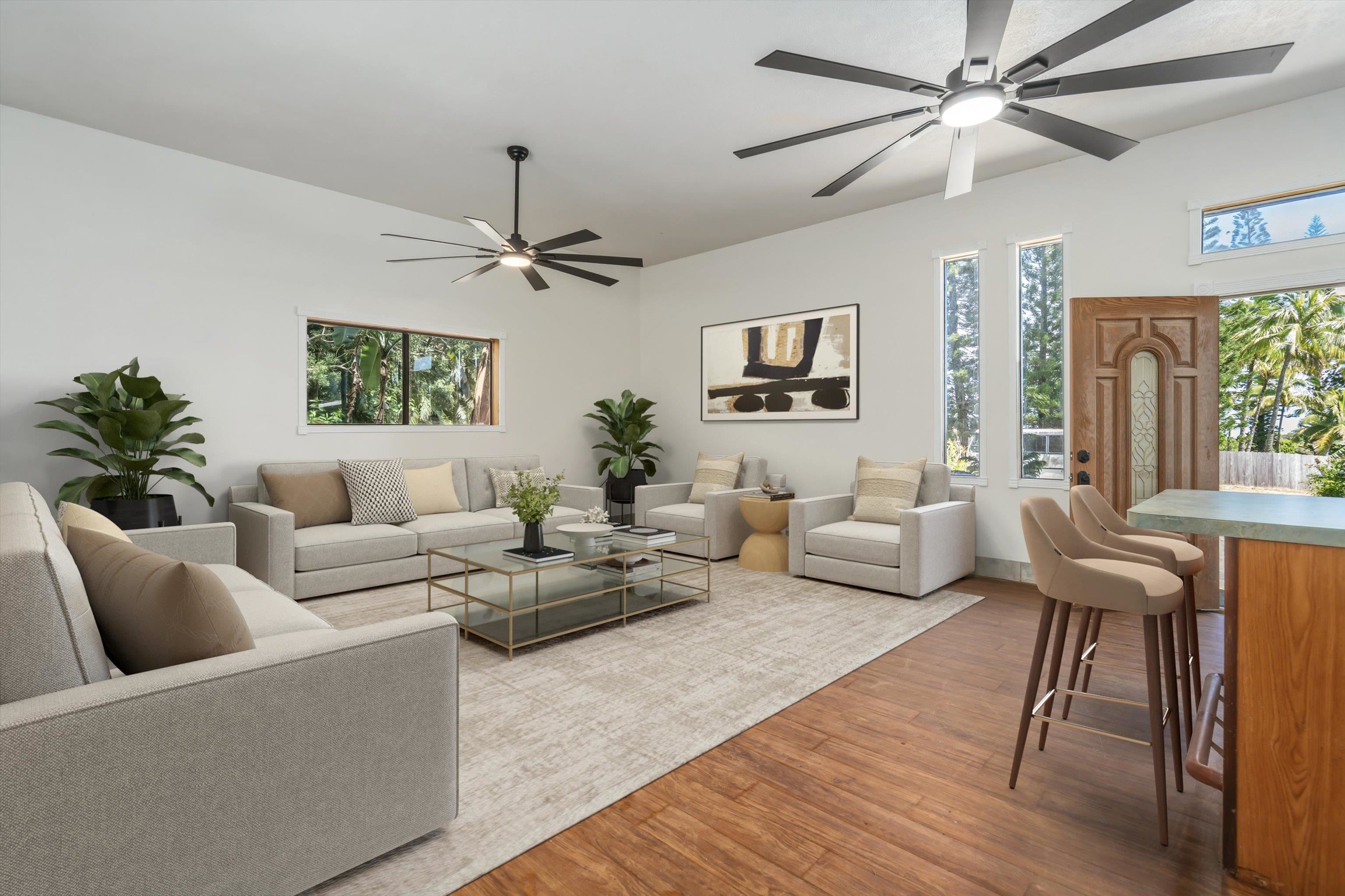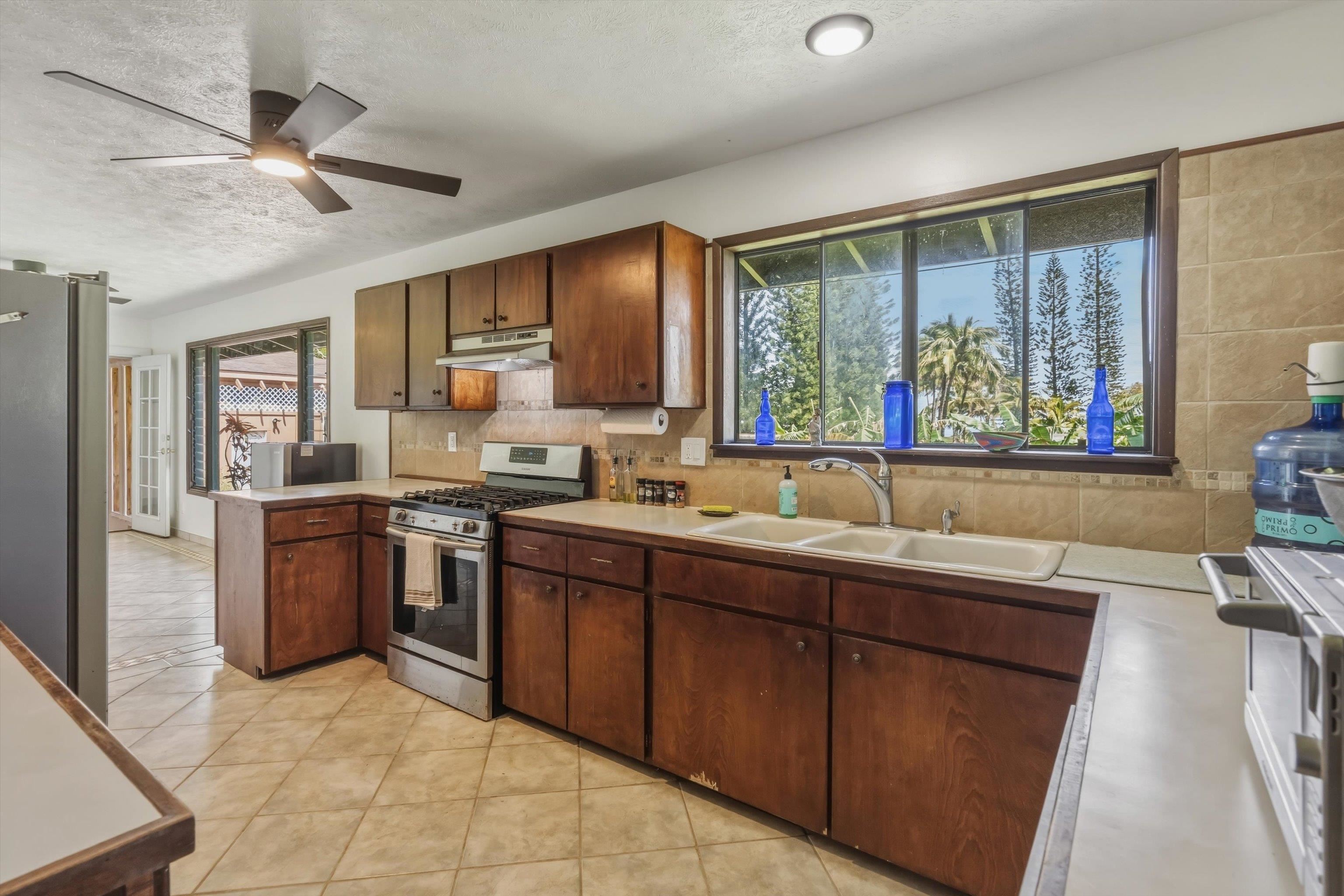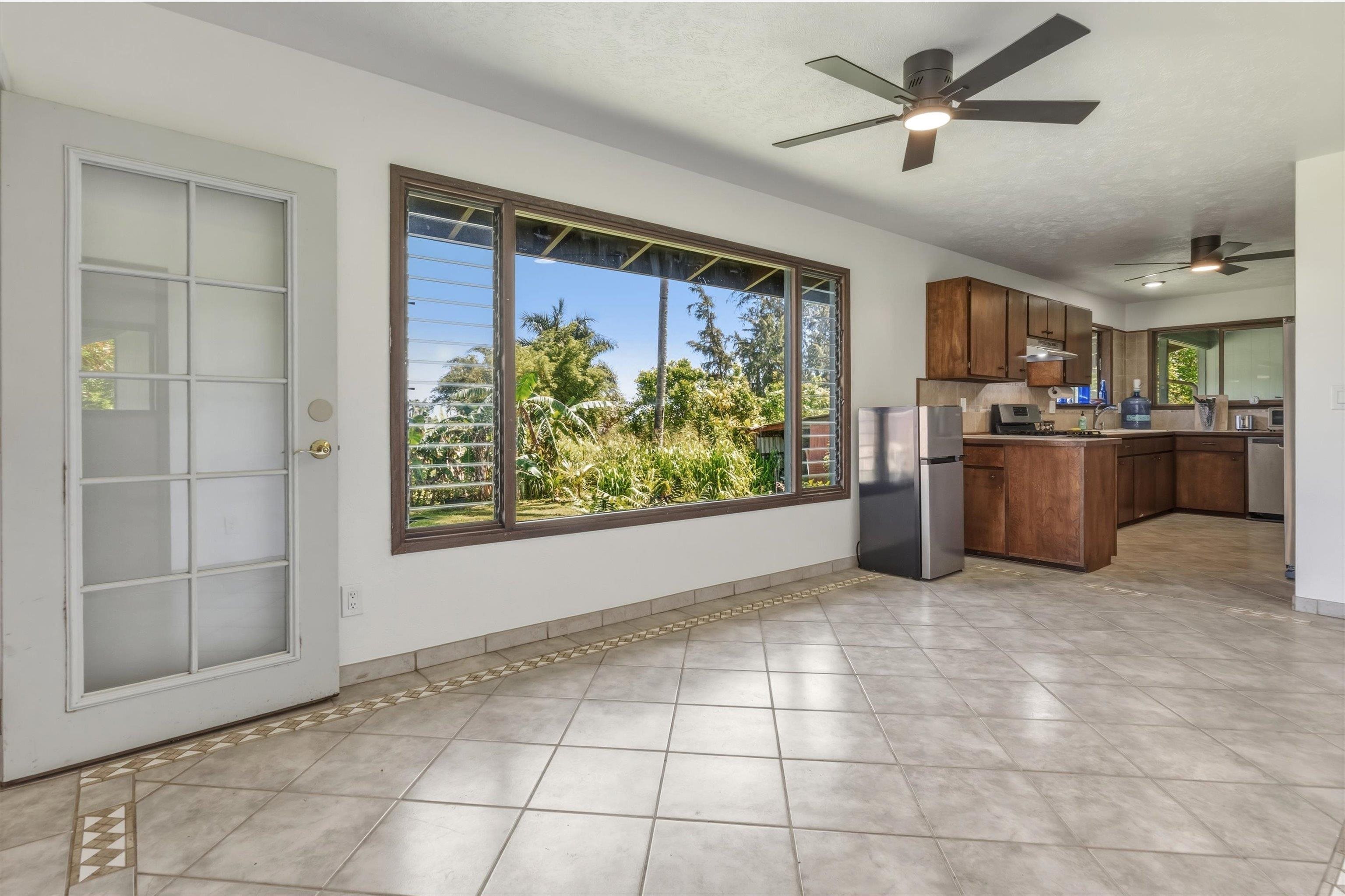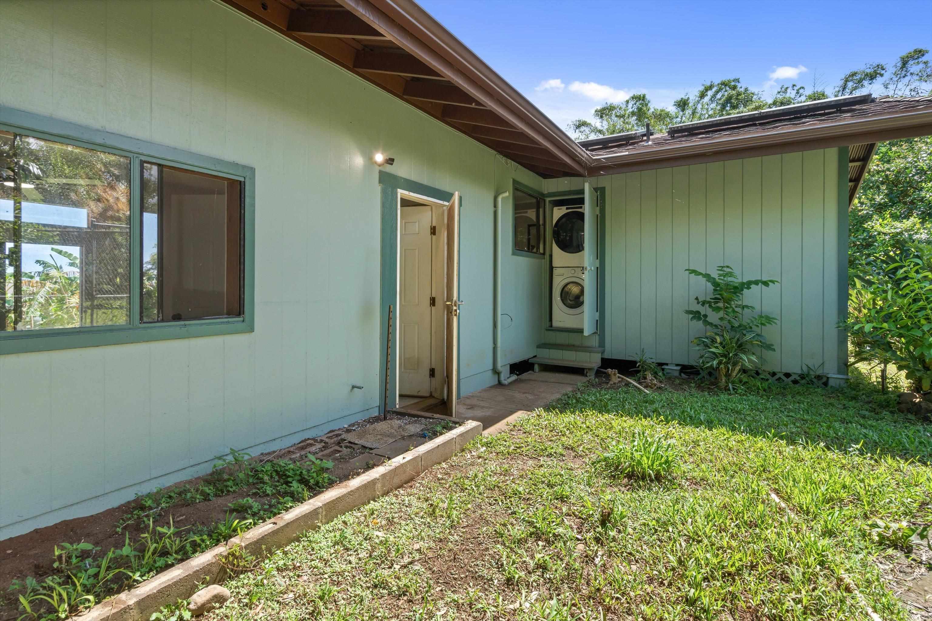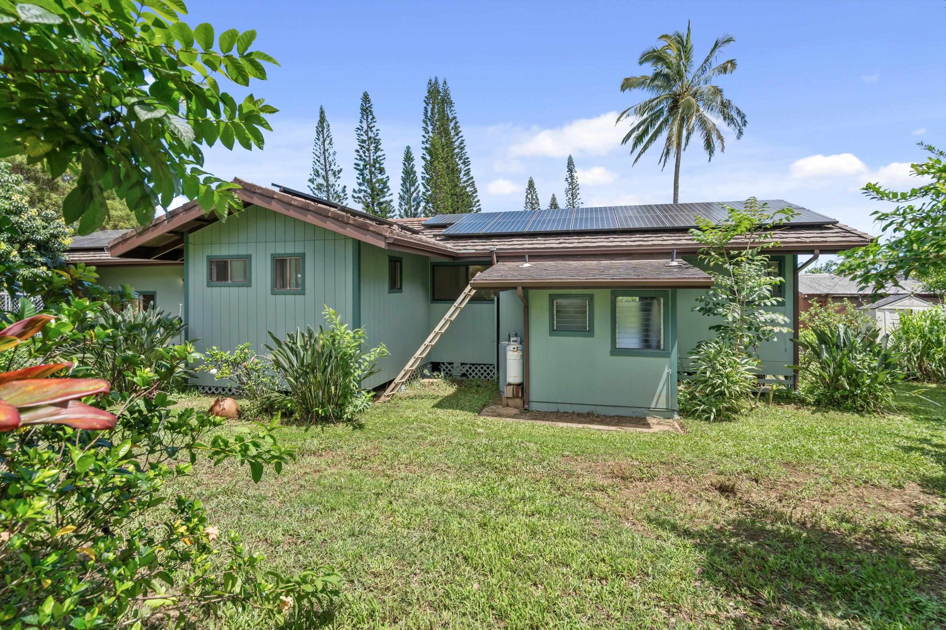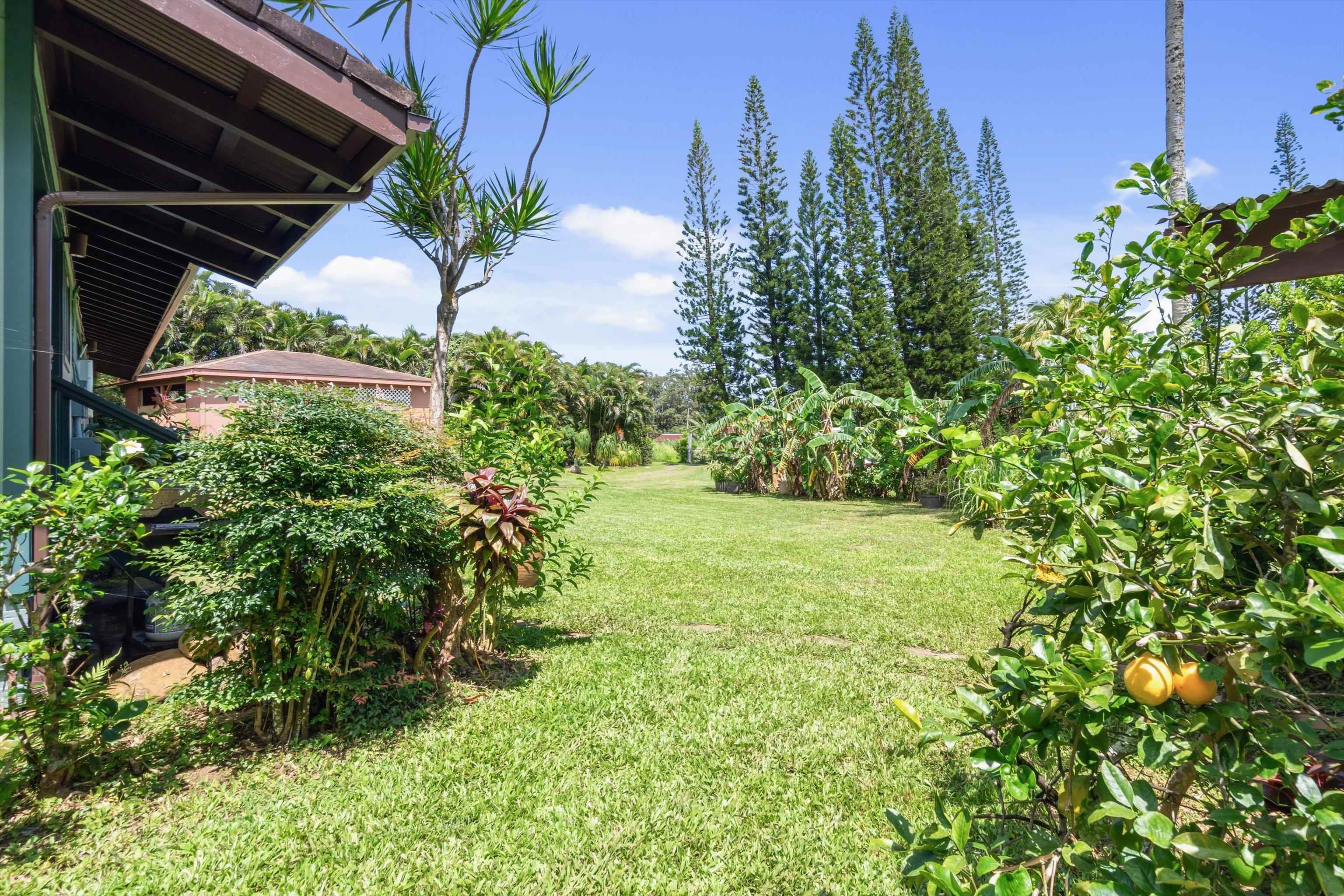Tucked away on 1.47 lush agricultural acres in Haiku, this private property offers a rare blend of flexibility, privacy, and island charm. Public records reflect a 2-bedroom, 2-bath home, while the adaptable layout allows for multiple living options, including a potential attached studio or separate-entry unit–ideal for extended family, guests, or rental income. The home features a spacious, open feel with seamless indoor-outdoor living. Mature landscaping includes a variety of fruit trees–lime, Hawaiian lemon, coconut, banana, and sugar cane–along with puakenikeni, heliconia, and gardenia and other tropical flowers. A peaceful bamboo grove adds to the sense of serenity, tucked within the uncultivated portion of the acreage. Additional highlights include a detached structure with an Endless Pool spa and storage, extra outbuildings, and two fenced areas suited for gardening, pets, or agriculture. Set back from Holokai Road behind a gated entry, the property offers exceptional privacy in a peaceful Haiku setting. Within a 15 minute drive, are stores, schools, post office and beaches. Some images include virtual staging.