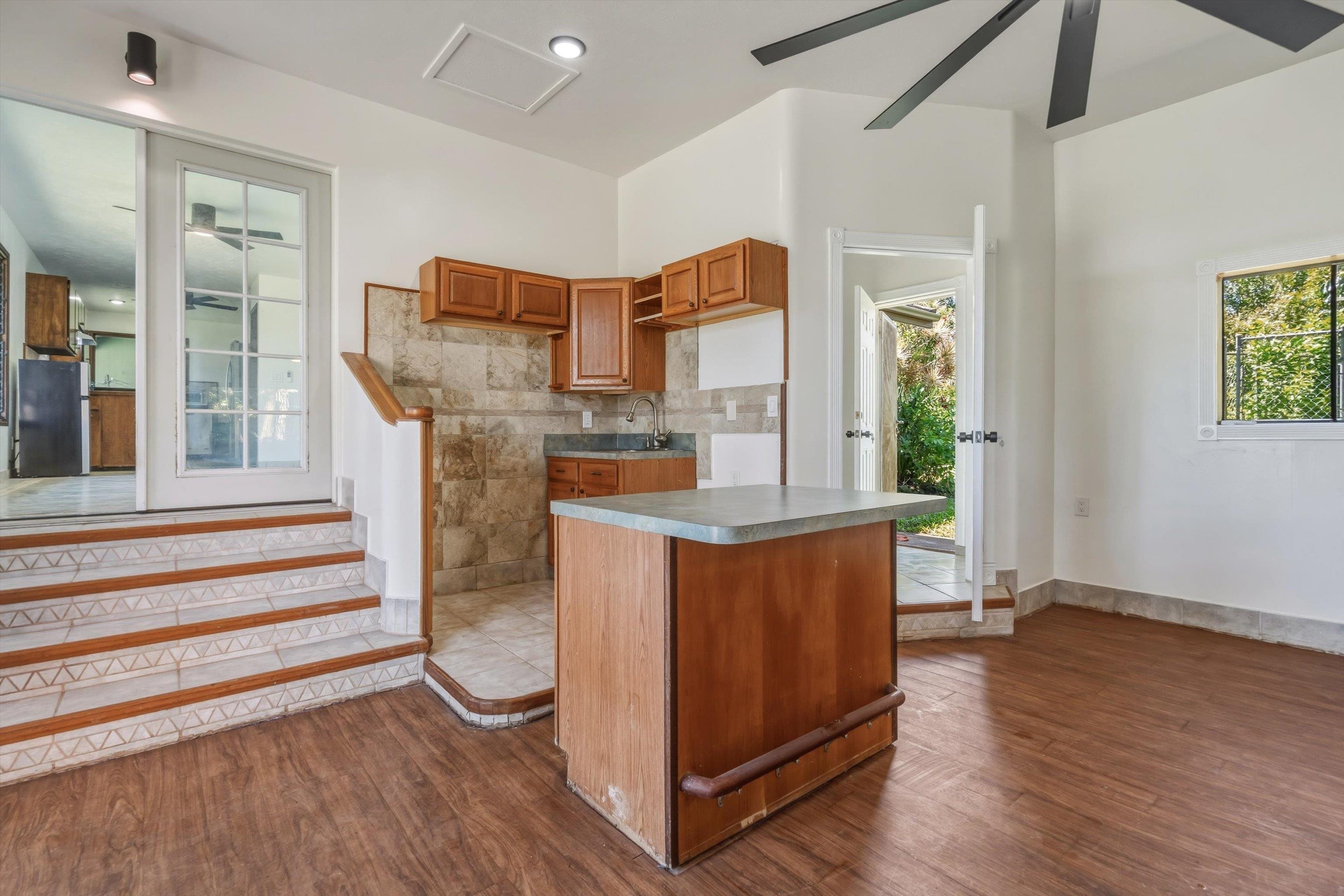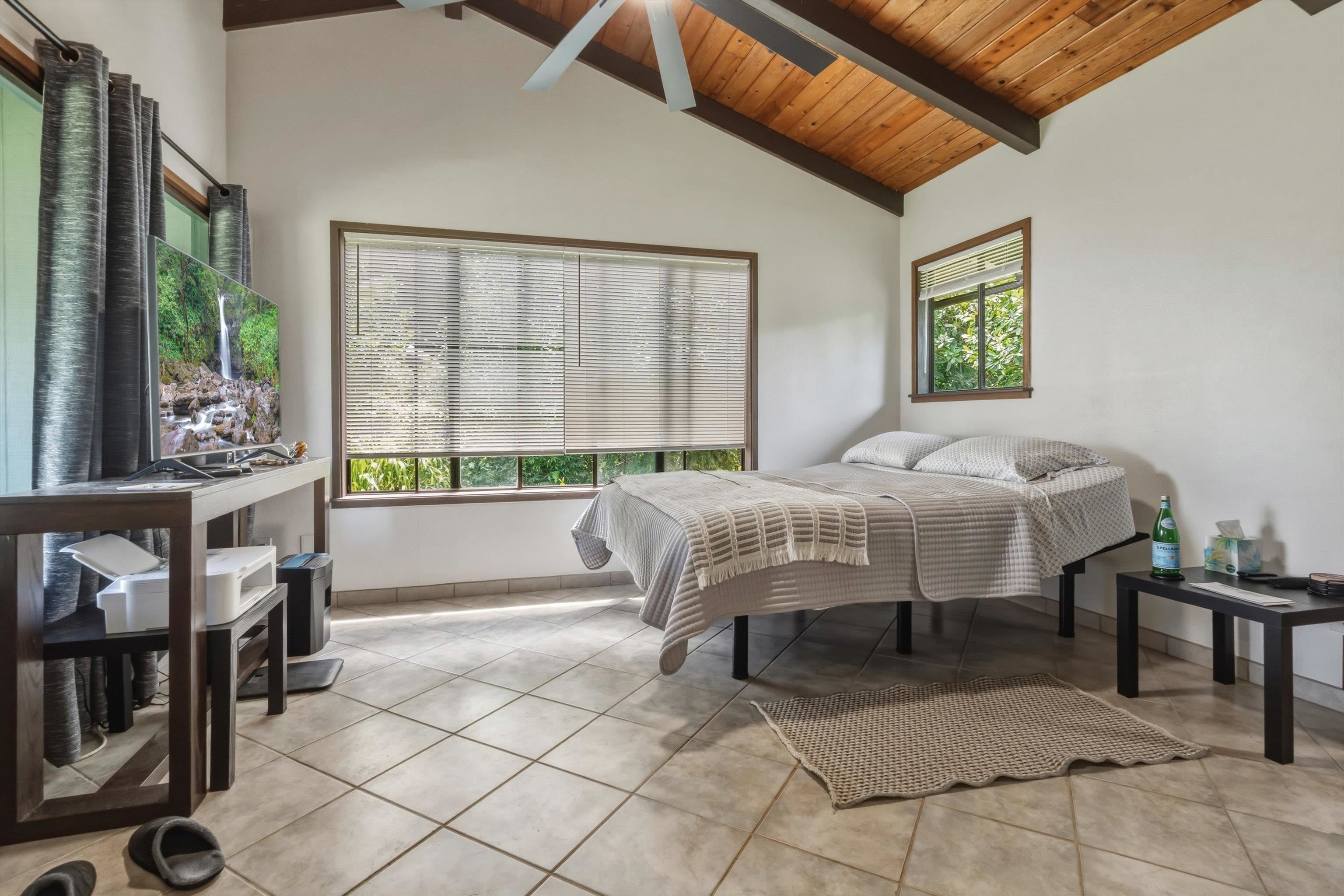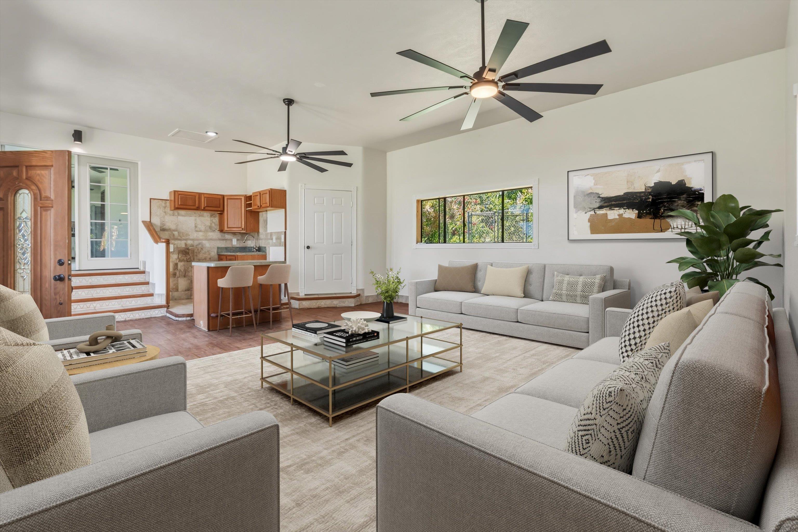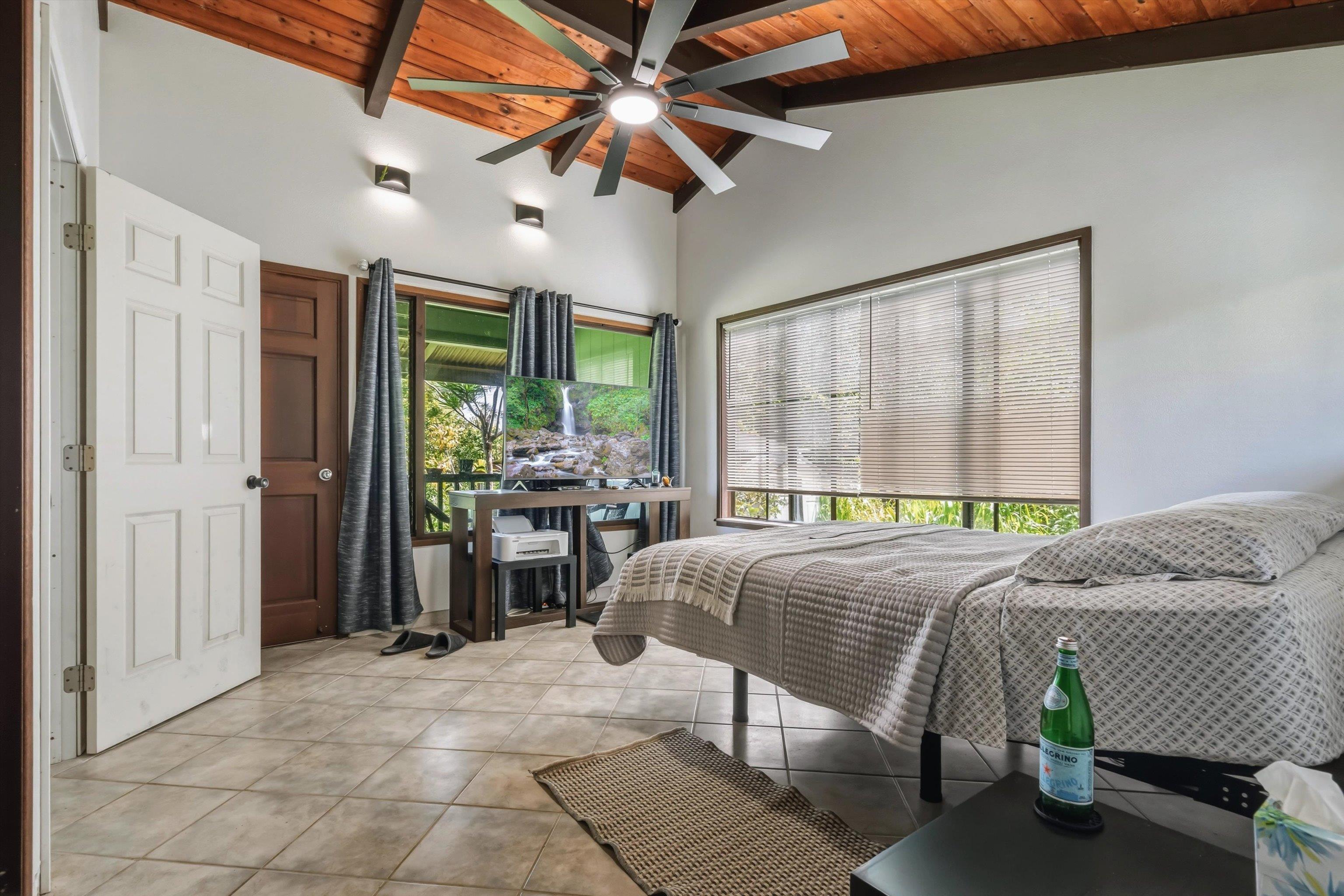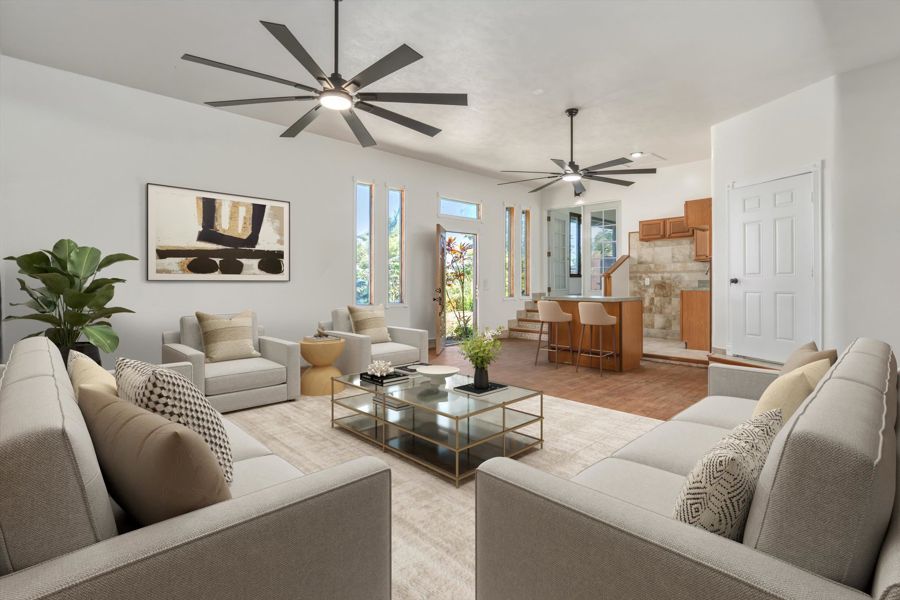 Tucked away on 1.47 lush agricultural acres in Haiku, this private property offers a rare blend of flexibility, privacy, and island charm. Public records reflect a 2-bedroom, 2-bath home, while the adaptable layout allows for multiple living options, including a potential attached studio or separate-entry unit–ideal for extended family, guests, or rental income. The home features a spacious, open feel with seamless indoor-outdoor living. Mature landscaping includes a variety of fruit trees–lime, Hawaiian lemon, coconut, banana, and sugar cane–along with puakenikeni, heliconia, and gardenia and other tropical flowers. A peaceful bamboo grove adds to the sense of serenity, tucked within the uncultivated portion of the acreage. Additional highlights include a detached structure with an Endless Pool spa and storage, extra outbuildings, and two fenced areas suited for gardening, pets, or agriculture. Set back from Holokai Road behind a gated entry, the property offers exceptional privacy in a peaceful Haiku setting. Within a 15 minute drive, are stores, schools, post office and beaches. Some images include virtual staging.