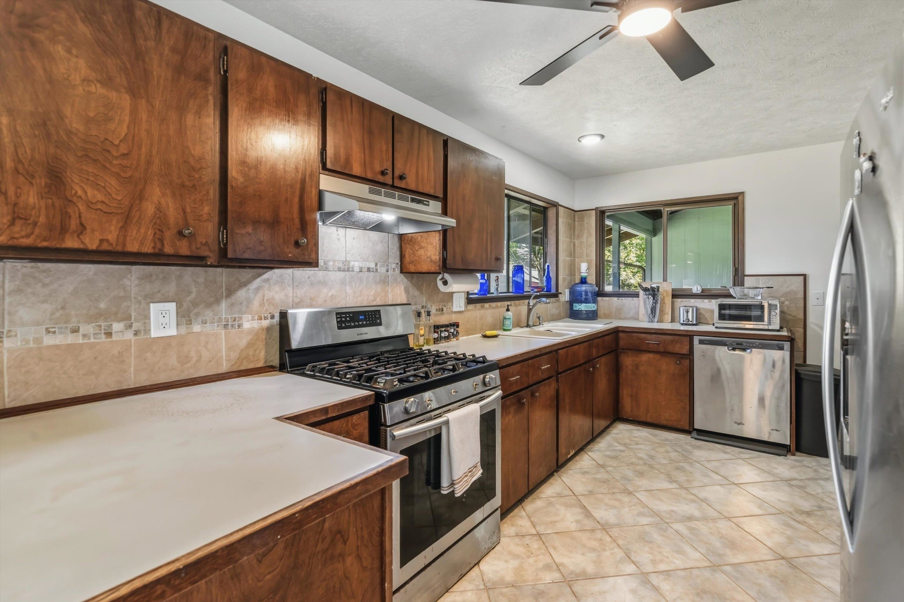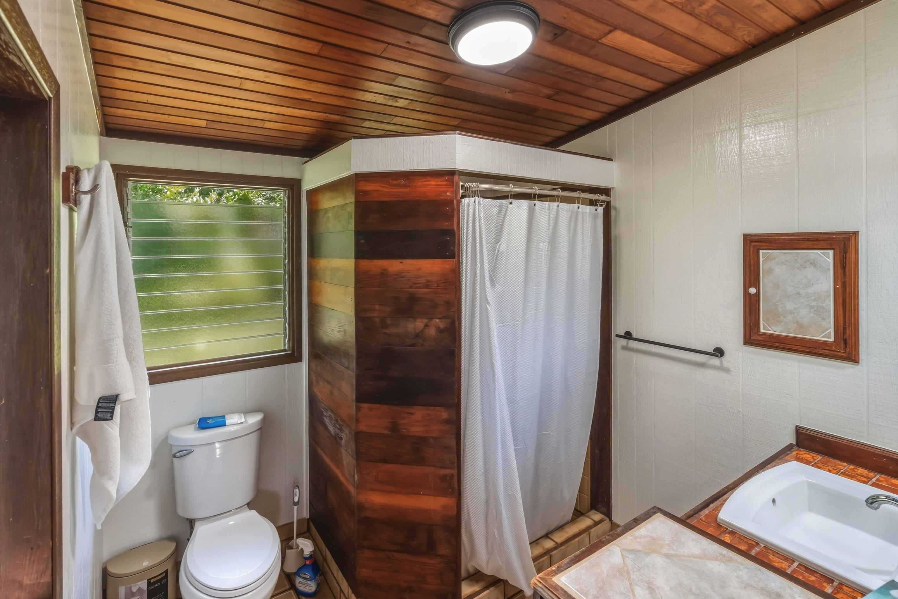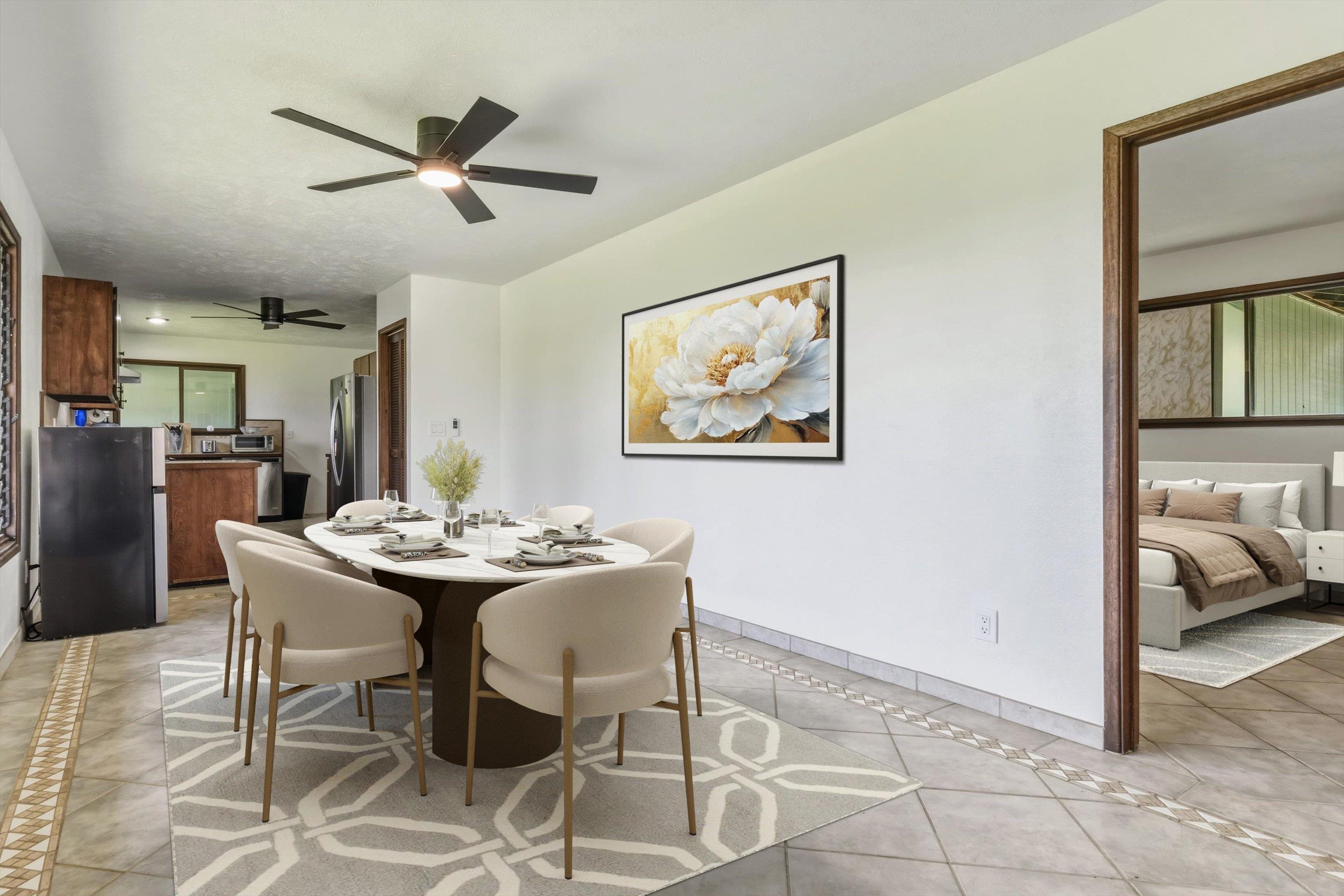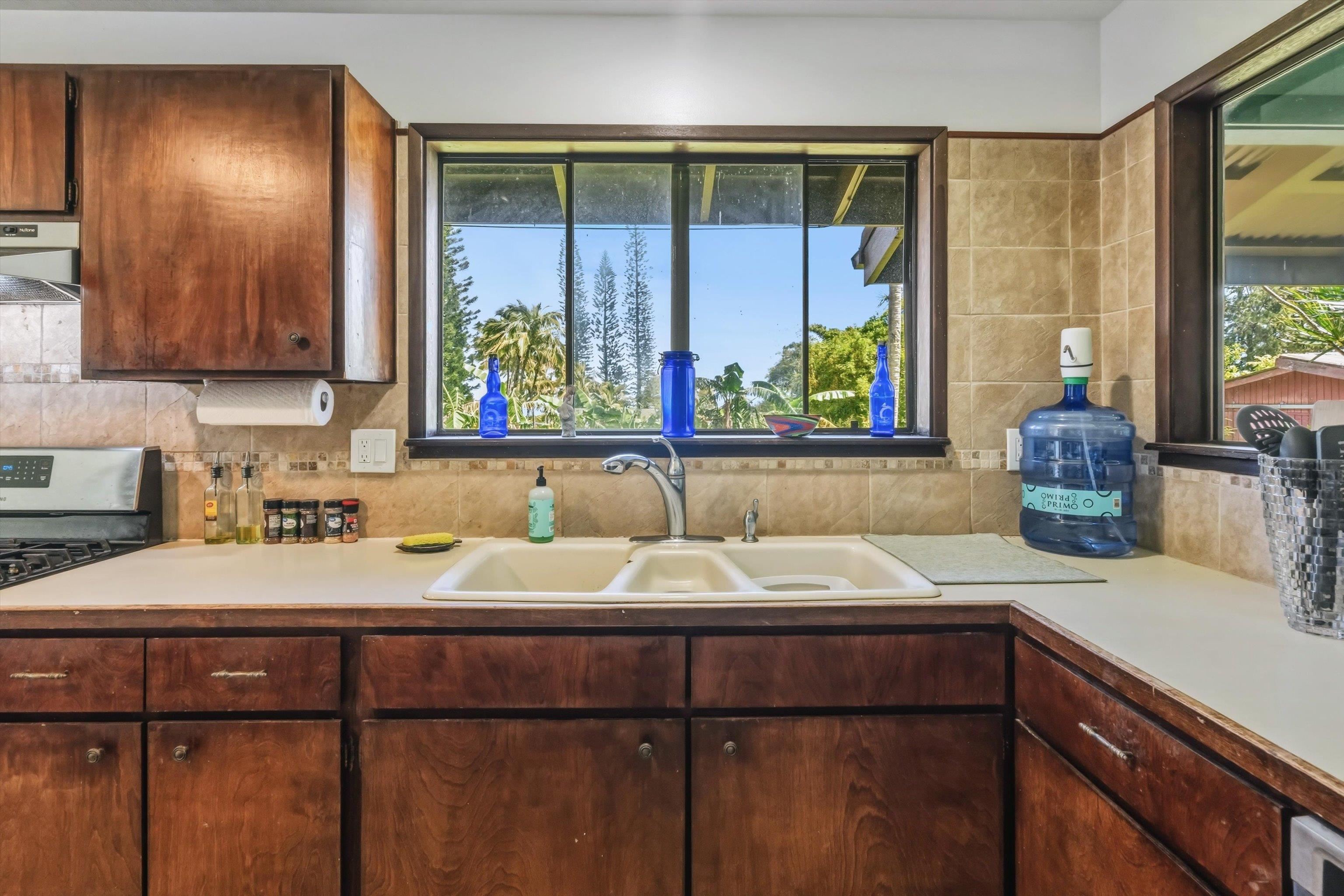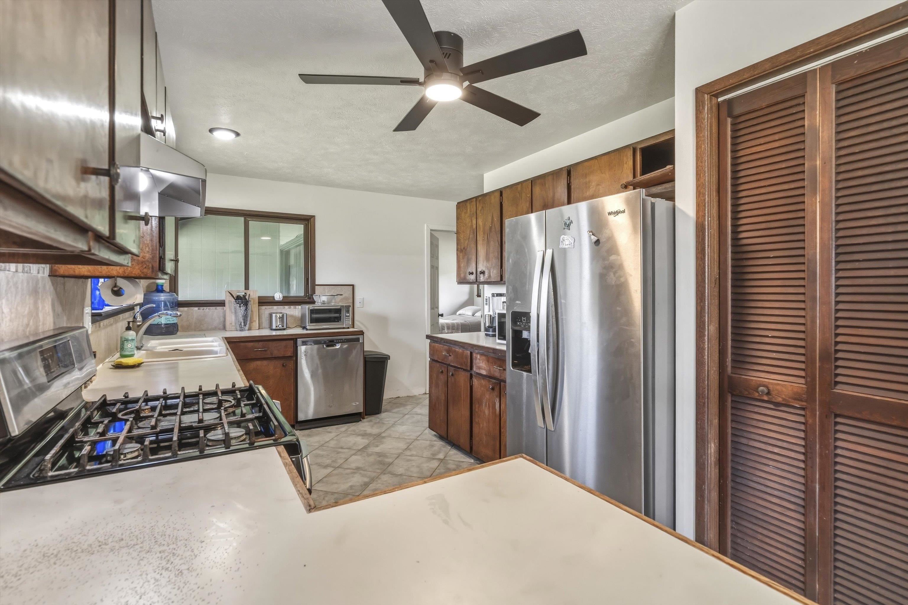 Tucked away on 1.47 lush agricultural acres in Haiku, this private property offers a rare blend of flexibility, privacy, and island charm. Public records reflect a 2-bedroom, 2-bath home, while the adaptable layout allows for multiple living options, including a potential attached studio or separate-entry unit–ideal for extended family, guests, or rental income. The home features a spacious, open feel with seamless indoor-outdoor living. Mature landscaping includes a variety of fruit trees–lime, Hawaiian lemon, coconut, banana, and sugar cane–along with puakenikeni, heliconia, and gardenia and other tropical flowers. A peaceful bamboo grove adds to the sense of serenity, tucked within the uncultivated portion of the acreage. Additional highlights include a detached structure with an Endless Pool spa and storage, extra outbuildings, and two fenced areas suited for gardening, pets, or agriculture. Set back from Holokai Road behind a gated entry, the property offers exceptional privacy in a peaceful Haiku setting. Within a 15 minute drive, are stores, schools, post office and beaches. Some images include virtual staging.