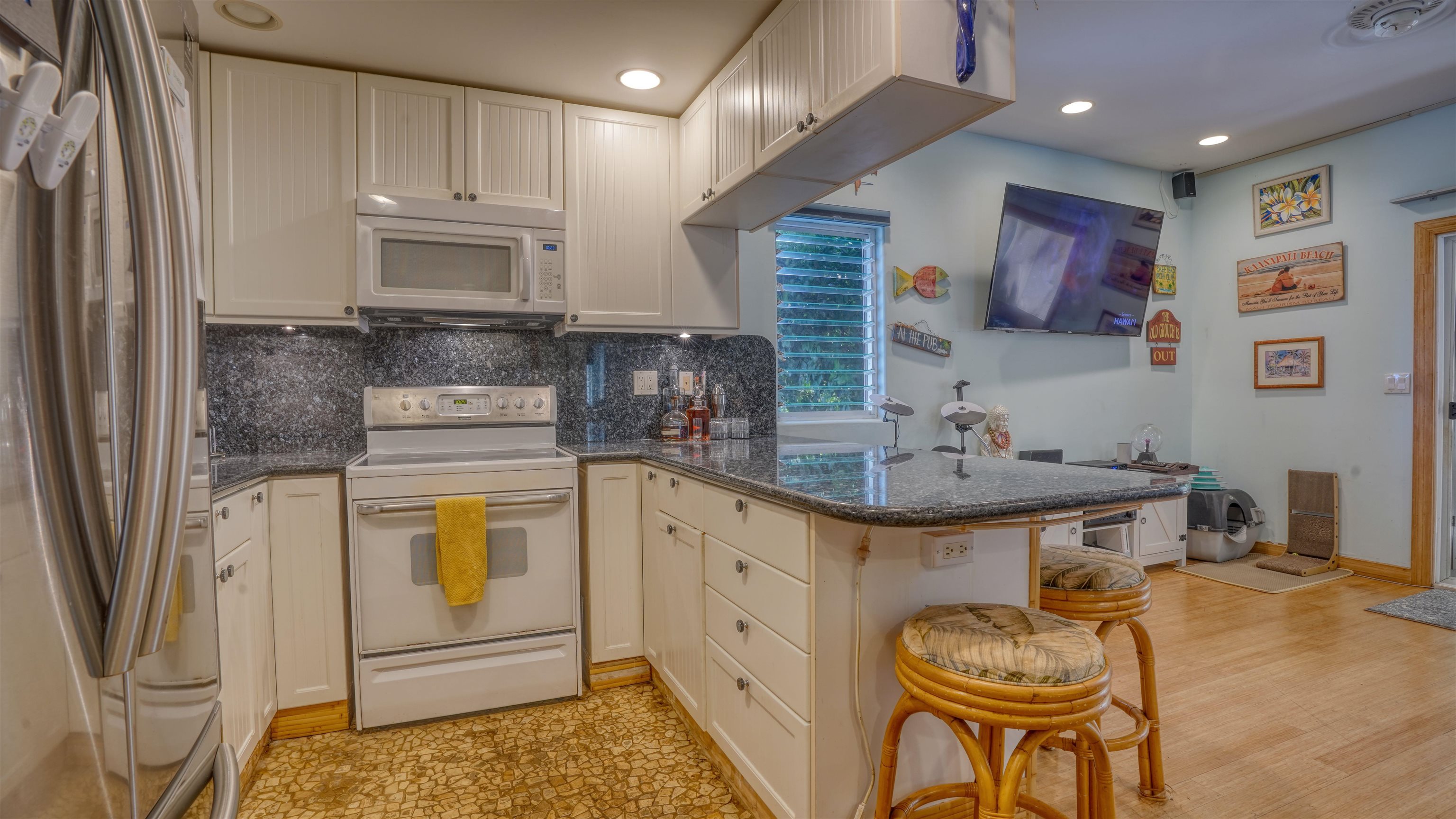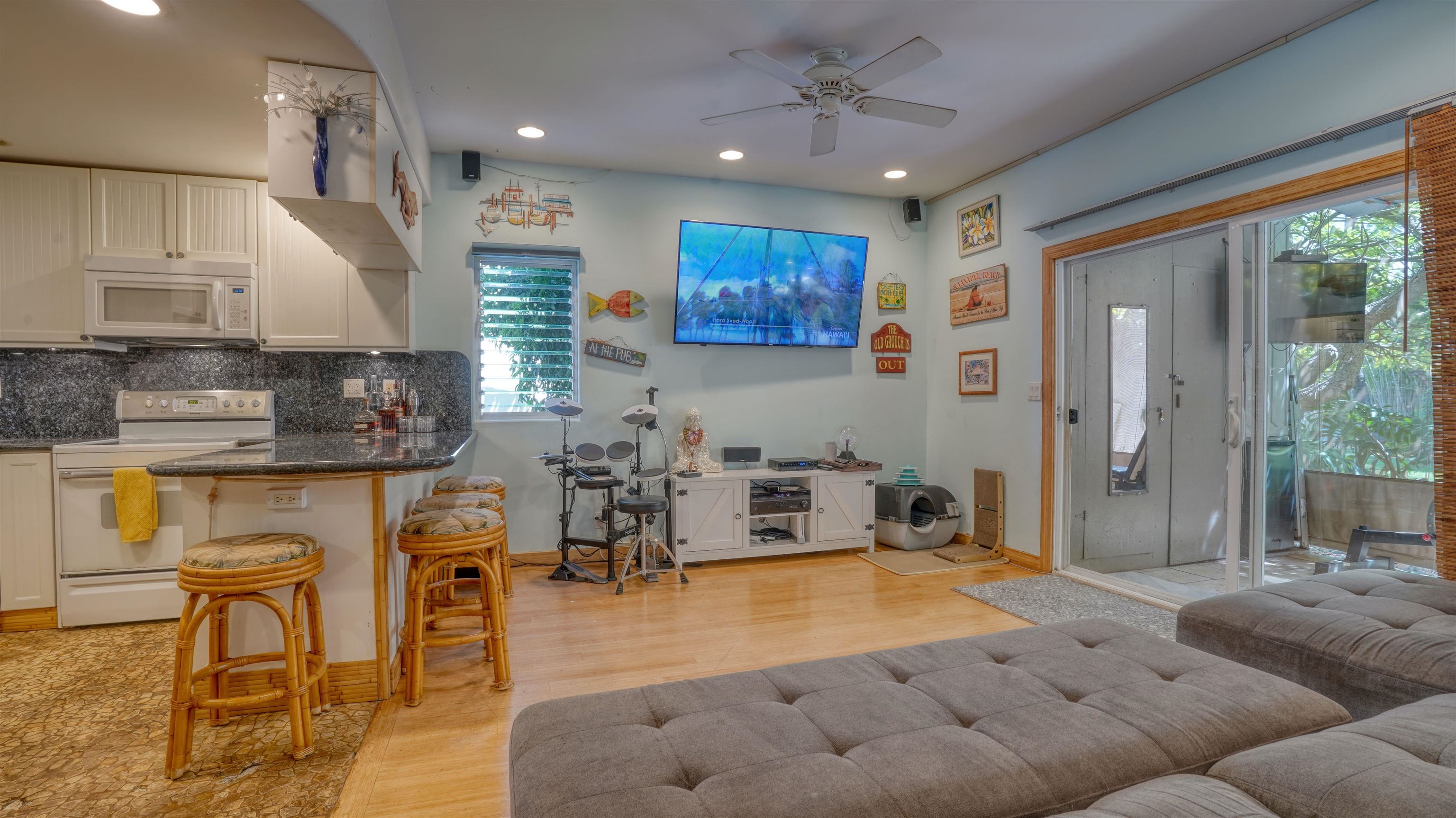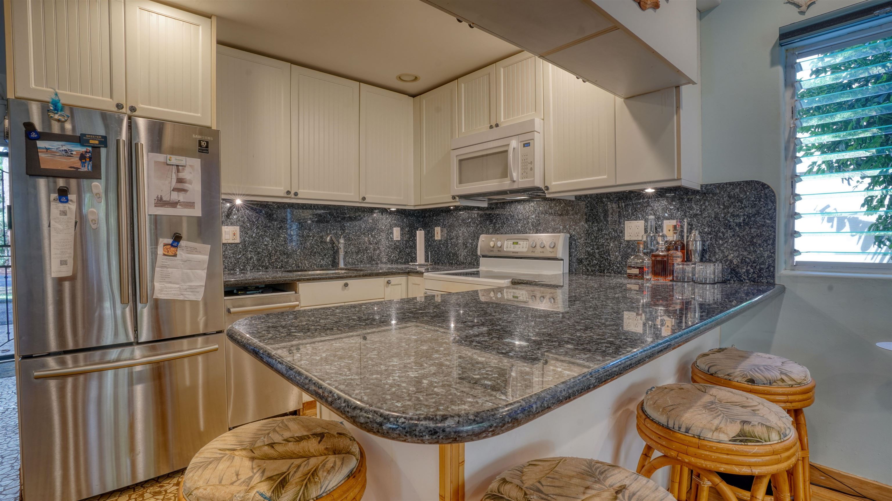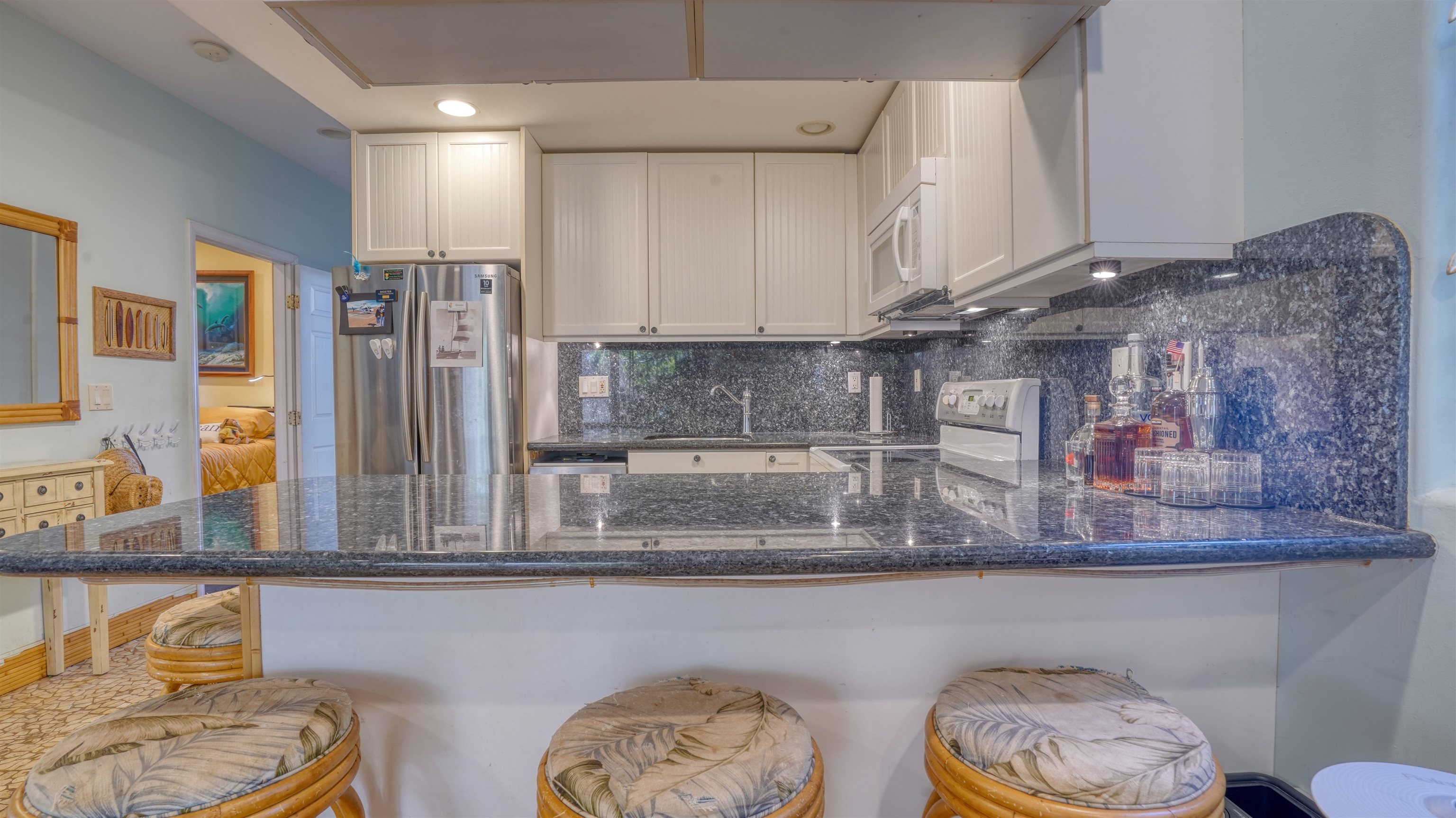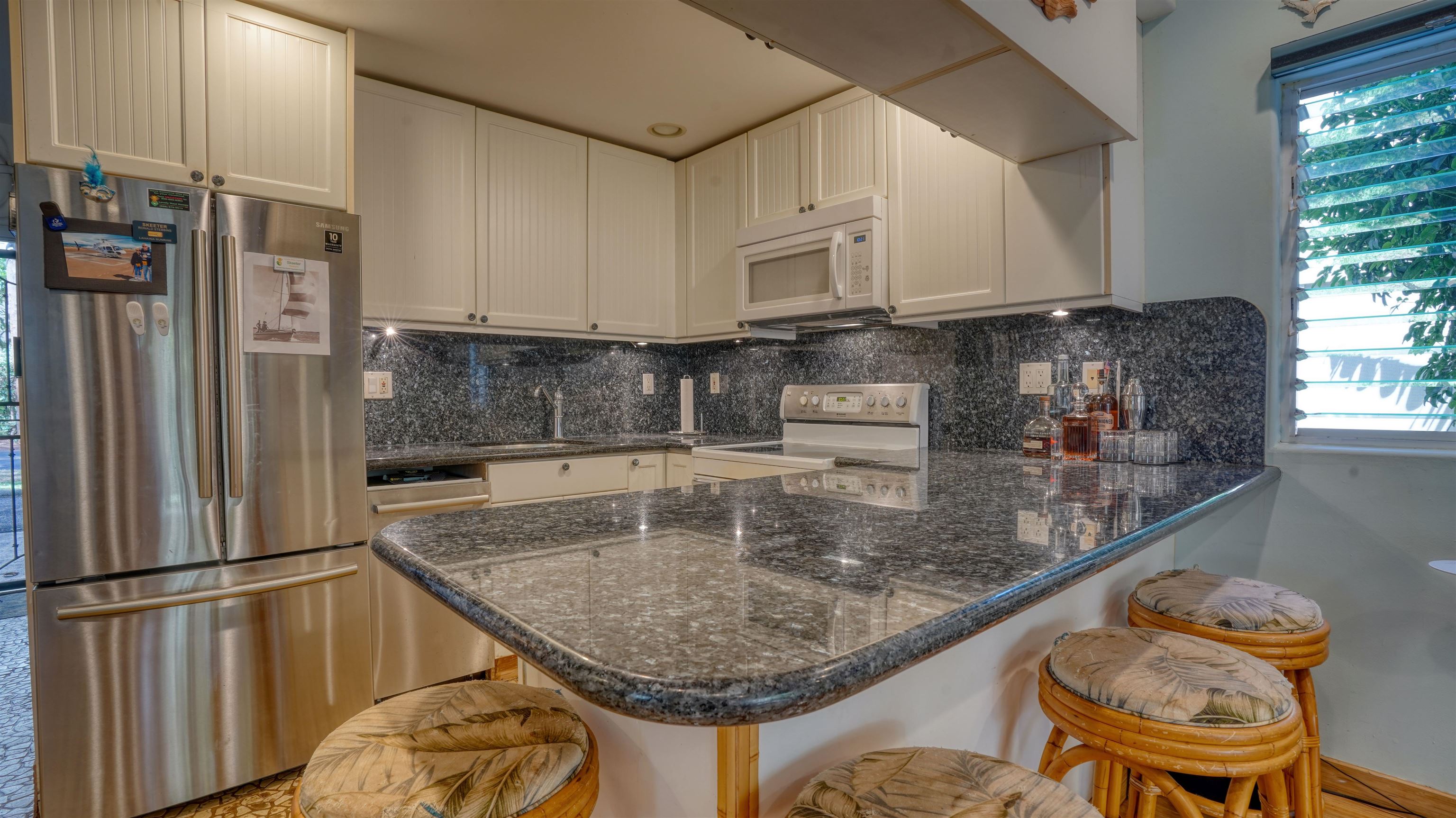 Live the Maui dream–just 70 steps from Kahana Beach. Wake up to the sound of the ocean and take a morning stroll on one of West Maui’s most beloved beaches. This beautifully remodeled condo blends island charm with modern comfort in one of the most desirable locations on the island. Inside, every detail has been thoughtfully upgraded–from the stunning pearl blue granite countertops and sandstone river rock entry to the warm bamboo floors that flow through the living area. It’s also the only fully insulated unit in the entire complex, keeping it cool and comfortable year-round. Originally a two-bedroom, the condo has been transformed into a spacious one-bedroom retreat, but it can easily be converted back to a two-bedroom if you prefer. The custom screened-in lanai creates an inviting outdoor living space–perfect for morning coffee, evening cocktails, or simply enjoying the island breeze. Pohailani offers the best of resort-style living with three barbecue areas (including one right on the ocean), two sparkling pools, and a tennis court–all just moments from your door. Whether you’re looking for a peaceful island home, a vacation getaway, or an investment property, this condo truly has it all. Pohailani–where comfort meets paradise.