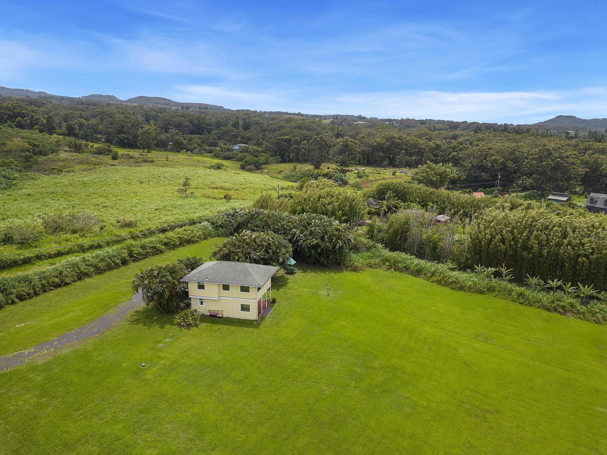 Also listed as Vacant Land, MLS #409399 Rare 27-acre property in Haiku on Maui’s North Shore, offering exceptional privacy, serenity, and sweeping panoramic views. This unique estate spans 3 contiguous TMKs and is gated for added security and exclusivity. Enjoy expansive ocean and Haleakala views from multiple vantage points across the property. A custom-built 2-bedroom, 1-bath home is situated on the upper portion of the land, providing a comfortable living space to enjoy immediately – or to serve as a guest house while you build your dream estate. The upper acreage features flat, usable pasture land, while the lower portion offers gently rolling terrain. This acreage is ideal for agricultural use, an equestrian estate, a private retreat, an estate home or even a subdivision. The land has not been farmed in over 30 years. SELLER FINANCING IS AVAILABLE, making this a rare opportunity to secure large, versatile acreage in Haiku with flexible terms.