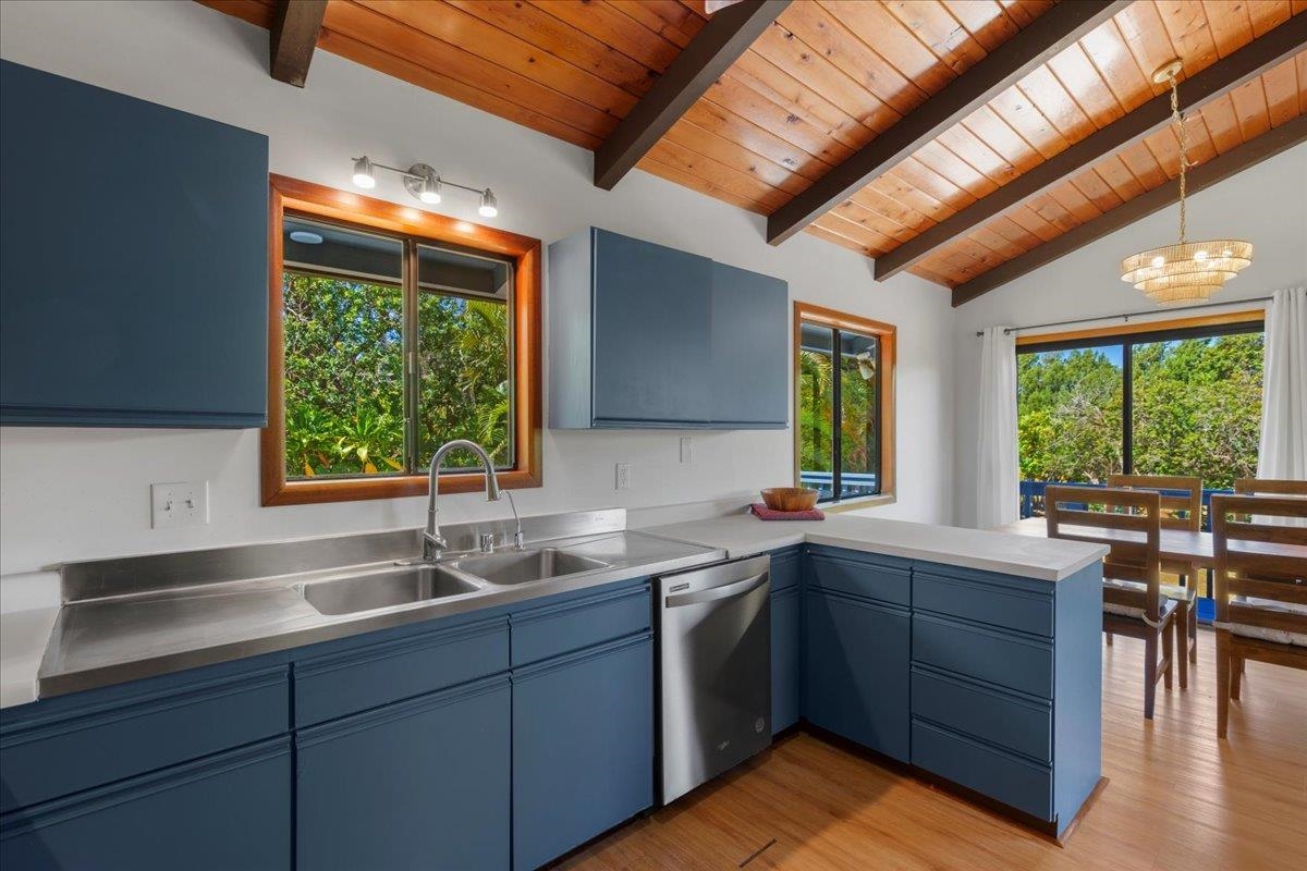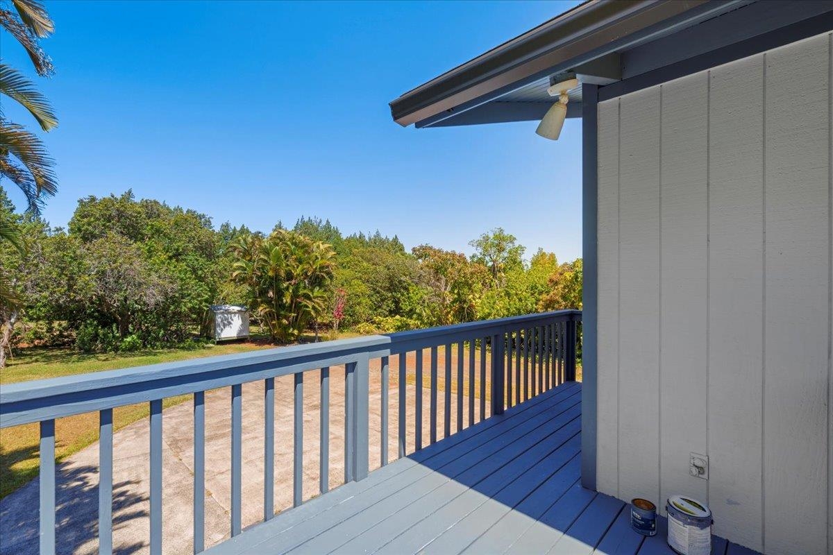 Welcome to this spacious 4-bedroom, 2.5-bath home featuring two family rooms and a two-car garage, ideally situated in the heart of Haiku and move-in ready. The main residence sits on just over an acre of lush, flat, usable land in scenic Haiku–Portion A of a CPR/Residential condo. You have small ocean views from the front lanai and one bedroom. Enjoy tropical landscaping and an abundance of fruit trees, including loquats, guava, and bananas. Set back from the road, this two-story house boasts vaulted ceilings and numerous upgrades. In 2022, the owners installed a new roof, new decks and railings, updated flooring, and more. This well-cared-for home offers a dedicated gated driveway, privacy from the cottage portion, and current AG zoning that allows for agricultural buildings with a farm plan. Centrally located, it's just 10 minutes from Haiku Town Center and 5 minutes to Makawao town. Experience the best of Haiku living–schedule a visit to see this exceptional property today!