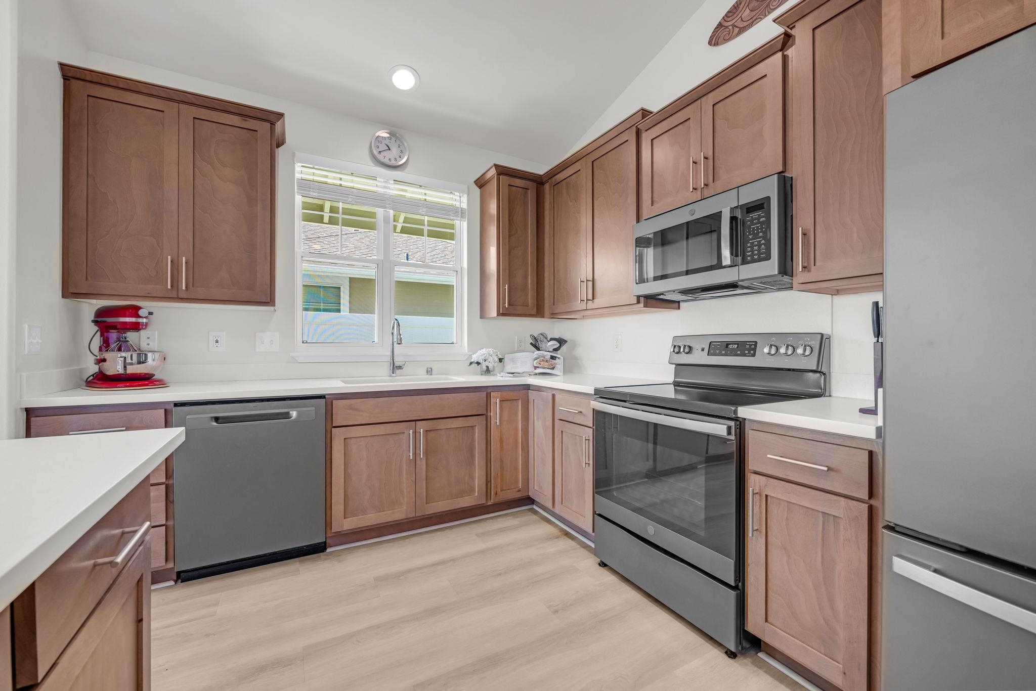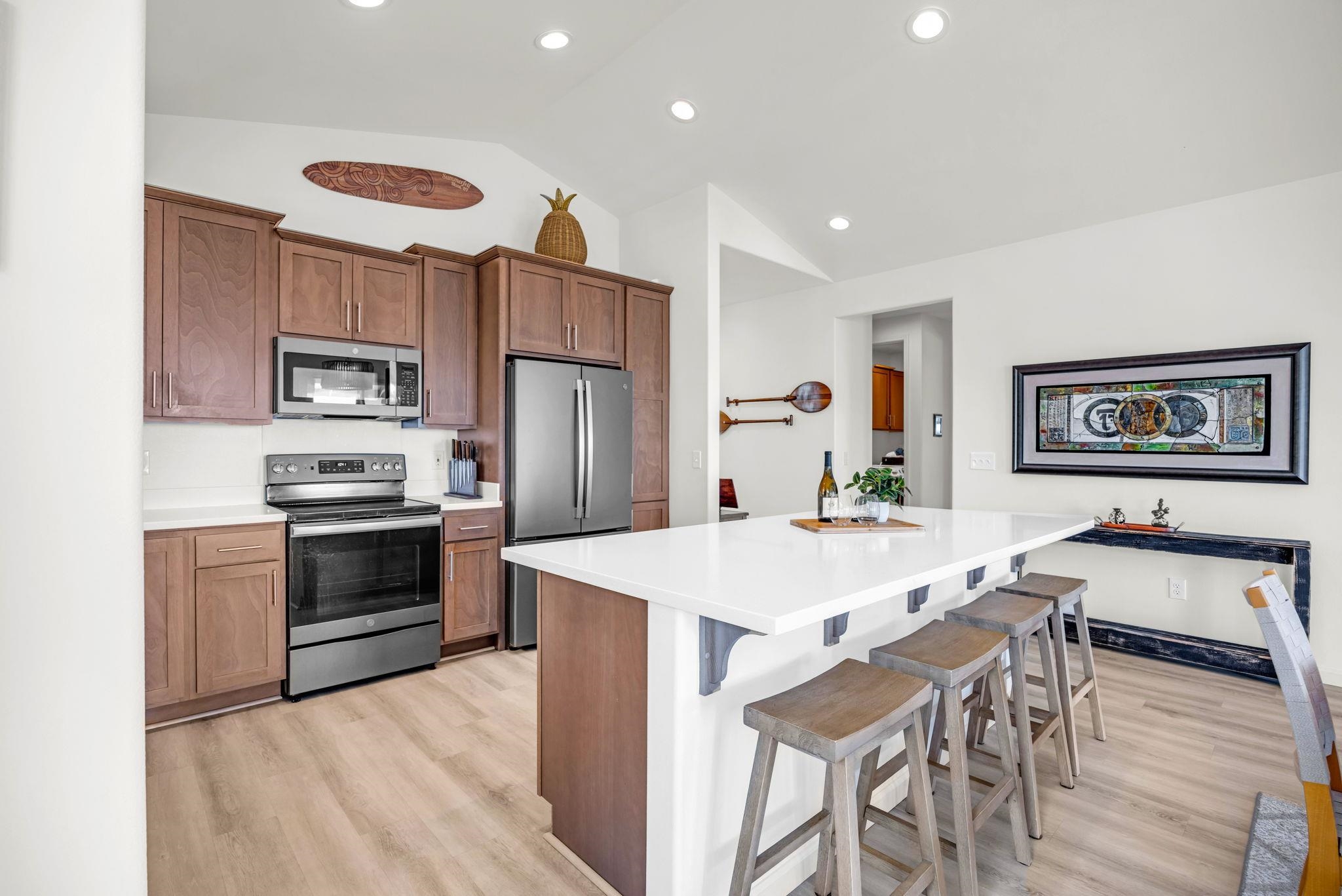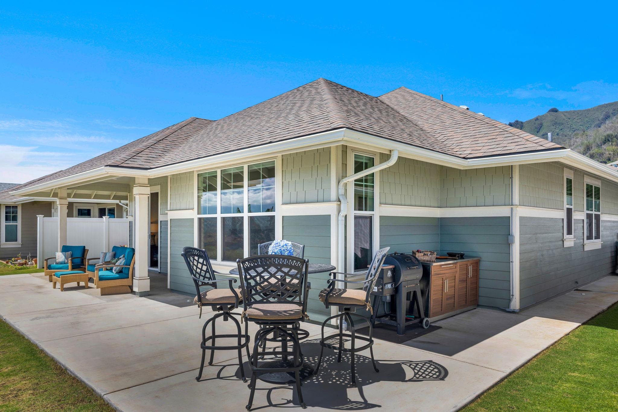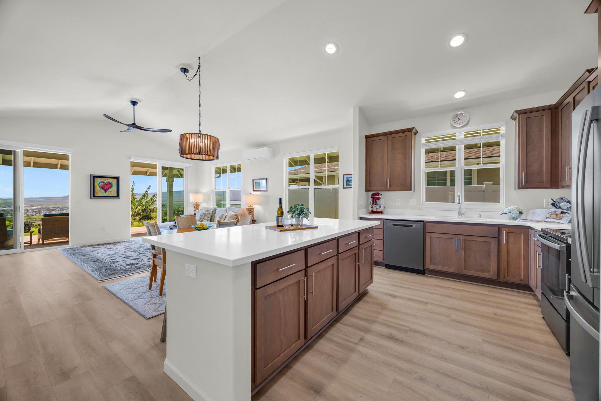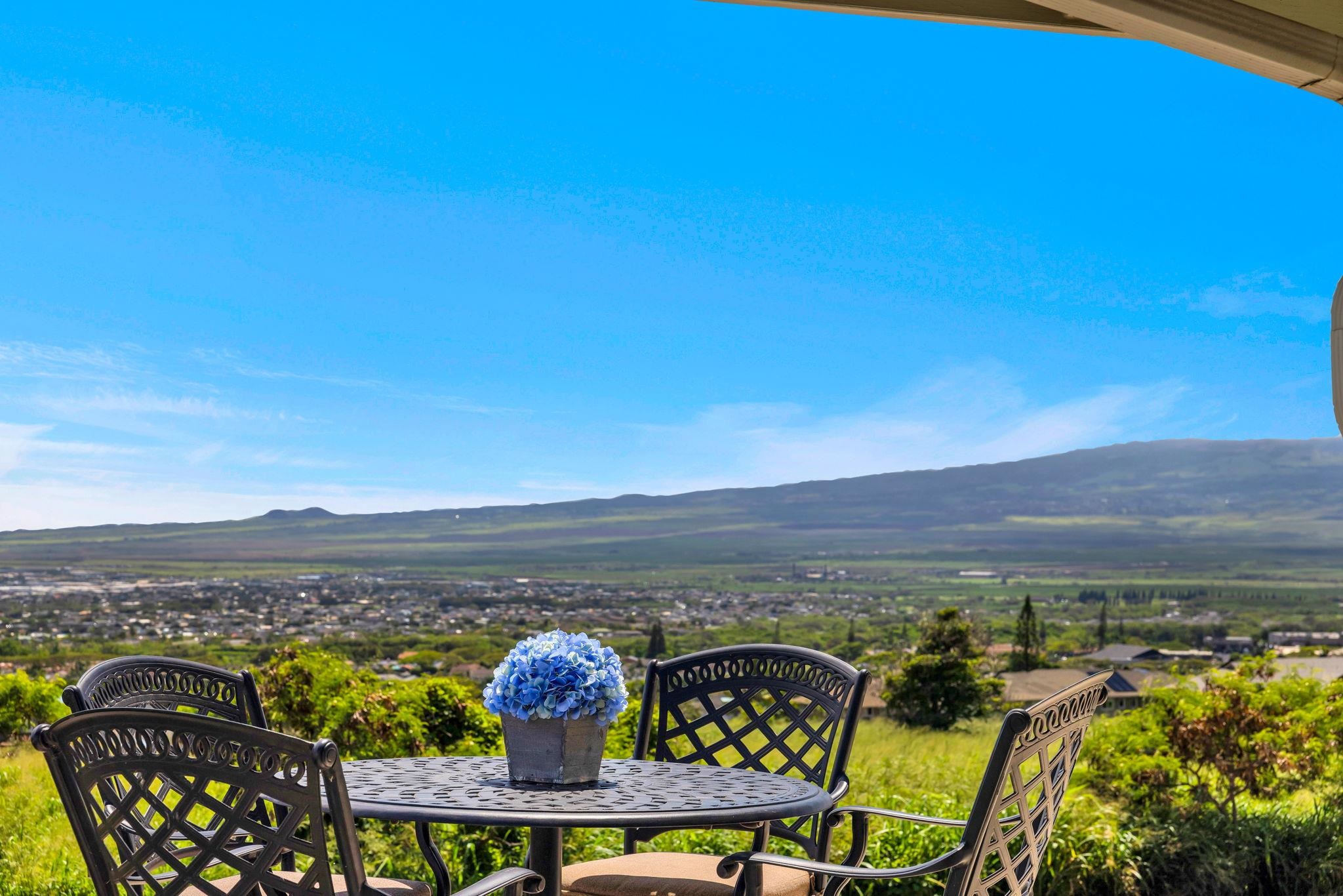 JUST LISTED! Experience the pinnacle of Maui living in this modern single-level residence with breathtaking ocean and mountain views! Located in Anuhea, one of Central Maui's newest subdivisions, this immaculate residence offers a seamless blend of comfort and style. Buyers will appreciate the modern construction and quality finishes of this immaculate move-in ready 3 bedroom/2 bath home. The open floor plan flows effortlessly with nine-foot ceilings and an abundance of windows to provide natural light. The chef's kitchen features solid wood cabinetry, Corian countertops, and energy-efficient appliances with a modern slate finish. The primary and guest bedrooms feature custom-designed closet systems while a separate laundry room houses a GE Smart front-load washer and dryer. Step outside onto an extended lanai where the breathtaking view stretches all the way to the summit of Haleakala. Owners have added a 3-tiered rock wall with irrigation, perimeter sidewalk, and a variety of fruit trees. Dramatic West Maui Mountain views from the front yard and front bedroom. Ideally situated, this home offers a prime location just minutes from the airport and hospital, with world-class beaches only a short drive away. Don't miss the rare opportunity to own this very special home in the heart of Maui.
