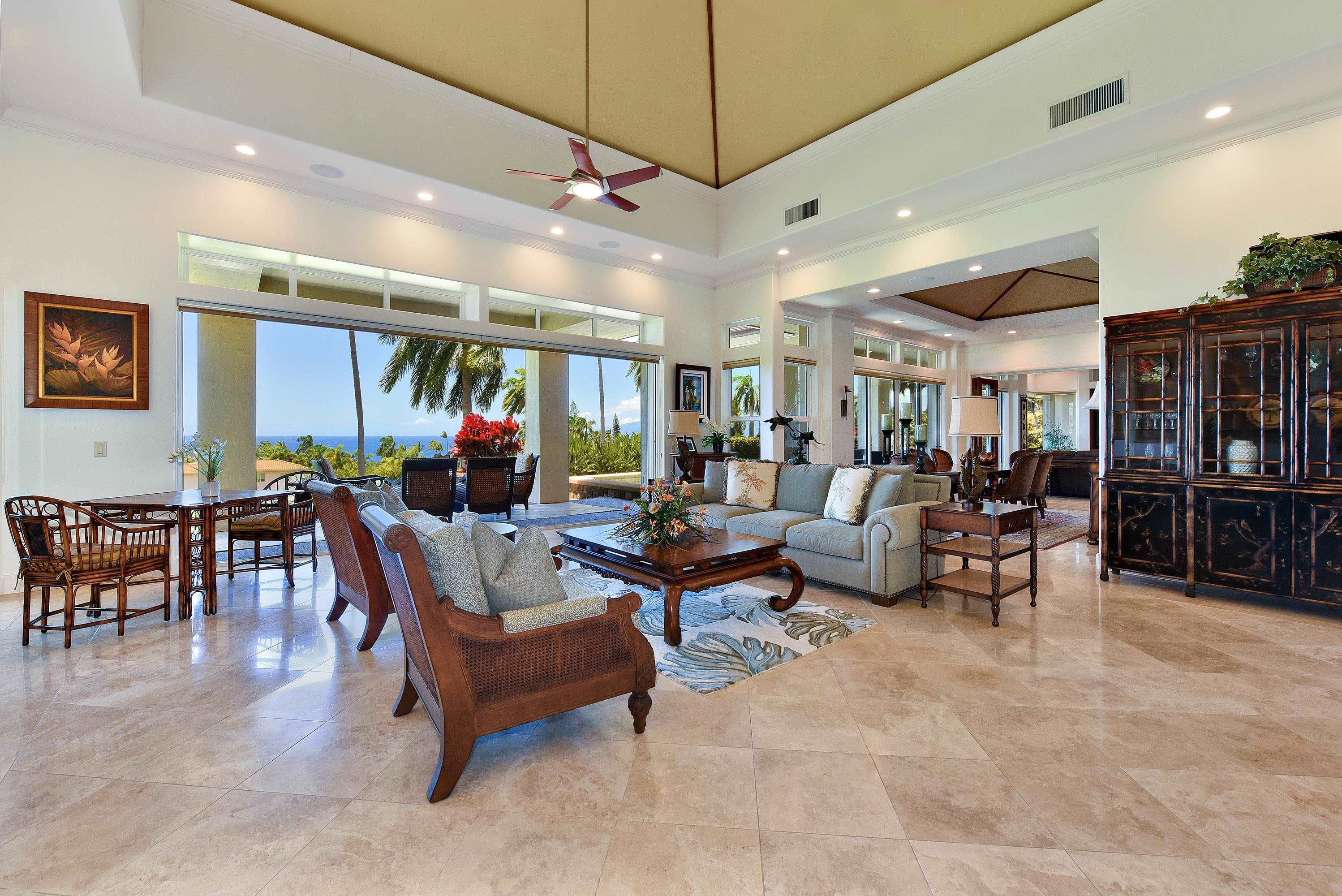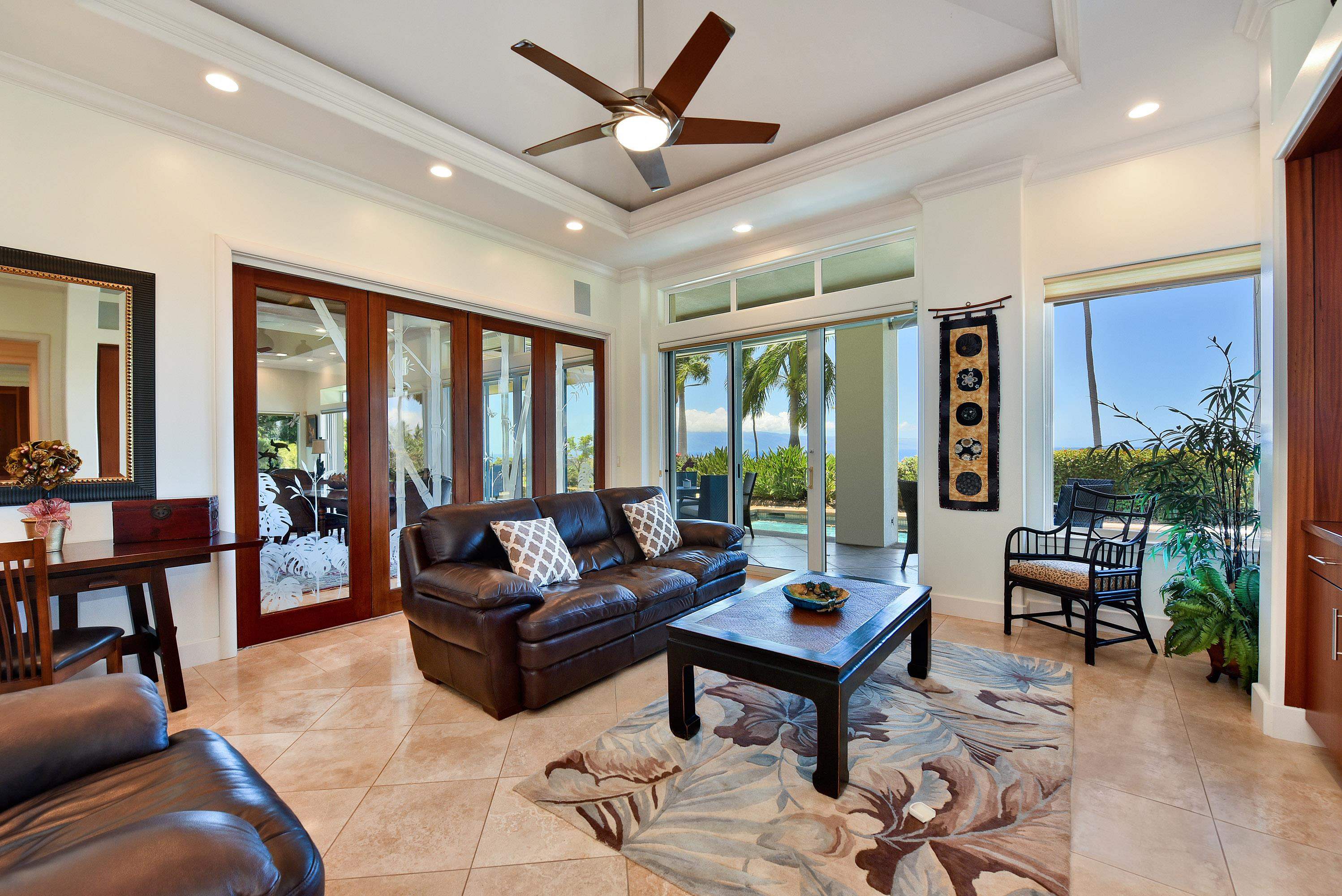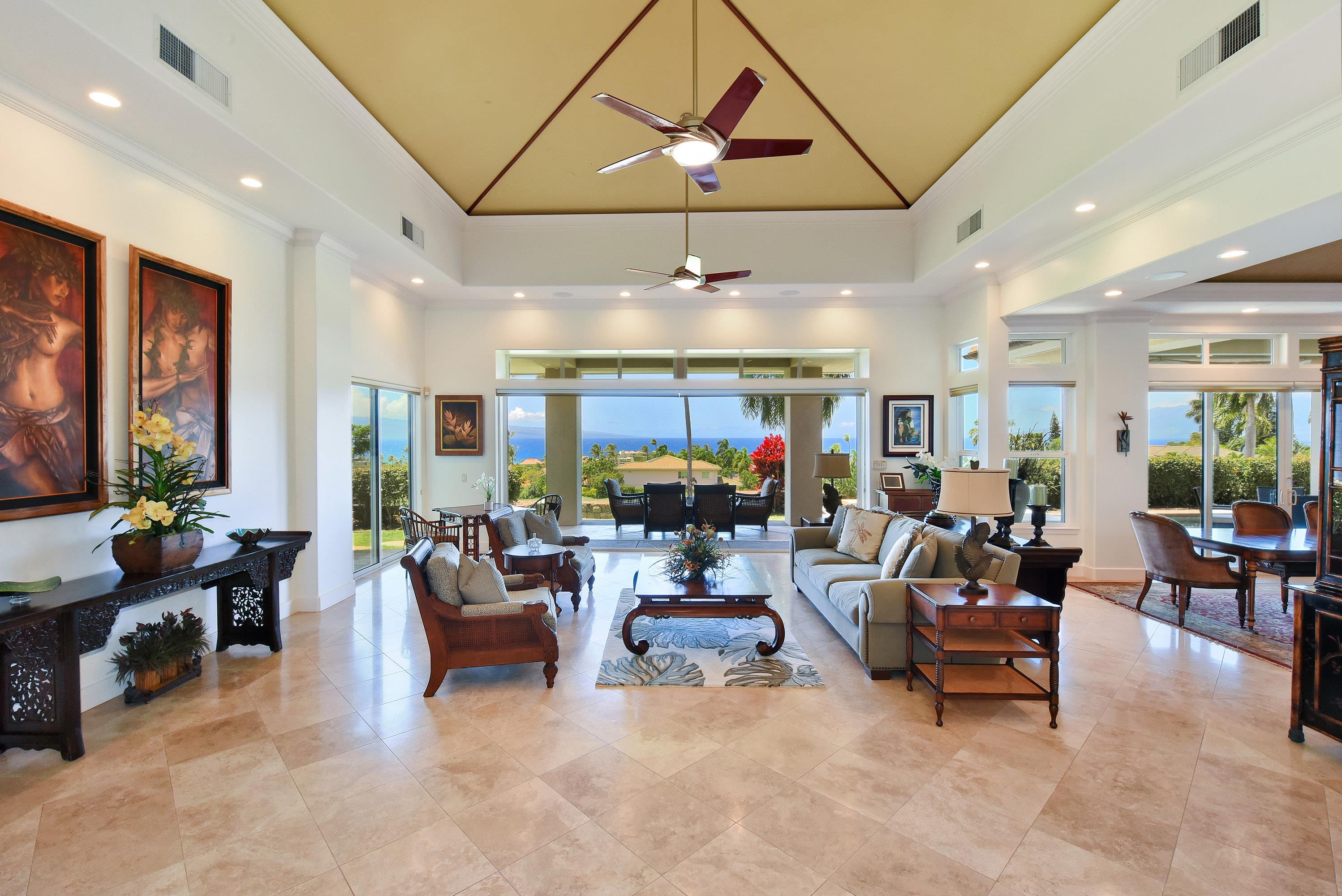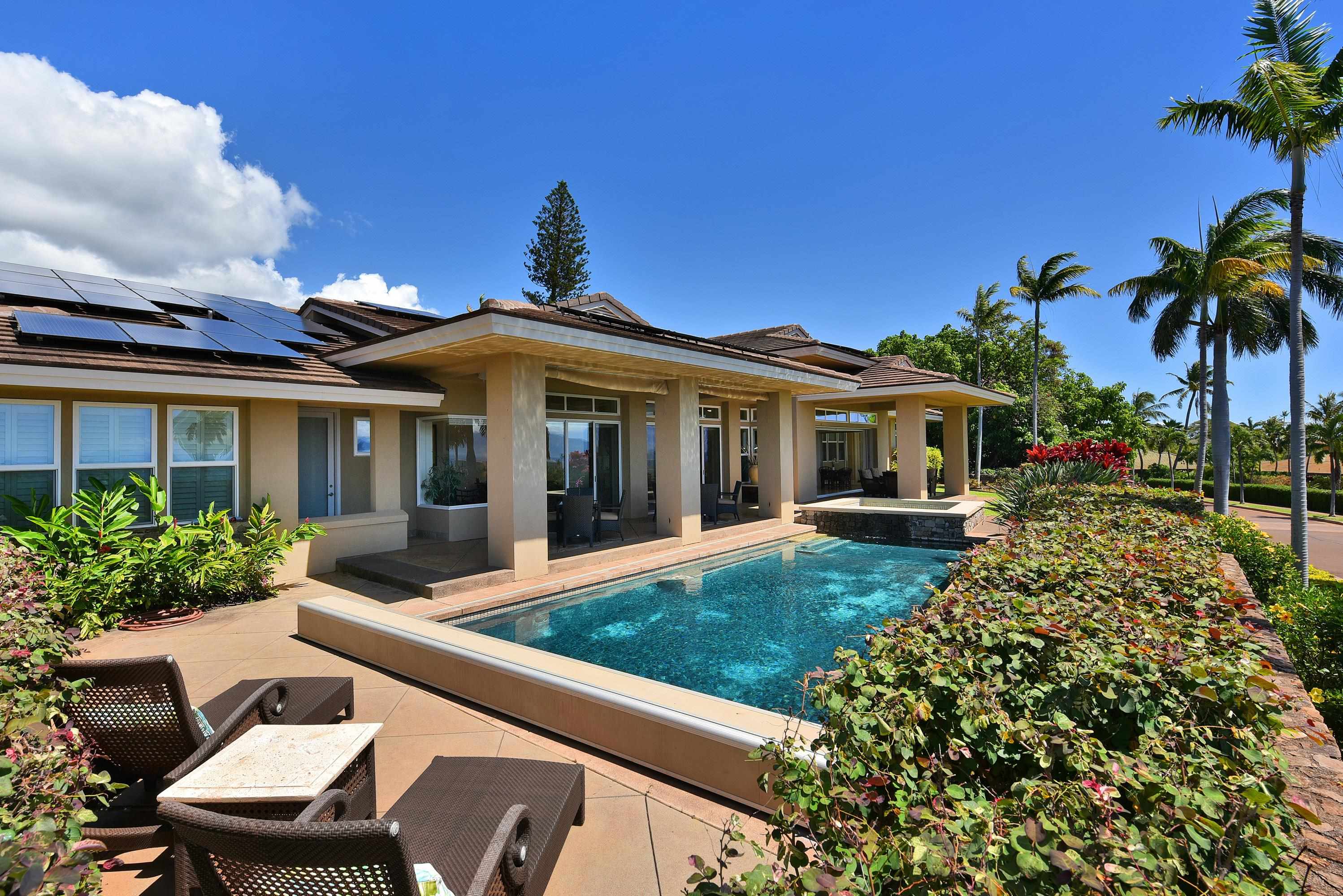 Classic one-story home in the Kaanapali Golf Estates designed by renowned architect, Ken O'Conner who built his reputation in California's wine country and has been commissioned to design homes in such prestigious communities as Sea Ranch in Mendocino and Kinney Brook Estates in the Napa Valley. The design O'Conner delivered is strikingly contemporary with fine quality craftsmanship while utilizing natural materials to ground the structure to its Hawaiian roots. Incredible ocean, island and sunset views. Home features upscale appliances and finishes throughout. The kitchen was completely remodeled in 2018 and has 5 burner glass ceramic cooktop, Sub Zero double door range and refrigerator & stacked ovens. Outdoor dining on the lanai accompanied by a pool area is perfect for outdoor barbecues and entertaining. Three full suites, plus a family/media room and a three-car garage. Six Array Enphase Solar installation with total of 81 - 285 Watt Solar Modules completed Jan 2018. Property is being sold AS-IS.