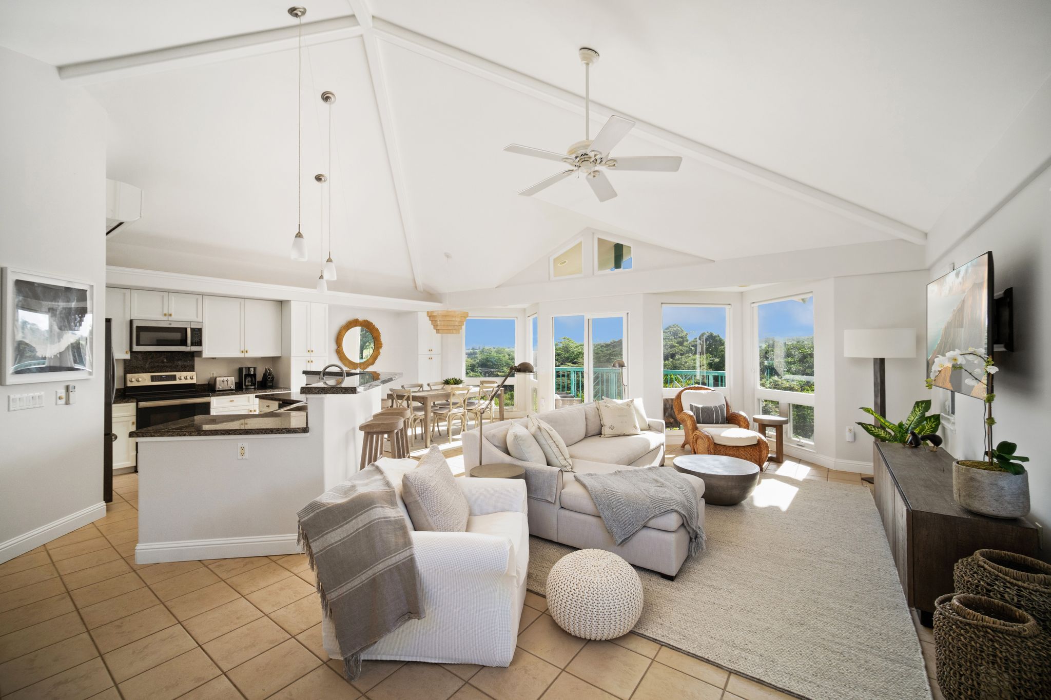 Breathtaking mountain views and close proximity to Kauai's stunning North Shore beaches, this modern furnished three-bedroom, three-bathroom retreat offers a perfect blend of elegance and comfort. Feel the freshness of beautiful new furniture, newer carpet and paint throughout the unit.
