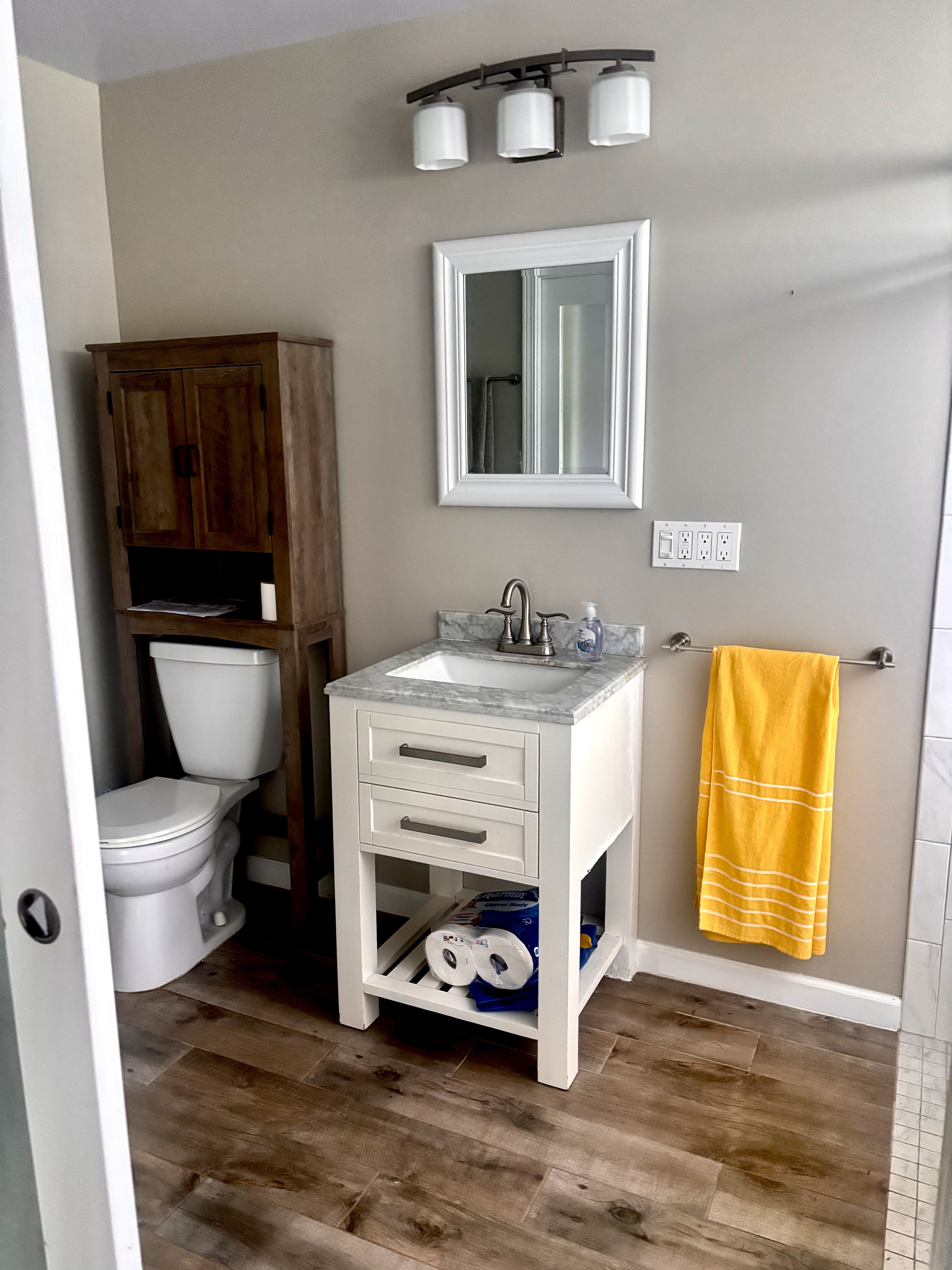 Peaceful riverfront setting with low-bank access to the stream–perfect for dipping in, relaxing, or enjoying your own private swimming spot.