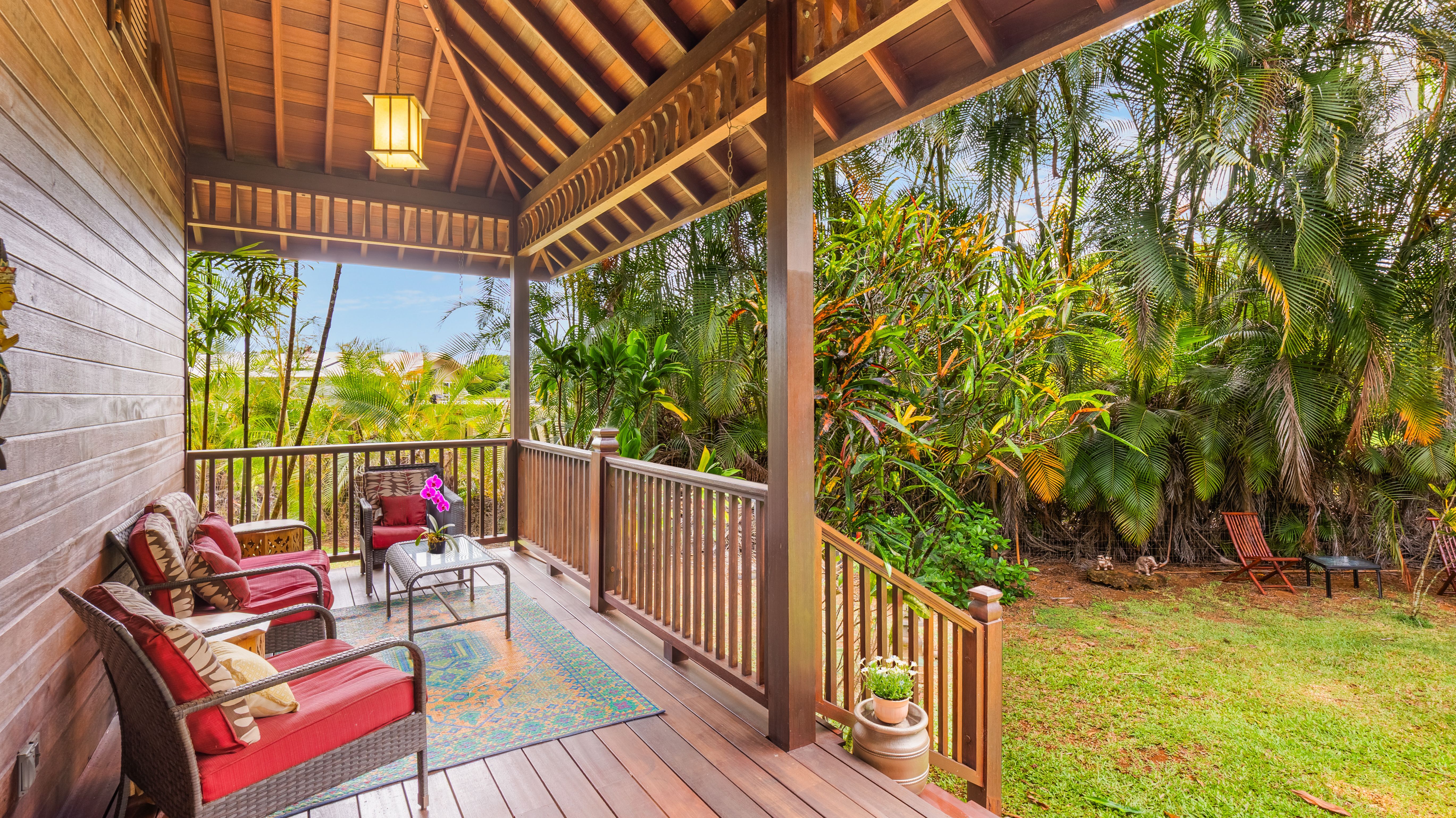 Experience island living at its finest in this custom-crafted 2-bed, 2-bath home designed by Bal’e Maker. Nestled at the base of the Makaleha Mountains, it blends artistry, durability, and comfort with seamless indoor-outdoor living.