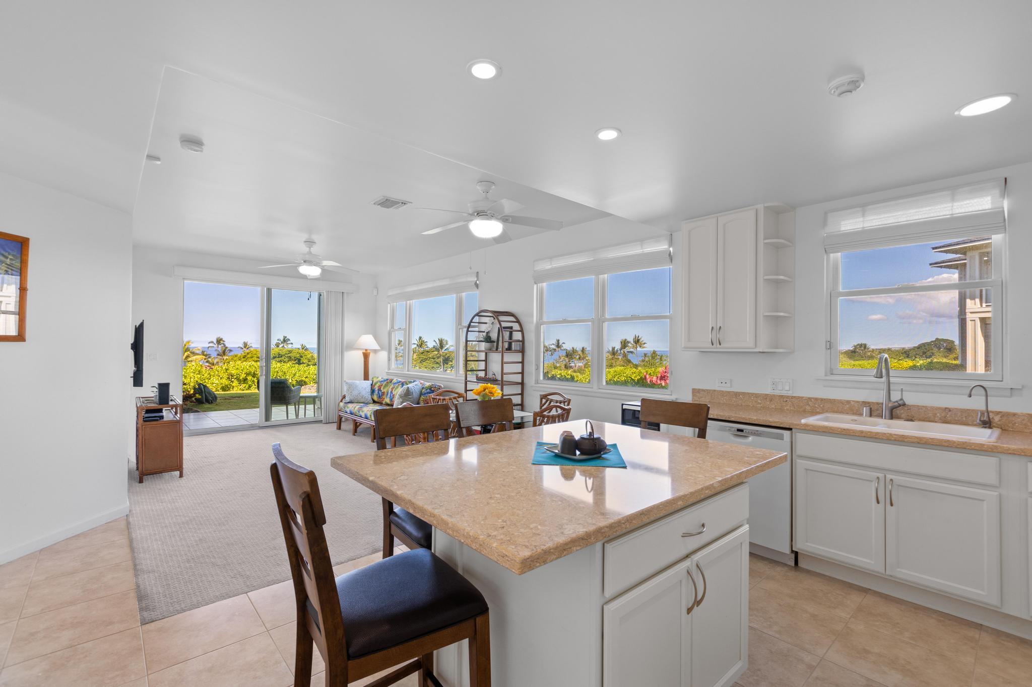 The moment you step inside, you’ll be drawn to the expansive views of the Pacific–visible from both the main living area and not just one, but two private lanais. Whether you're enjoying your morning coffee or watching the sunset paint the sky, the ocean is your constant backdrop.