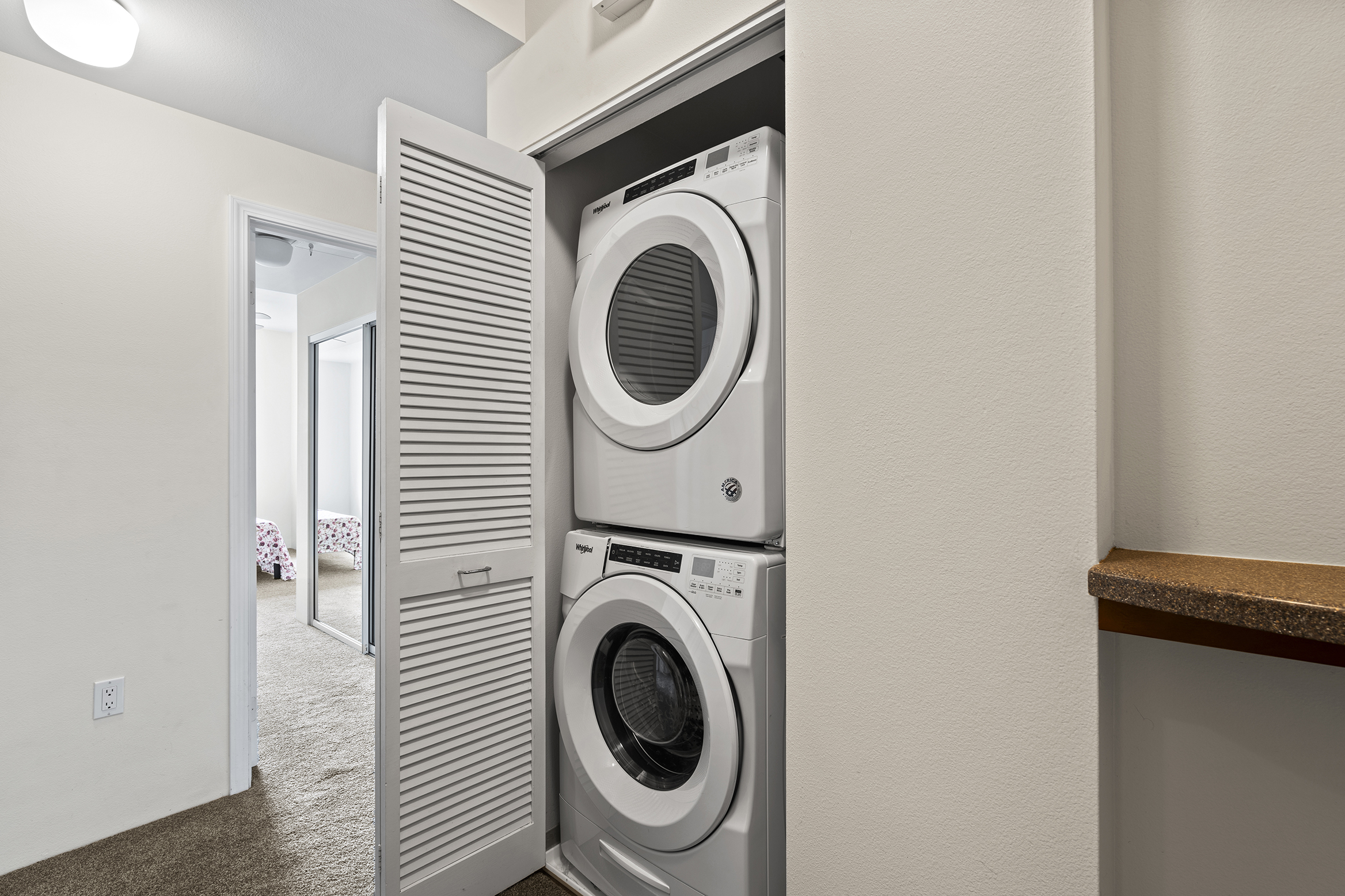 Upstairs, new 2024 plush carpeting leads to two private bedrooms, a full bathroom, an in-unit washer/dryer, and ample storage for linens and essentials. The spacious master suite occupies its own private floor, offering partial mountain views, vibrant sunsets, and beautifully landscaped surroundings.