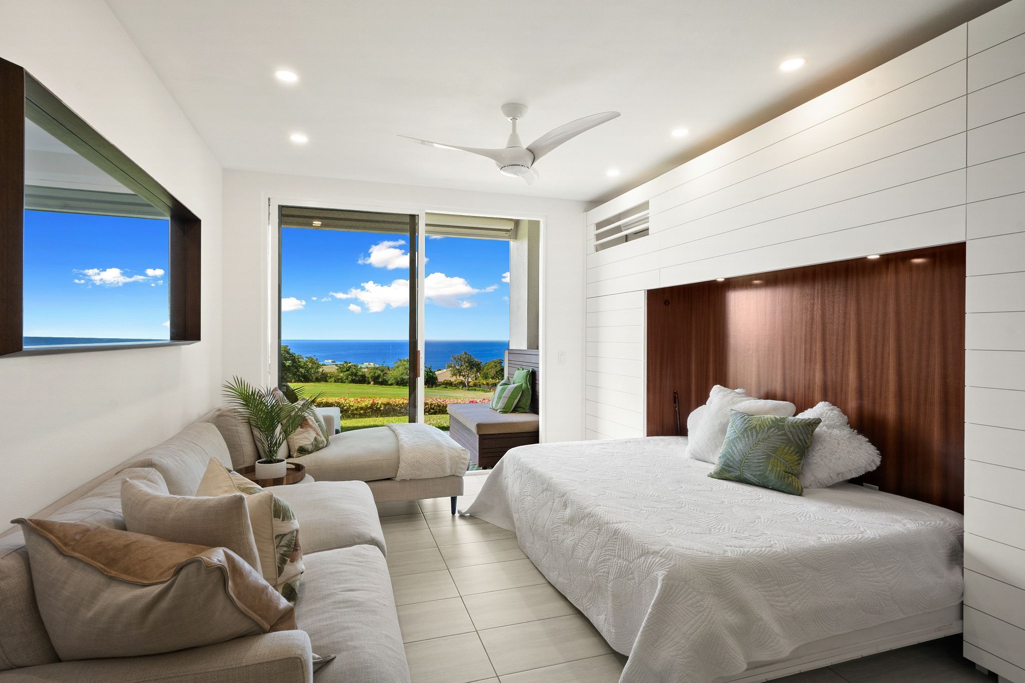 Stunning ocean and fairway views. Ground floor lanai flowing out to spacious grass area. Upgraded custom woodwork includes sapele kitchen, front entry cabinet, bathroom vanities, and closet build outs. Includes a unique additional custom shiplap murphy bed wall unit with cabinets and pull-out panels to create a third bedroom in front room for guests. Optional custom sapele murphy bed in second bedroom. Soundproofing added on both adjoining walls and in ceiling in front room and kitchen. New recessed lighting and ceiling fans. Full remodel in 2019 and new custom tile showers (2025). Upgraded split A/C with additional third unit in second bedroom. Bosch kitchen appliances and LG washer and dryer. Tile floor throughout. All new window coverings. Current cost for upgrades would be in excess of $350,000. Pet friendly complex. Tranquil pool area that includes a gym, community center, and barbeques. Short stroll down the golf course to local dining, shops at Wailea and premier beaches. Monthly HOA fee of $1289.00 includes water, sewer, trash, landscaping, and property maintenance. All comments, data is provided by seller or seller's representatives. Buyer to confirm all & hold all parties harmless from any discrepancy data in the mls and advertising. Limited Service—Data Entry Addendum signed by seller/s must be signed by buyer/s with Purchase Contract.