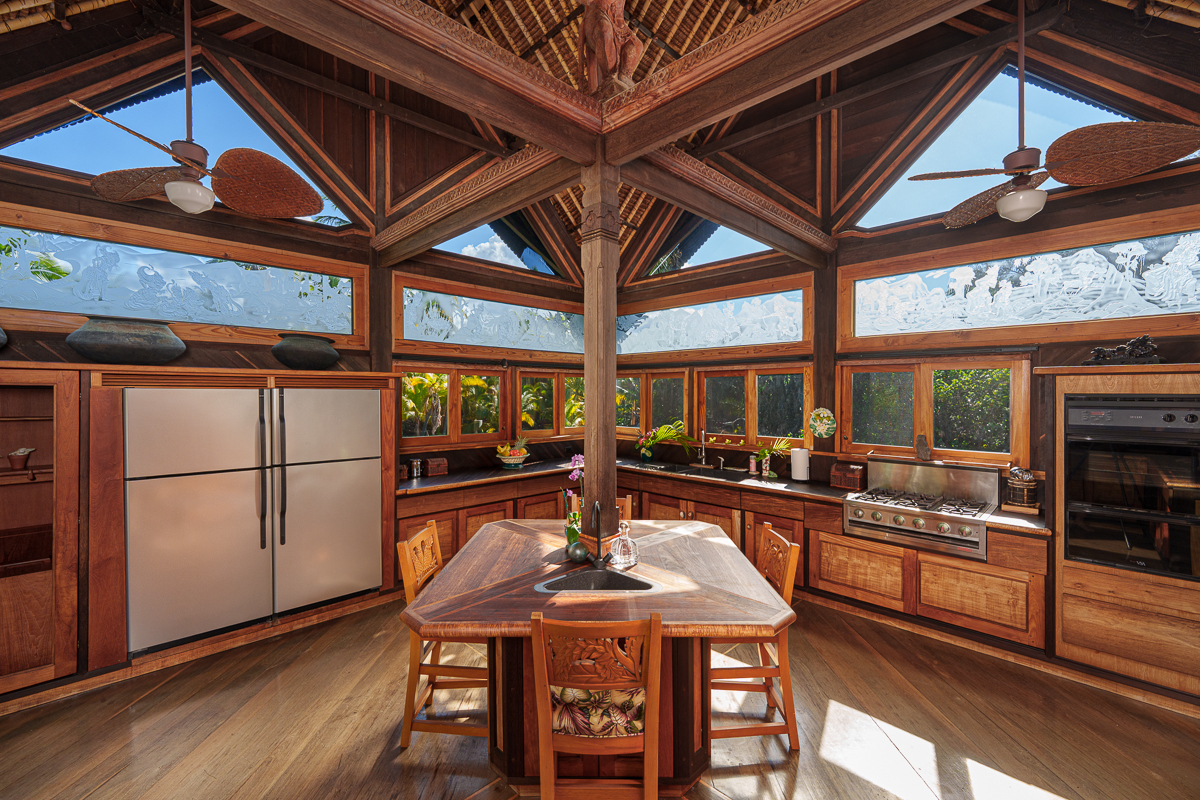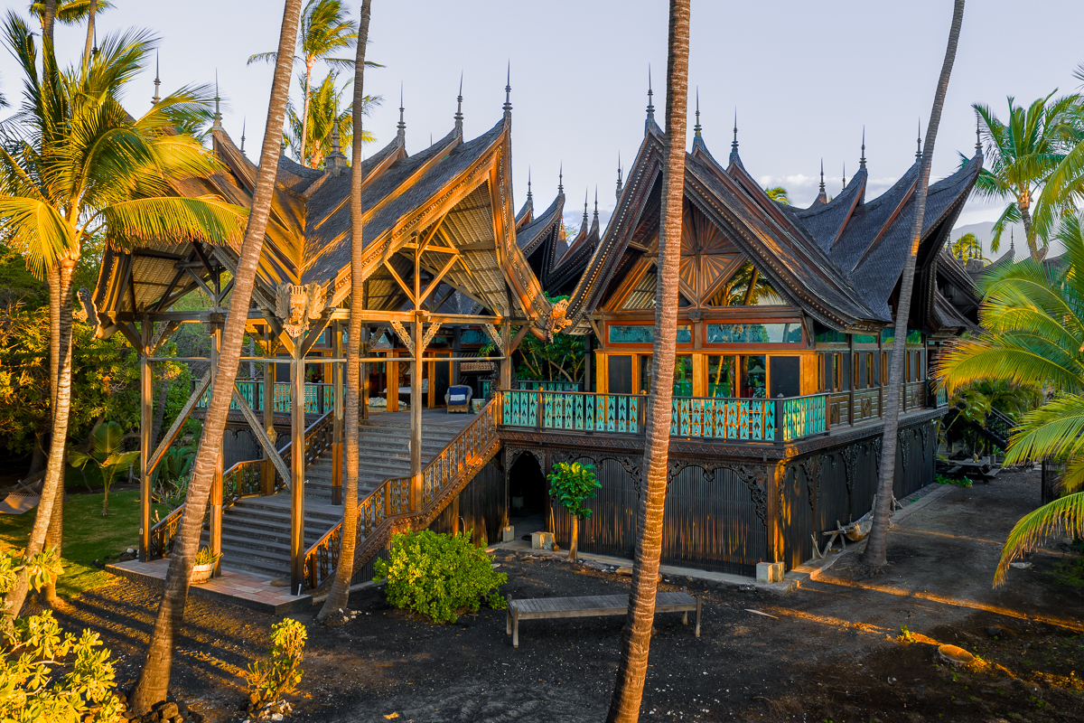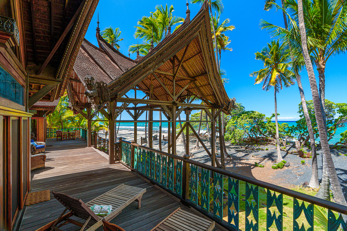 A visionary hideaway originally crafted in Indonesia and painstakingly reassembled on the pristine shores of the Big Island offers a once-in-a-generation opportunity to own an architectural masterpiece. Where jagged lava fields meet the endless azure of the Pacific Ocean sits the crown jewel of the Kohala Coast. Far more than a residence, this compound is a testament to extraordinary personal vision and global craftsmanship. This is a magnificent Balinese estate transported across the sea to rest seamlessly upon Hawaiian shores. Kiholo Bay is a marvel of untouched nature, and this property respects that raw beauty. Designed in the traditional Balinese style, the estate is organized as a rhythmic series of independent pavilions. These structures are thoughtfully arranged in a compound layout woven together by a network of open-air decks and sheltered walkways. Originally built in Bali by 280 master craftsmen using Indonesian ironwood and teak, the structure was dismantled and shipped, then reassembled in Hawaii using traditional wooden pegs. Its most striking feature is a massive roof of over one million wooden shingles meticulously laid to resemble dragon skin. The interior serves as a living museum blending Southeast Asian history with the Hawaiian environment. Living spaces are adorned with intricate Indonesian carvings while sliding doors vanish to invite the Pacific breeze. The kitchen sits in its own circular pavilion, designed to promote natural airflow and effortless outdoor dining. The retreat includes an expansive direct ocean primary pavilion. From this vantage point, sliding walls reveal a breathtaking panorama where the deep blues of the Pacific transition into the rising silhouettes of the Kohala Mountains. Completely self-sustaining with its own water and solar systems, the estate is a resilient cultural masterpiece that harmonizes the spirit of Bali with the majesty of the Big Island.