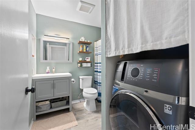 Take advantage of a VA assumable loan at just 2.25%—Instant Savings! Move-in-ready 2 bed / 2 bath / 2 parking townhome tucked at the back of the community for privacy, surrounded by greenery and cool Launani Valley breezes. Modern kitchen w/ stainless steel appliances, in-unit GE washer/dryer, plus two assigned stalls. Enjoy community parks, playgrounds & jogging paths, minutes from Mililani, Wheeler, Schofield & H-2. Loan balance Ëœ$335K w/ ~$200K gap; assumption subject to lender/VA approval & buyer qualification.