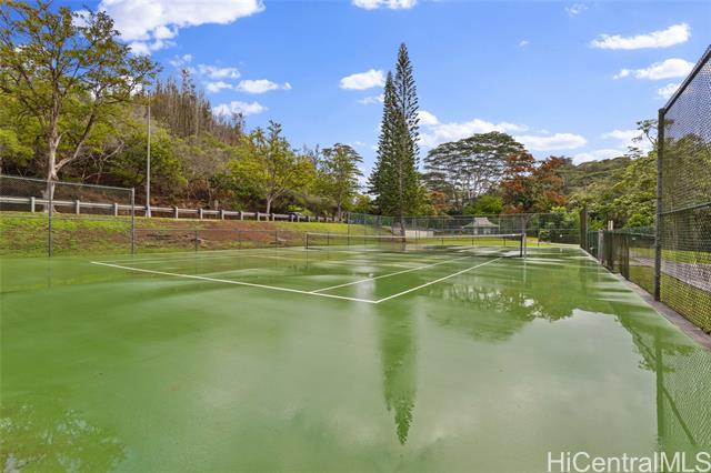 Wake up to peaceful greenbelt views in this rare perimeter property, where a generous lanai creates a private extension of your living space. This home features a modern kitchen with upgraded cabinetry, sleek countertops, and a spacious island ideal for casual dining or entertaining. Durable laminate flooring and updated bathrooms complete the contemporary feel. Set within the scenic Launani Valley community, this location offers quick access to major routes and nearby destinations including Leilehua Golf Course, Wheeler Army Airfield, Schofield Barracks, Mililani, and Wahiawa. Residents enjoy resort-style amenities such as a community pool, park, and playground, all surrounded by lush tropical landscape. This home offers a rare blend of privacy, upgrades, and convenience.