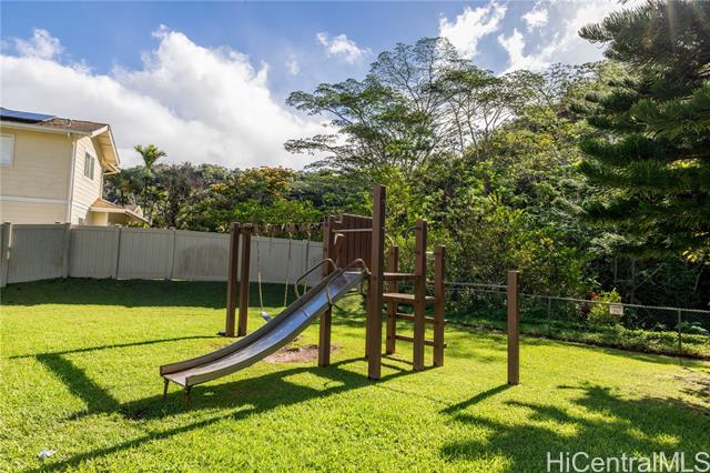 Welcome home to Streamside at Launani Valley. This 2 bedroom 1 bath home is perched on the third level and offers comfortable living, high ceilings filled with natural light, and the convenience of two parking stalls. Enjoy the perks of living in a community known for its lush surroundings, featuring an association pool, park, and walking paths—perfect for relaxation and outdoor enjoyment. Commuting is a breeze with close proximity to Schofield Barracks and Wheeler Army Airfield and freeway access leading to shops, beaches and more. **This home also offers an assumable option at 5.75%.