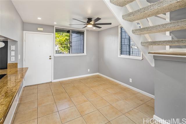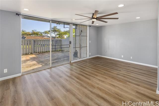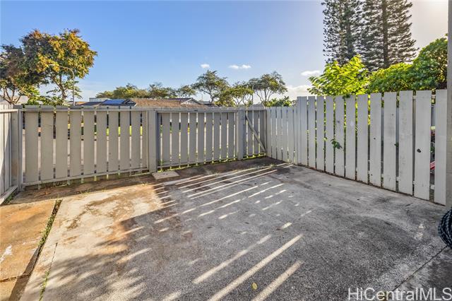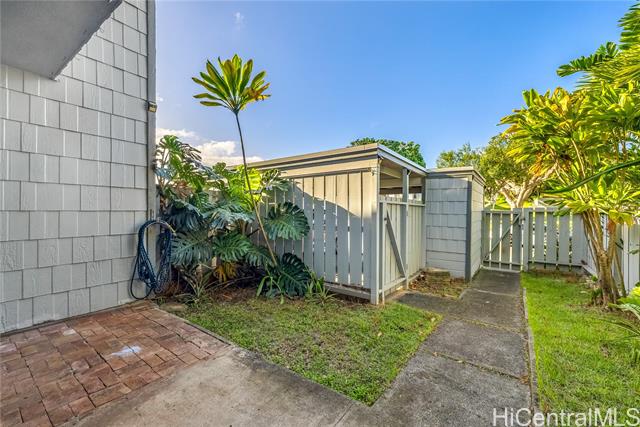 Welcome to Holaniku Hale, one of Mililani’s most desirable townhome communities! This spacious 3-bedroom, 2.5-bath corner unit residence offers the comfort of a single-family home with the convenience of townhome living. Enjoy a bright and open floor plan with a generously sized living room, dining area, and a functional kitchen perfect for everyday use. The home features two private fenced areas, one at the entryway and one in the backyard, ideal for outdoor dining, pets, or gardening. Upstairs, you’ll find three well proportioned bedrooms with ample closet space, including a primary suite offering excellent privacy, its own full bathroom, and a private lanai perfect for morning coffee or a quiet retreat. The second level also includes a generously sized closet attached to the landing, providing valuable additional storage. An additional full bath serves the remaining bedrooms, while a convenient half bath is located on the first floor. The home includes two assigned parking stalls, one in a shared carport that features a private storage closet, and this unit is situated close to guest parking for added convenience. Don’t miss your chance to make this beautiful home your own!