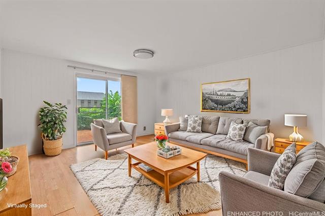 Welcome home! This well priced 4-bedroom, 2.5-bath, tri-level townhome offers nearly 2,000 sq. ft. of thoughtfully designed living space in the heart of Mililani. Fully insured for all types of loans! Spacious and versatile layout with potential for home office, study/game room or multigenerational living, with a separate entrance. The home features new interior paint and updated flooring throughout most of the space. Enjoy the convenience of an enclosed 1-car garage plus an additional open parking stall directly in front of the home. The expansive lanai’s are perfect for entertaining, while the large laundry room and generous storage space add to the home's functionality. Located in the highly desirable Spruce Ridge Villas, a well-maintained community within the Mililani Town Association. Residents enjoy access to their own pool and parks as well as the broader benefits of 7 additional MTA recreation centers. With top-tier schools, shopping, dining, entertainment, and public transportation just minutes away, this home truly has it all. A few photos have been virtually staged (enhanced).