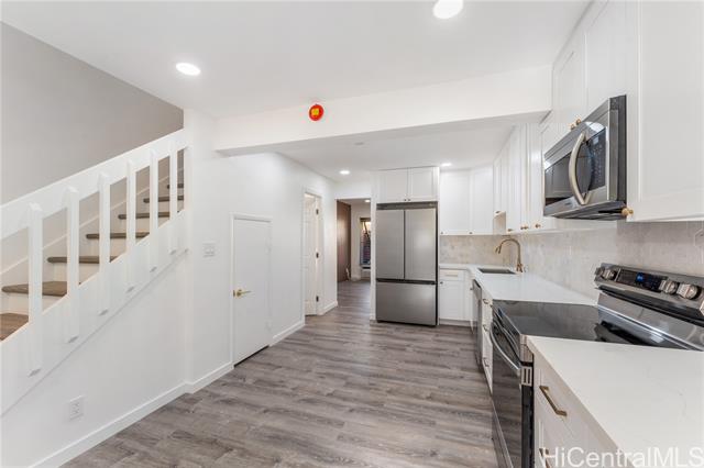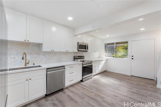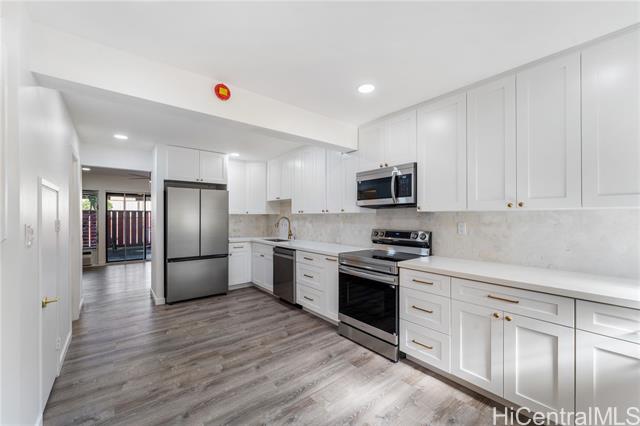 Welcome to this beautifully remodeled 2-bedroom, 1.5-bath townhouse in the heart of Mililani Town. This modern home offers a bright, open-concept kitchen and living area, perfect for both everyday living and entertaining. Enjoy the comfort of brand-new appliances—including a refrigerator, washer/dryer combo, range, dishwasher, and microwave hood. Throughout the home, you’ll find luxury vinyl plank flooring, adding both style and durability. A new water heater provides extra peace of mind, making this truly a move-in-ready home. Step outside to your own private yard—a versatile space ideal for relaxing after a long day, hosting gatherings, or cultivating your own garden oasis. Don’t miss this opportunity to own a stylish, turnkey townhouse in one of Mililani’s most convenient and desirable locations. Schedule your private showing today!